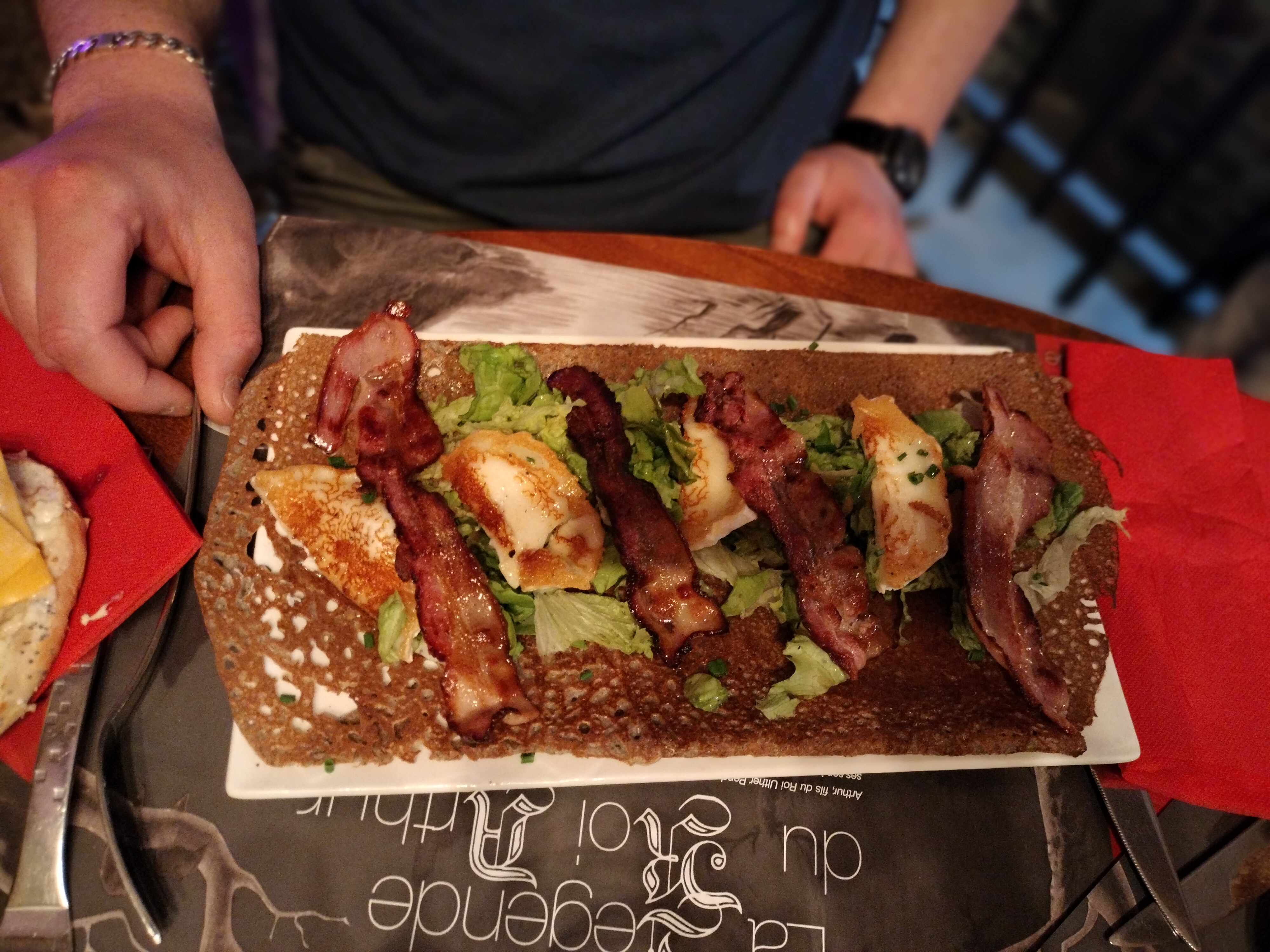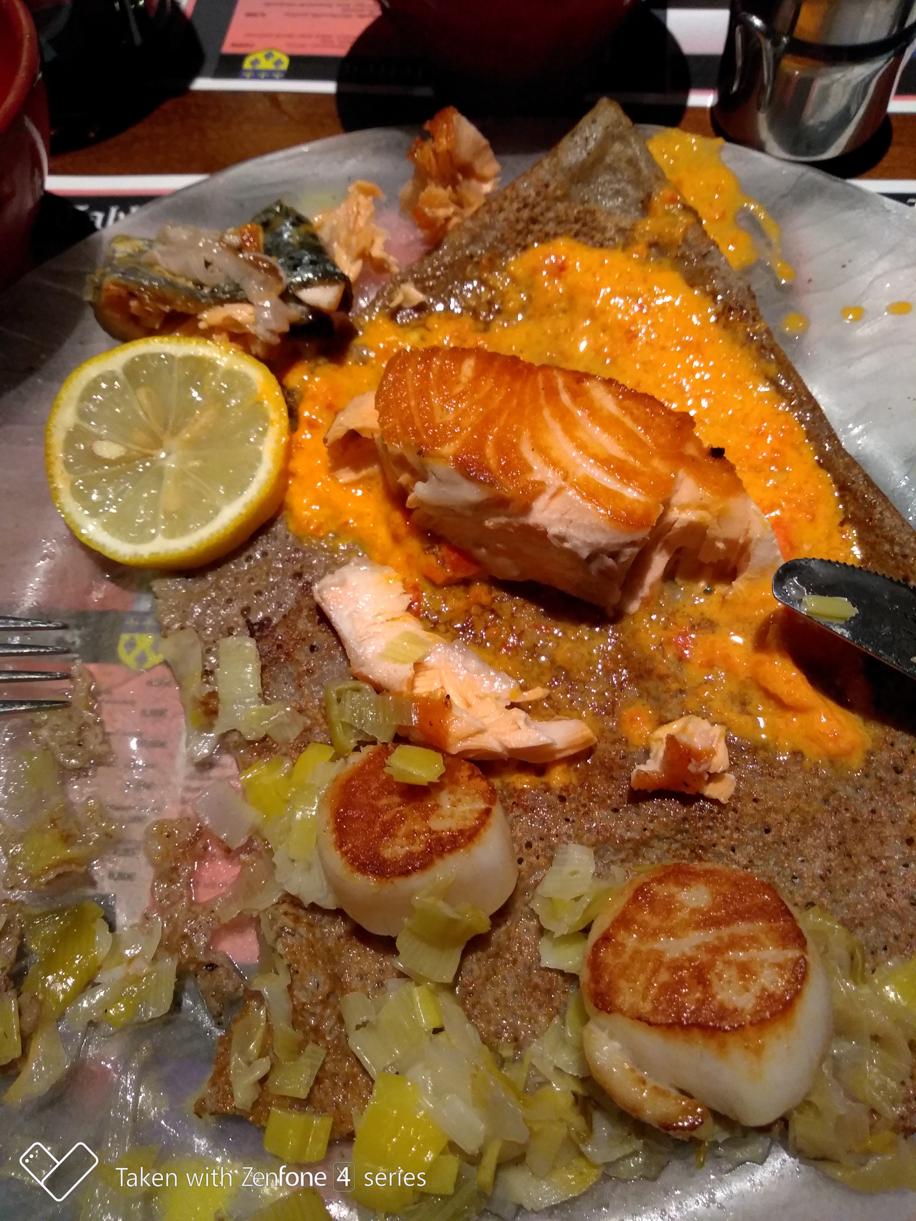 Galette assez bonne mais pas assez copieuse à mon goût. De même beaucoup d'erreurs dans le service, on se trompé de table pour les commandes, on était deux personnes et j'ai été servie 20 min avant, j'ai du manger ma galette en différé, ce qui gâche un peu le goût. Pour les paiements en carte bancaire, on ne nous ramène pas l'appareil mais on est obligé de demander sa table car marqué nul part et se déplacer en caisse. Un peu déçu de ce restaurant