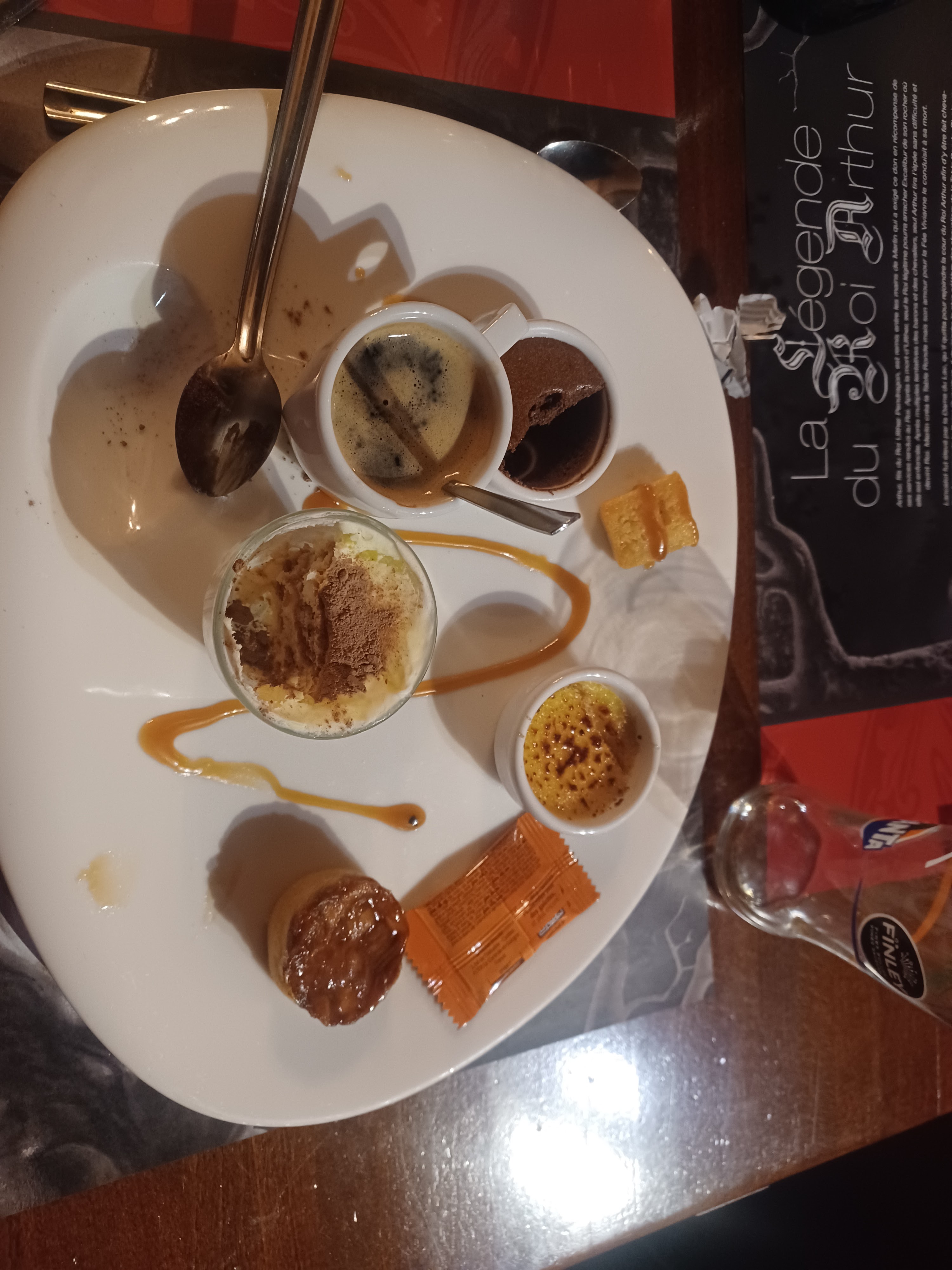 Ambiance Chevalier de la table ronde superbe. Repas copieux. Très bonnes galettes et crêpes excellentes. Personnel sympathique et souriant. Nous reviendrons 😁