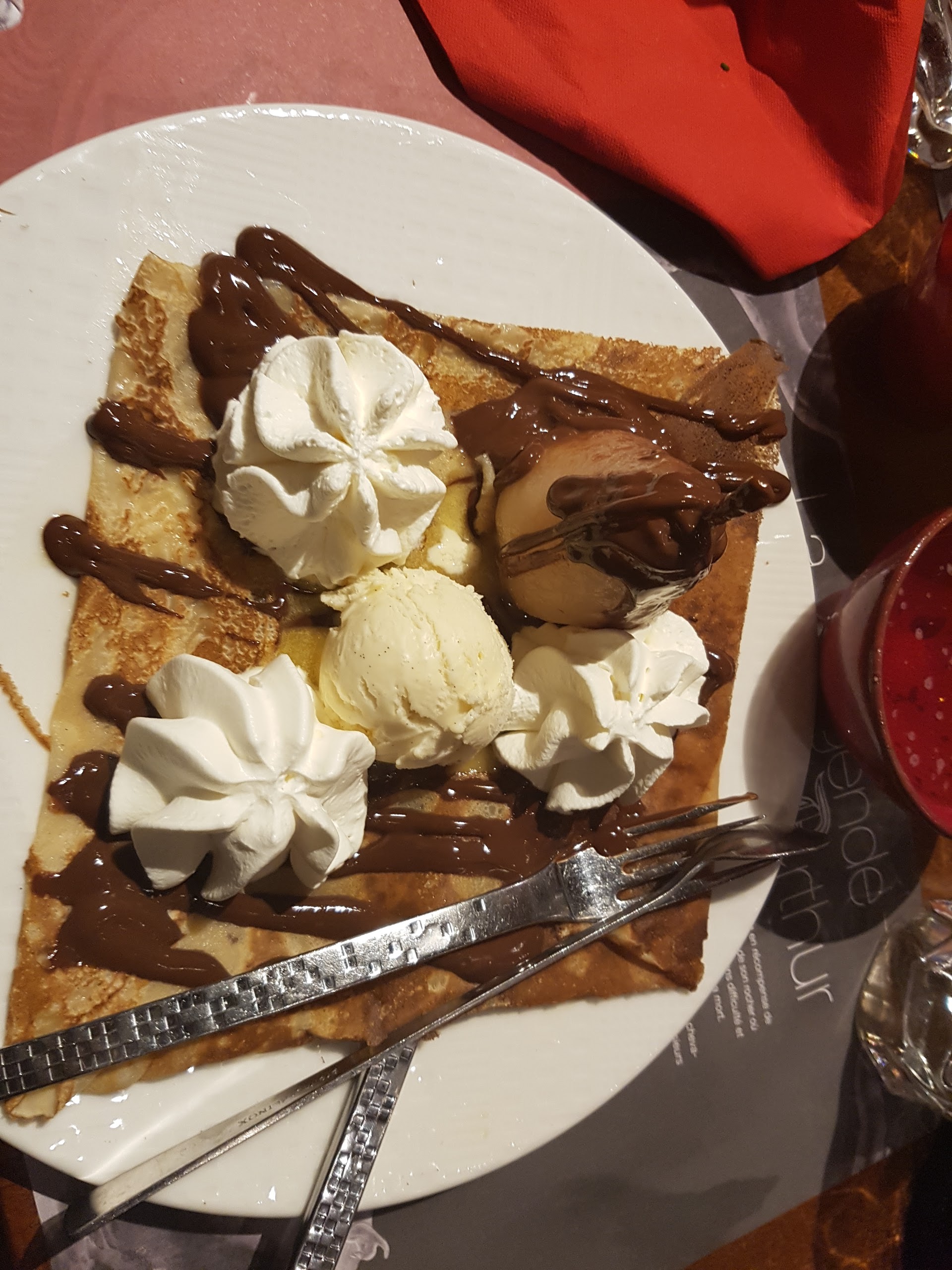 Cadre sympa, accueil ok. Pour le reste....c'est la crêperie la plus chère du coin et la qualité est très basse: j'avais l'impression que ma galette était réchauffée au micro-ondes. Coupe de glace à € 8,50 pour une boule de glace invisible submergé par une tonne de crème fouettée. Si vous avez des prix aussi élevés, pensez à revoir la qualité de vos plats!