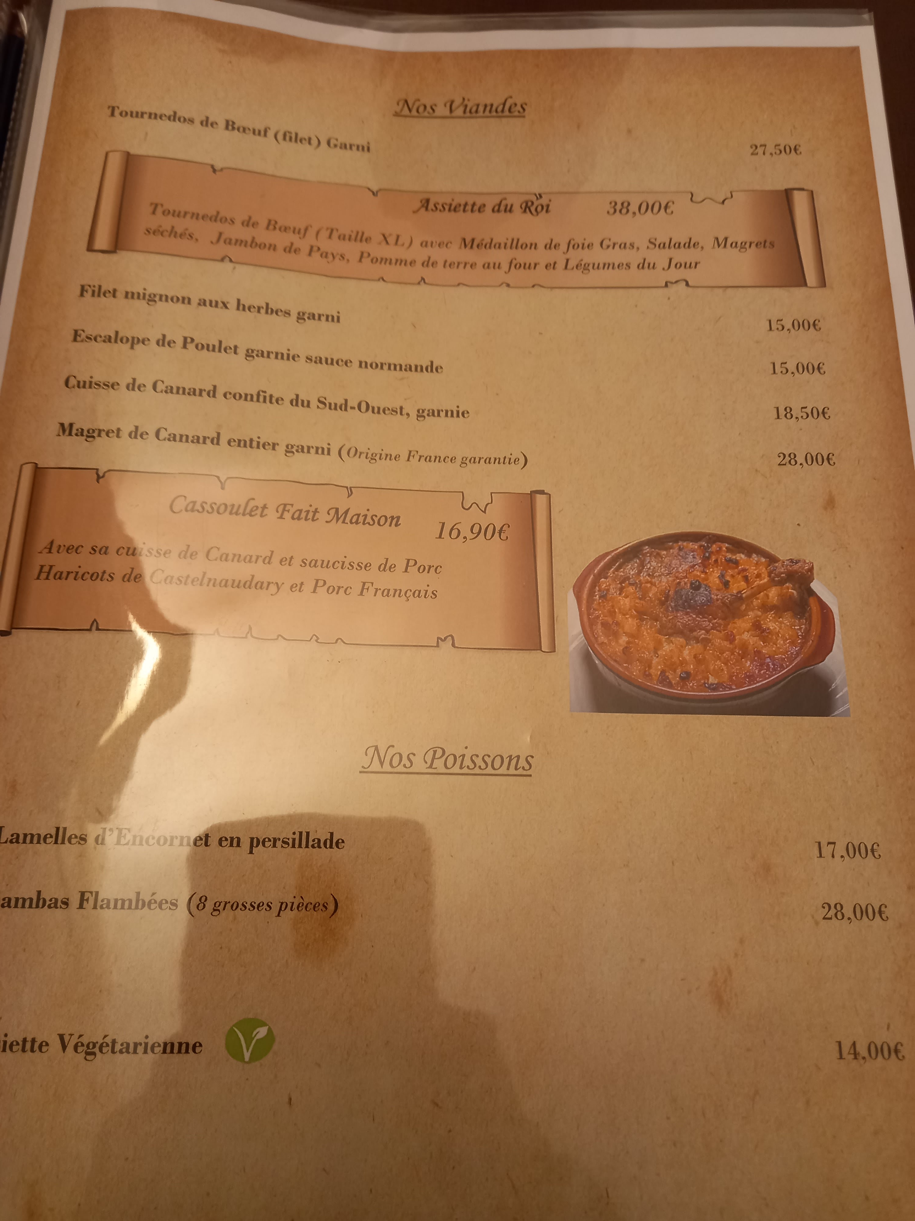Nous avons prit le menu a 28€ pour deux. C'était non seulement largement suffisant au vu des quantités mais excellent. La salade de chèvre chaud était très bonne ainsi que le tournedo de boeuf. Ils ont étaient très compréhensif et au lieu de devoir prendre de l'alcool ils nous ont proposé un soda a la place. Accueil très sympathique. Nourriture excellente. Le thème correspond parfaitement à la cité ! Pour moi je recommande les yeux fermés.