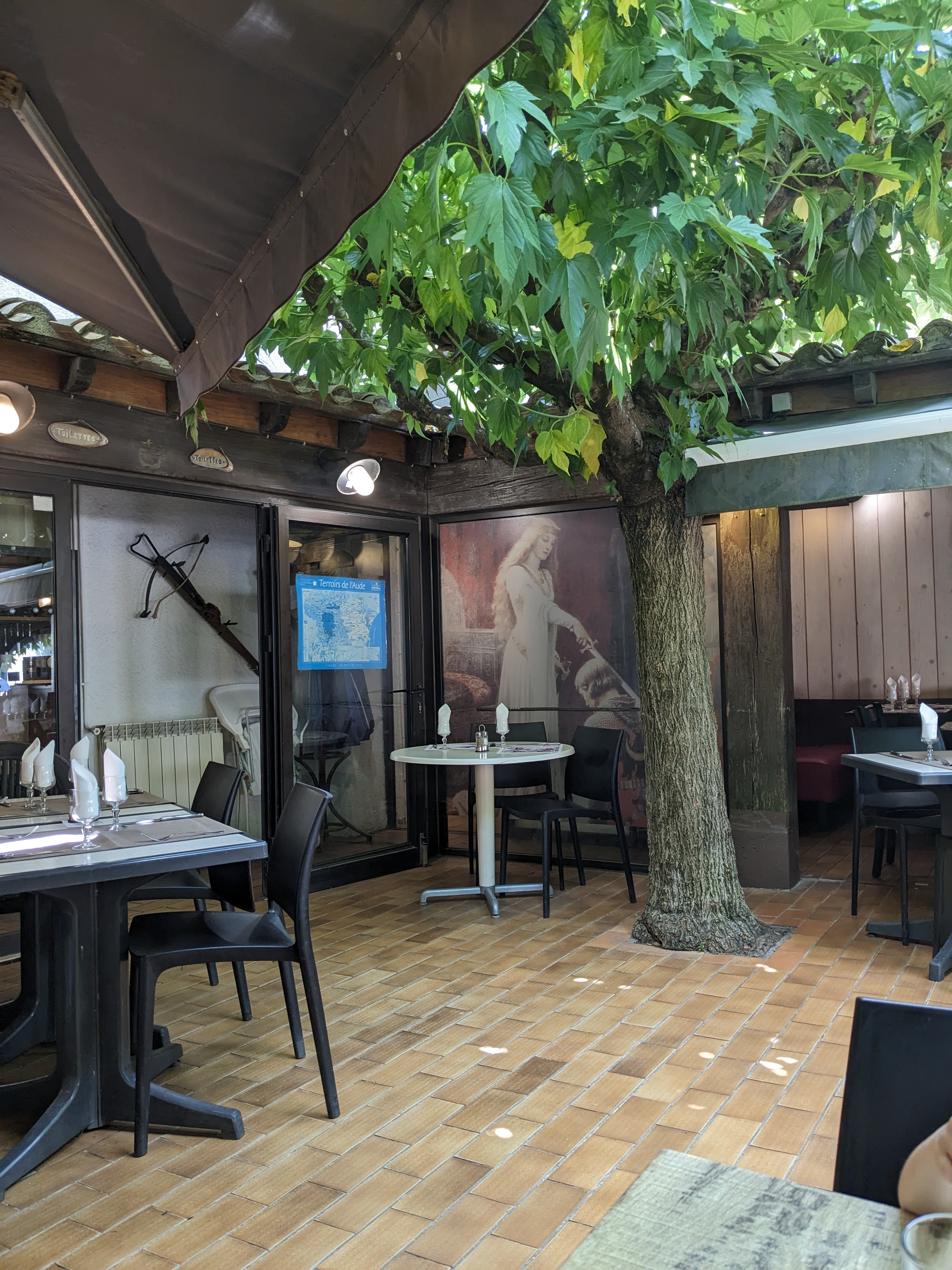 superbe endroit. on y mange très bien. menu à 24 euros tout compris : coupe de blanquette de limoux entrée foie gras cassoulet fromage et dessert. délicieux. très belle terrasse ombragée et un joueur de guitare très Pro et discret. une serveuse adorable. Je conseille vivement cet endroit.