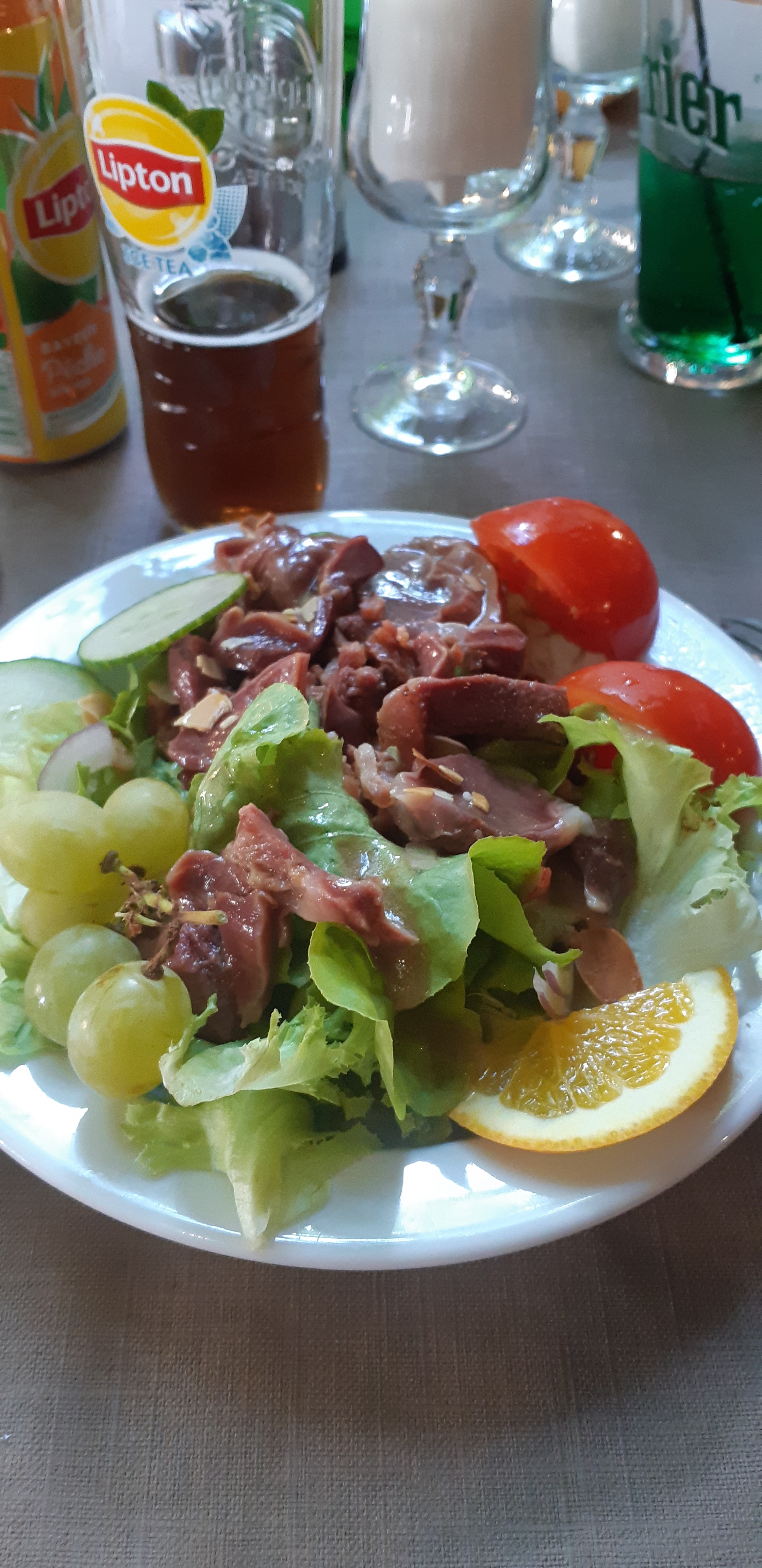 Bonne cuisine, simple et efficace. Le foie gras et les viandes étaient délicieux ! Merci aux cuisiniers qui eux font du bon boulot. Le fromage pas top ils viennent surrement dde grandes surfaces c'est dommage. Le service laisse vraiment à désirer, le personnel en short tee-shirt et le mec me sort '' oui on est un restaurant familial.. Pas très professionnel et je ne les ai pas trouvés très accueillants.. Des Carcassonnais quoi.. Pour un restaurant au cœur de la cité j'esperais mieux..
