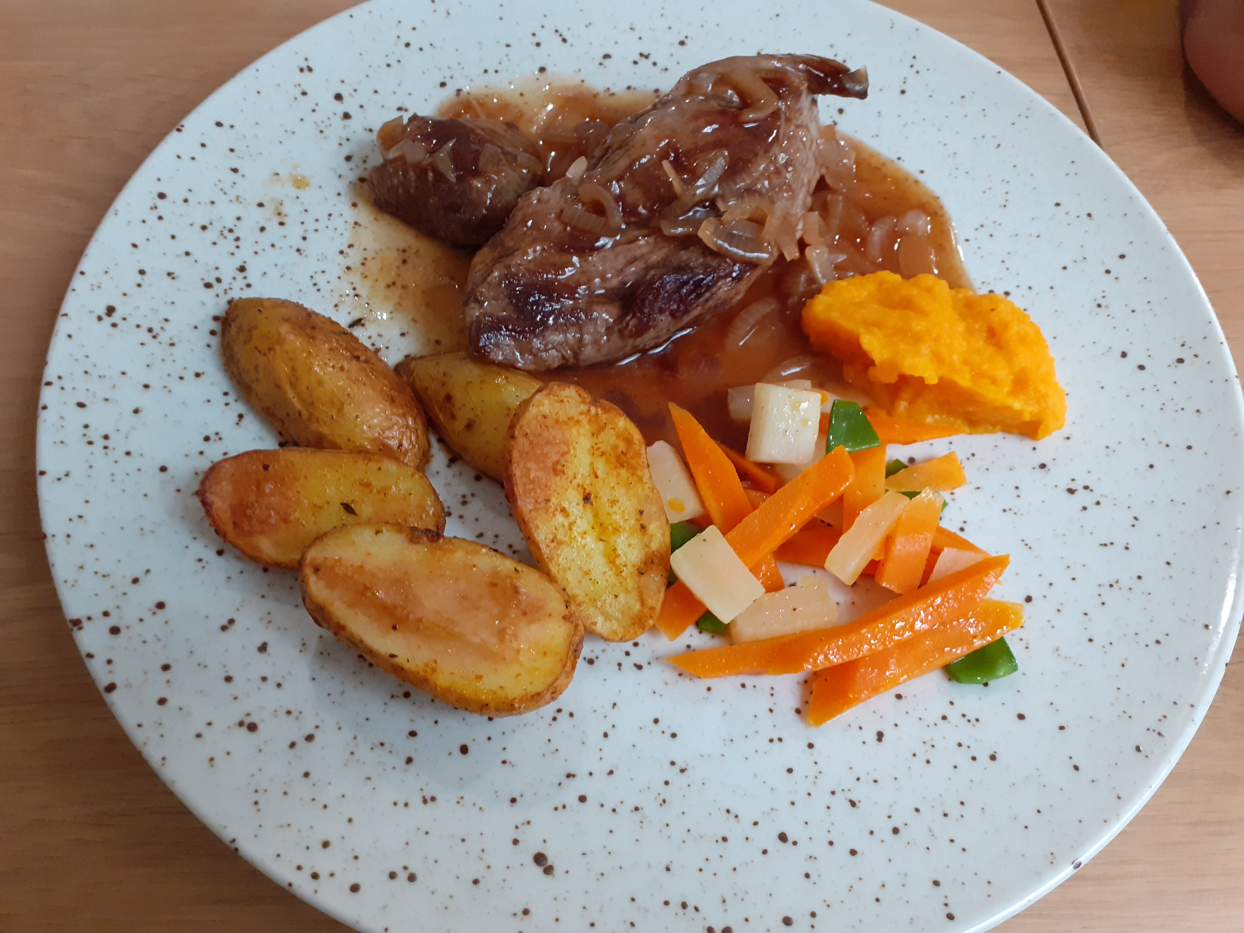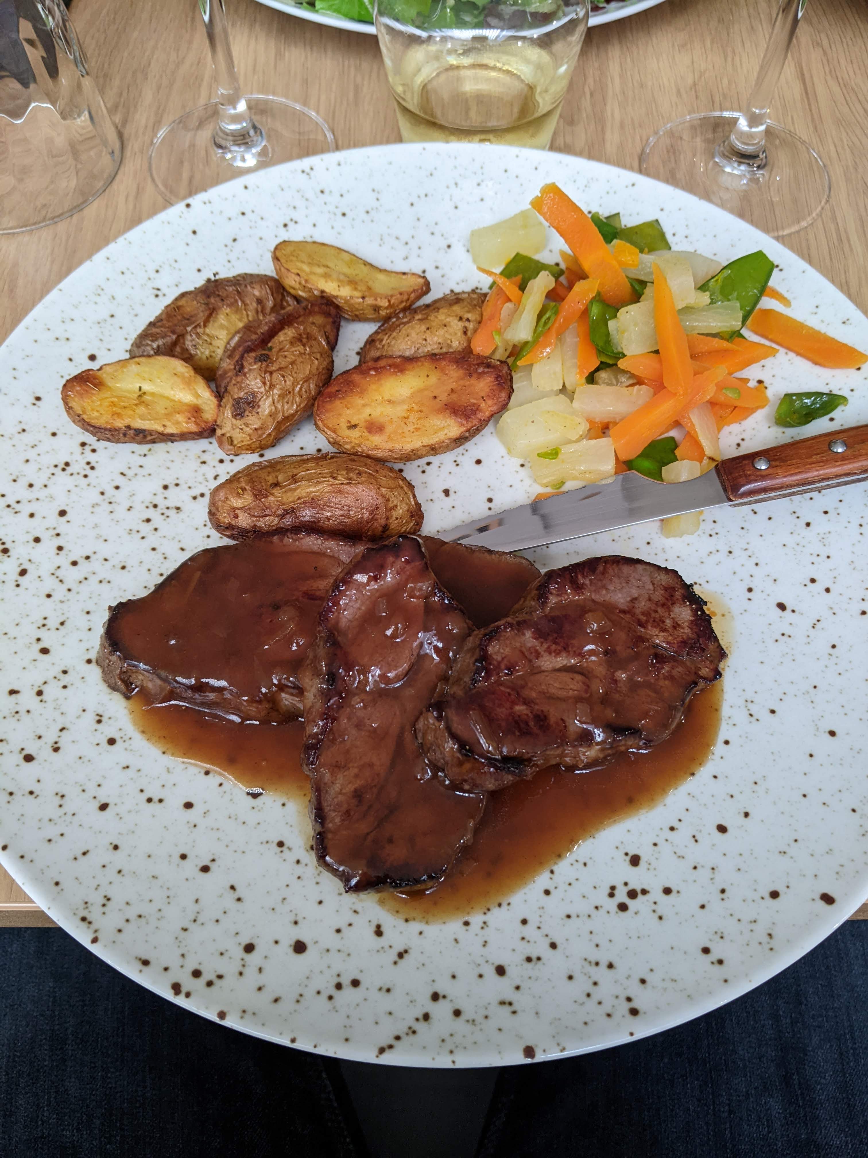 Quelle délice cette viande. Les assiettes sont joliment présentées.