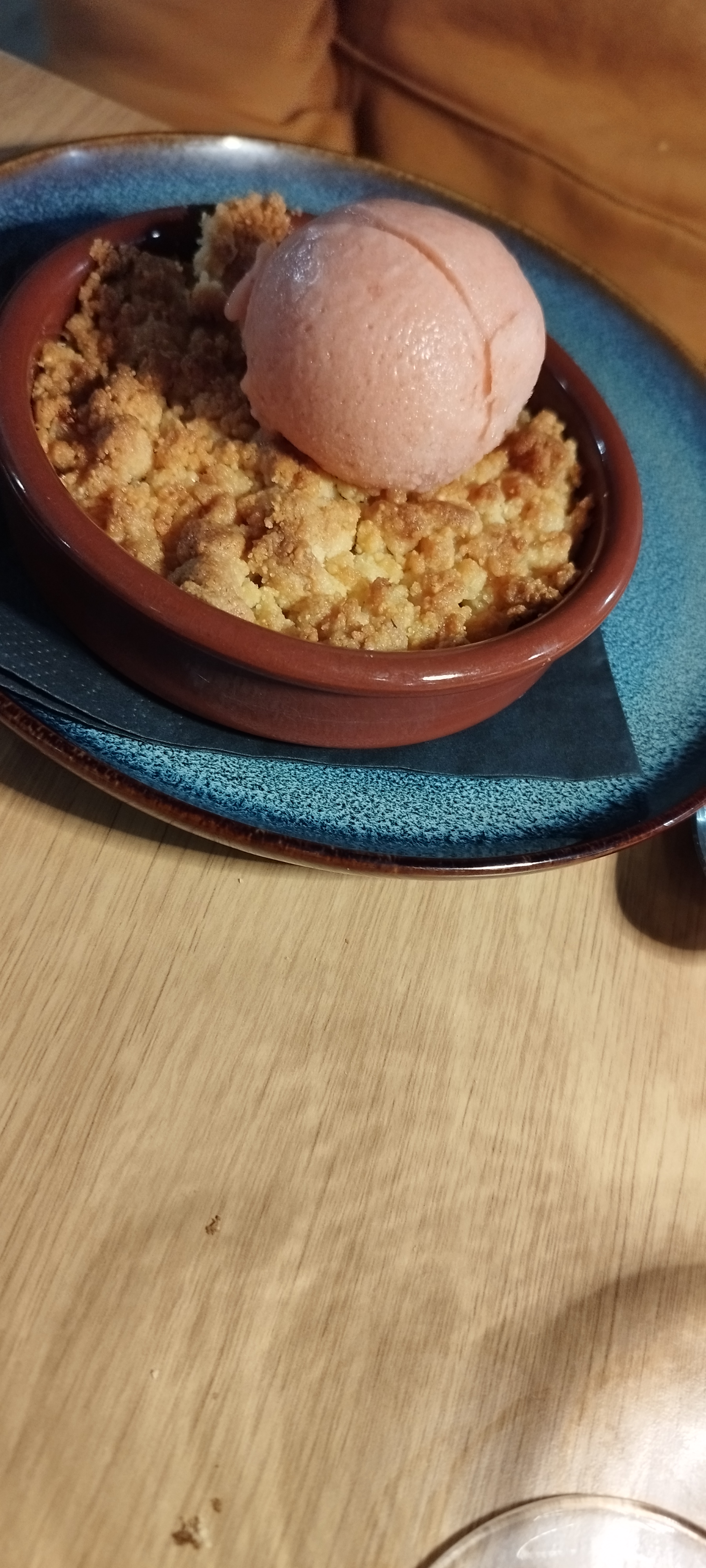 Cuisine traditionnelle et celon la saison Produits frais Desserts : glaces rhubarbe et speculoos avec chantilly Maison! Crumble super bon accompagné d'une boule de glace rhubarbe. Café gourmand vraiment gourmand
