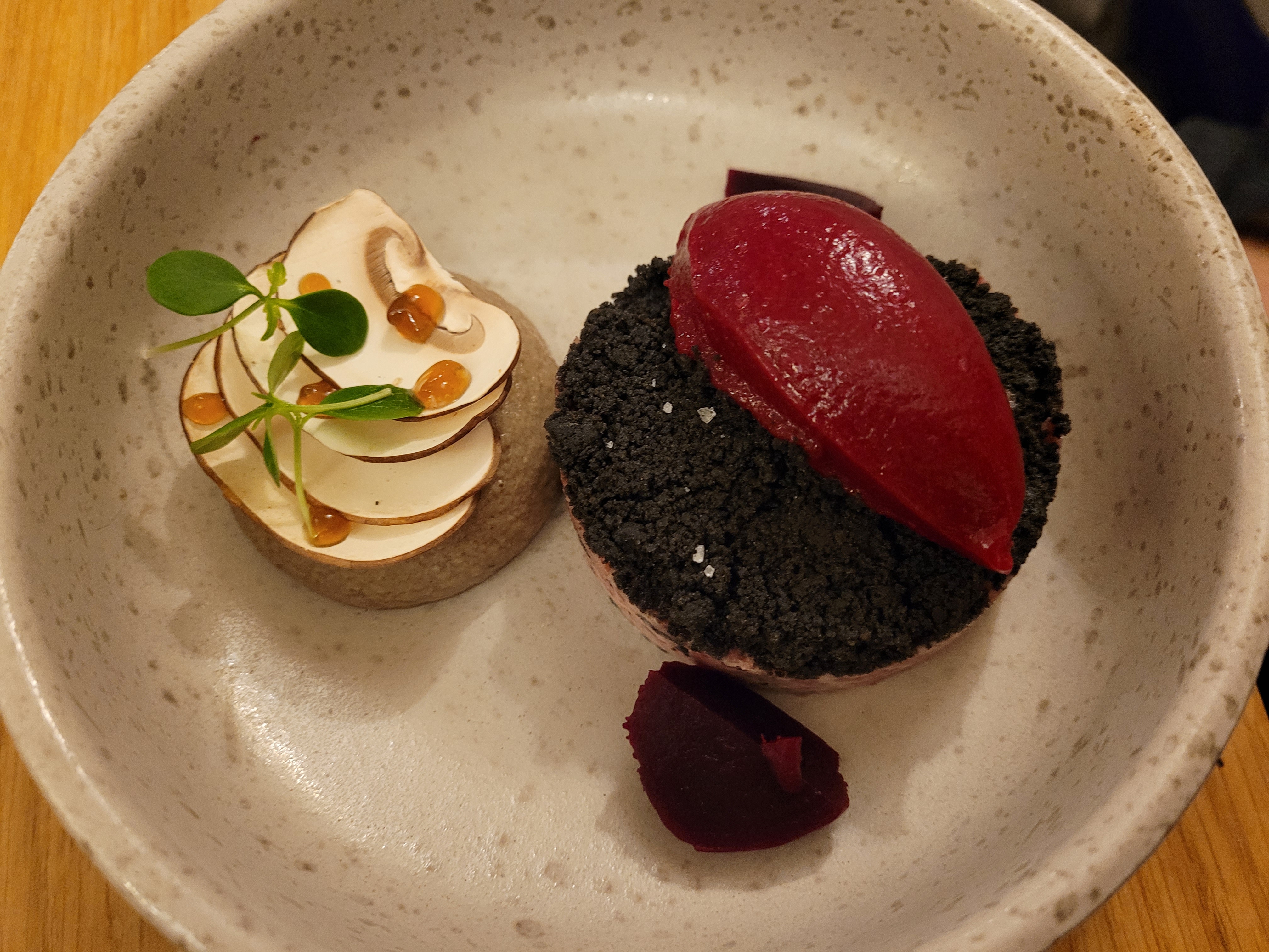 Extrêmement créatif et en même temps une reinterpretation des produits locaux très juste. Tout ce qu'on aime. C'est la deuxième fois que j'y vais. La première fois que je suis venu en septembre j'étais seul et cette fois-ci avec mes enfants . Tout le monde a le même avis. Evidemment à 80€ par personne vins et champagne compris ca pique un peu mais d'un autre côté ça vaut largement une étoile. Attention sur le menu dégustation il faut vraiment jouer le jeu parce que chaque plat est une surprise et donc parfois on a une mauvaise surprise de son pointnee vue à soi . Non pas que ce ne soit pas parfaitement exécuté mais parce que ça ne correspond pas à nos goûts. Par exemple je n'aime ni betterave ni melon. Mais quand j'arrive à être surpris sur des goûts que j'aime , quel bonheur !