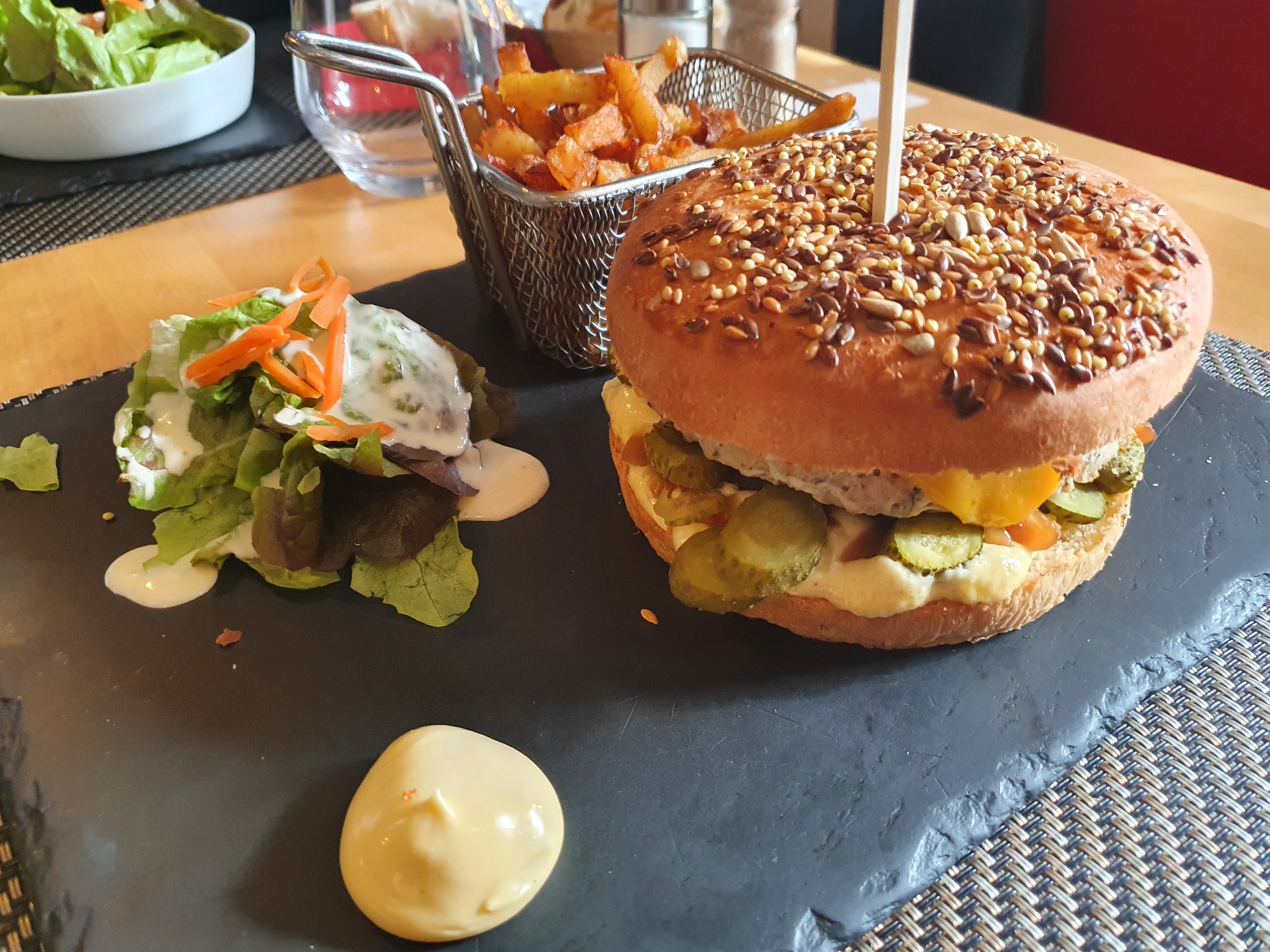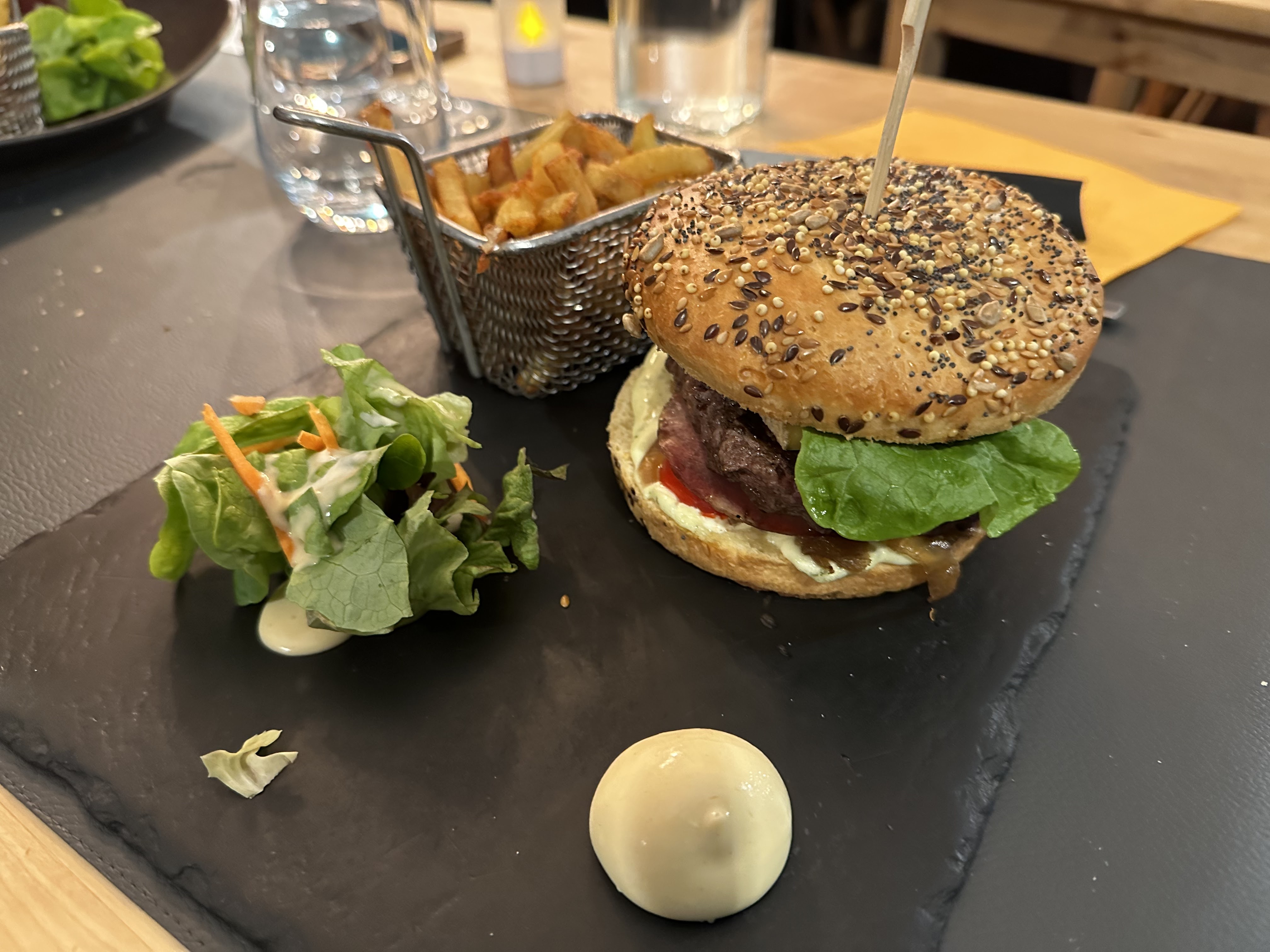 Belle découverte pour cette soirée placée sous le signe de la gastronomie Française ! Accueil parfait, carte variée et appétissante, pour cette première fois, nous avons pris une souris d’agneau, et un burger, nous vous recommandons ce restaurant intimiste et chaleureux.