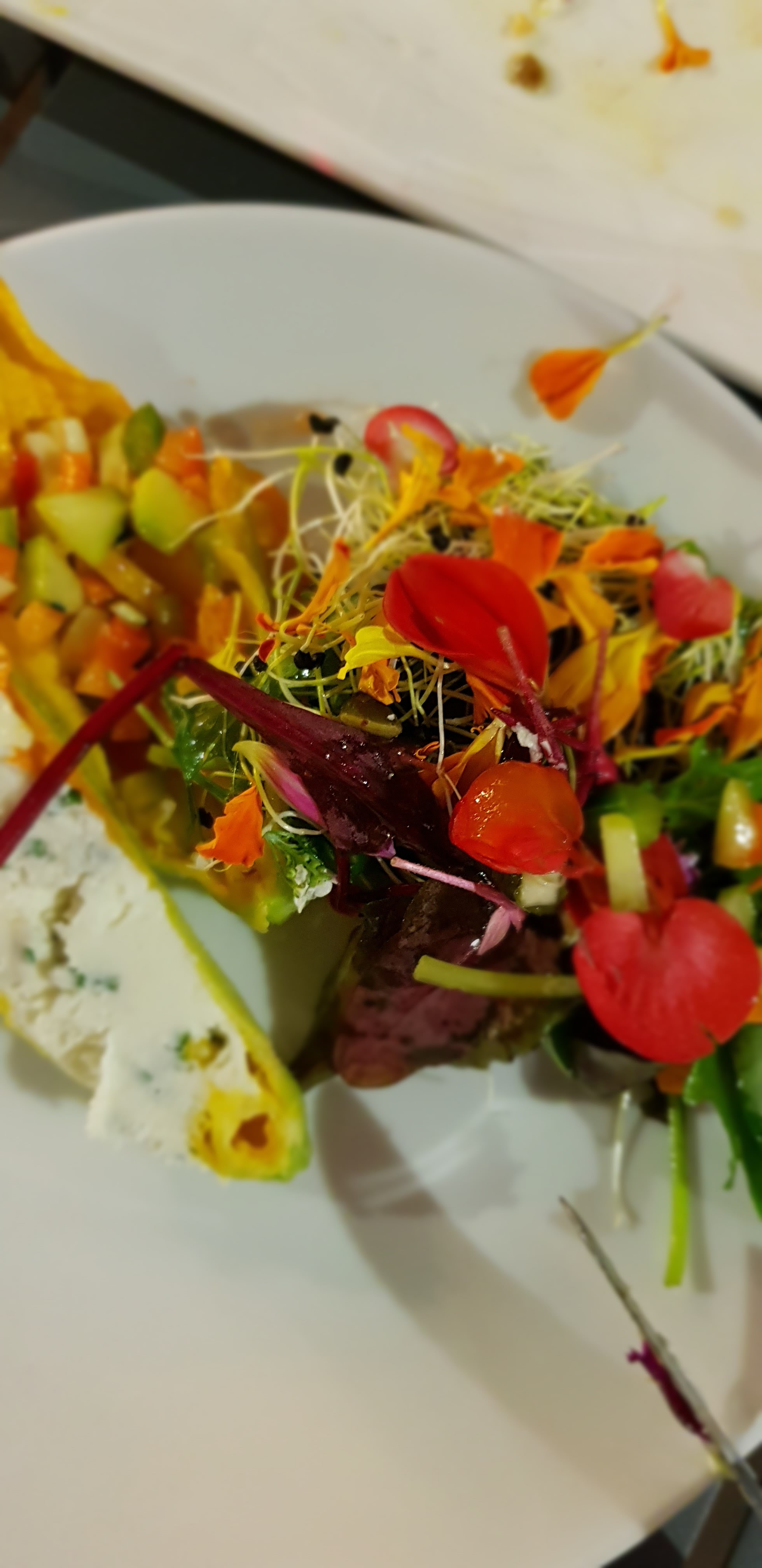 Cuisine originale et fleurie 🌷🌹🌺🌻 ce qui vaut le détour c'est que c'est un restaurant avec une réelle création artistique dans chacun des plats proposés. La cuisine devient enfin art (visuel et gustatif )