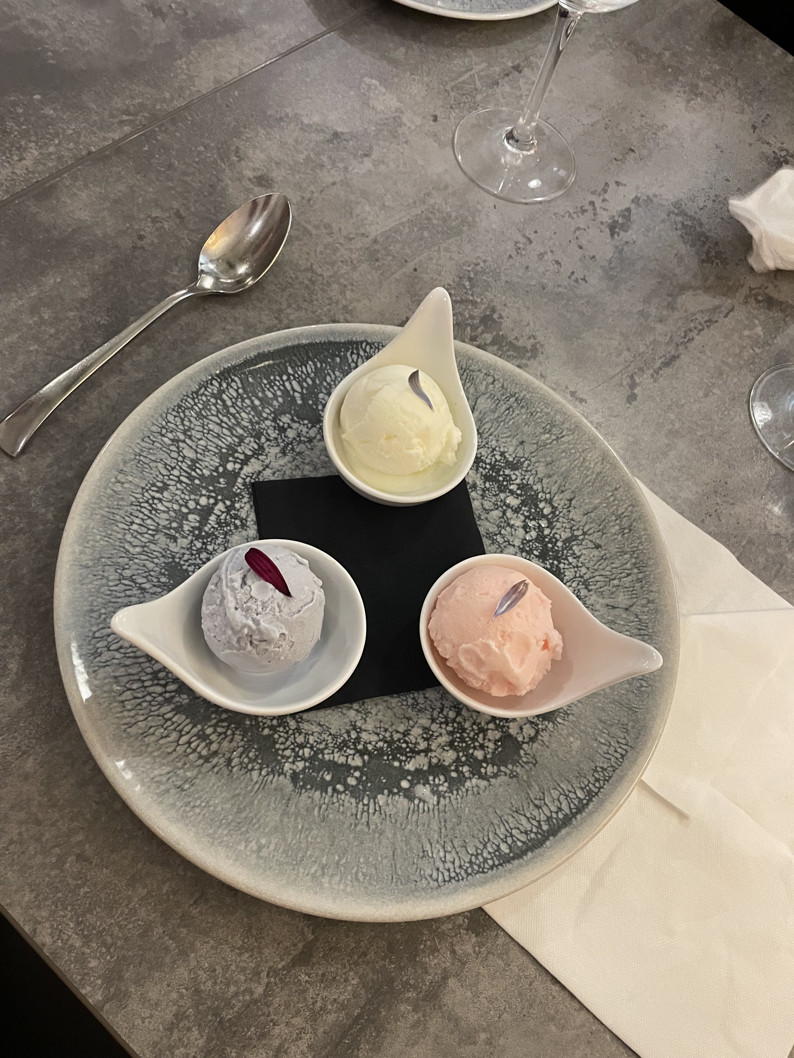 Découvertes de plats décorés de pétales de fleuries ,les desserts glacés aux parfums inédits. Très bon accueil .. un conseil réservé à l avance