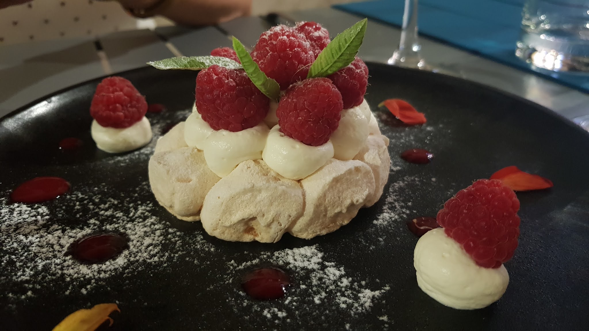Une belle adresse, vraiment chouette. Nous avions dégusté un émincé de bœuf qui a été cuisiné à la perfection (cuisson, sauce,...), une petite tuerie gustative. La seconde assiette qui est bonne (cabillaud lait de coco, coriandre,...) révèle un point faible : le lait de coco, j'adore ce dernier mais là il manquait de pep's, on ressent trop le lait qui vient fatiguer ce bon cabillaud si parfaitement cuit. C'est mon seul point d'amélioration, car après... Après... Il y a eu PAVLOVA. Une merveille, gourmande, pep'sy (via la verveine), acidité par ce coulis de framboise, sucre par la ganache de chocolat blanc... Que dire ? Ah si, comment l'oublier : la meringue, croquante et si fondante à l'intérieur qu'elle restera sur vos maxillaires. J'en rêve encore. Bravo à cette petite maison, je reviendrai goûter le cabillaud !