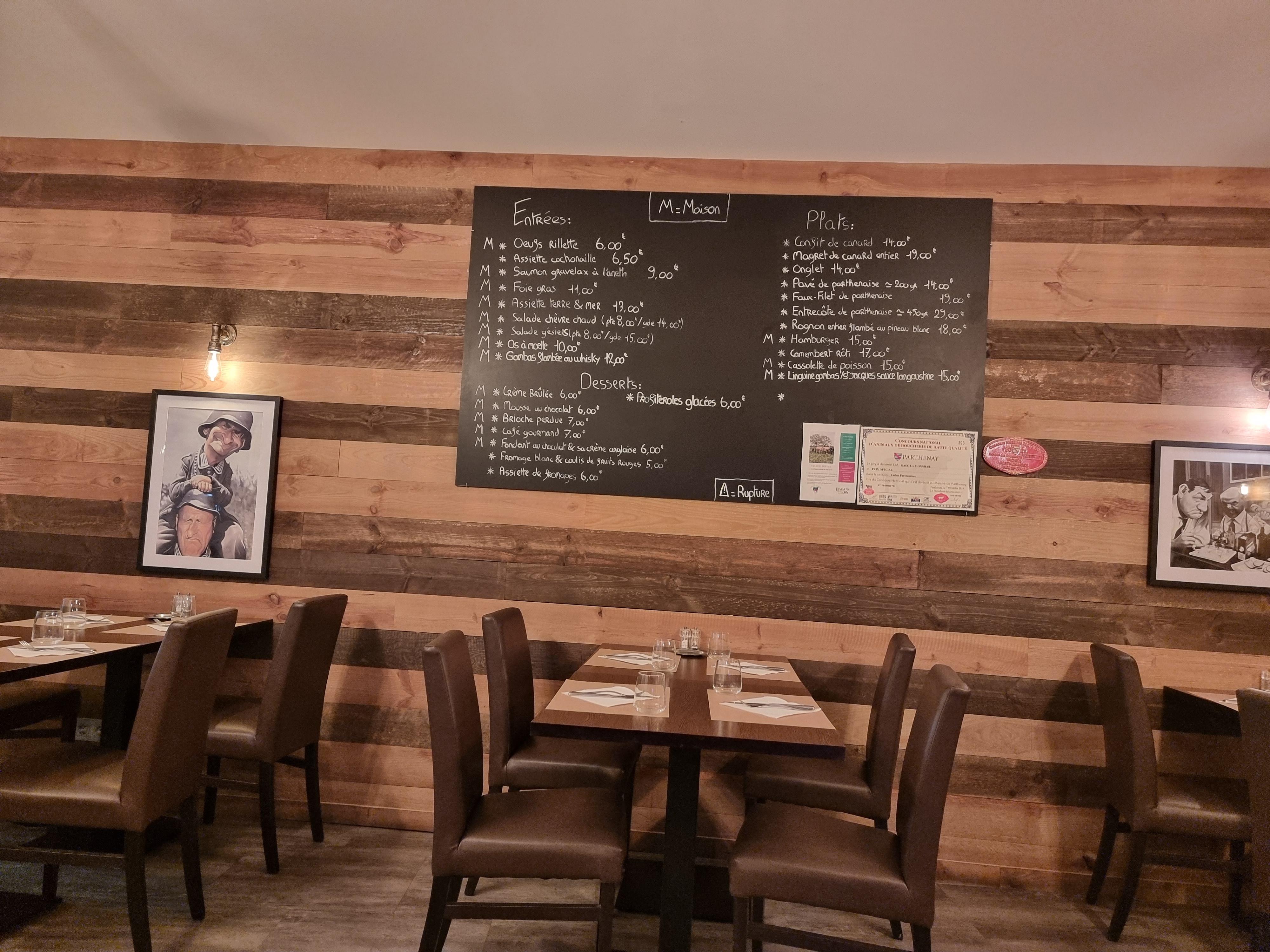 Restaurant agréable,du choix sur la carte . Mais cependant l'onglet avait un goût bizarre. Les tarifs des plats un peu chèr pour ce quil y a dedans et l origine de la viande, de la parthenaise serait mieux !! Pas de sauce avec L onglet. A revoir .