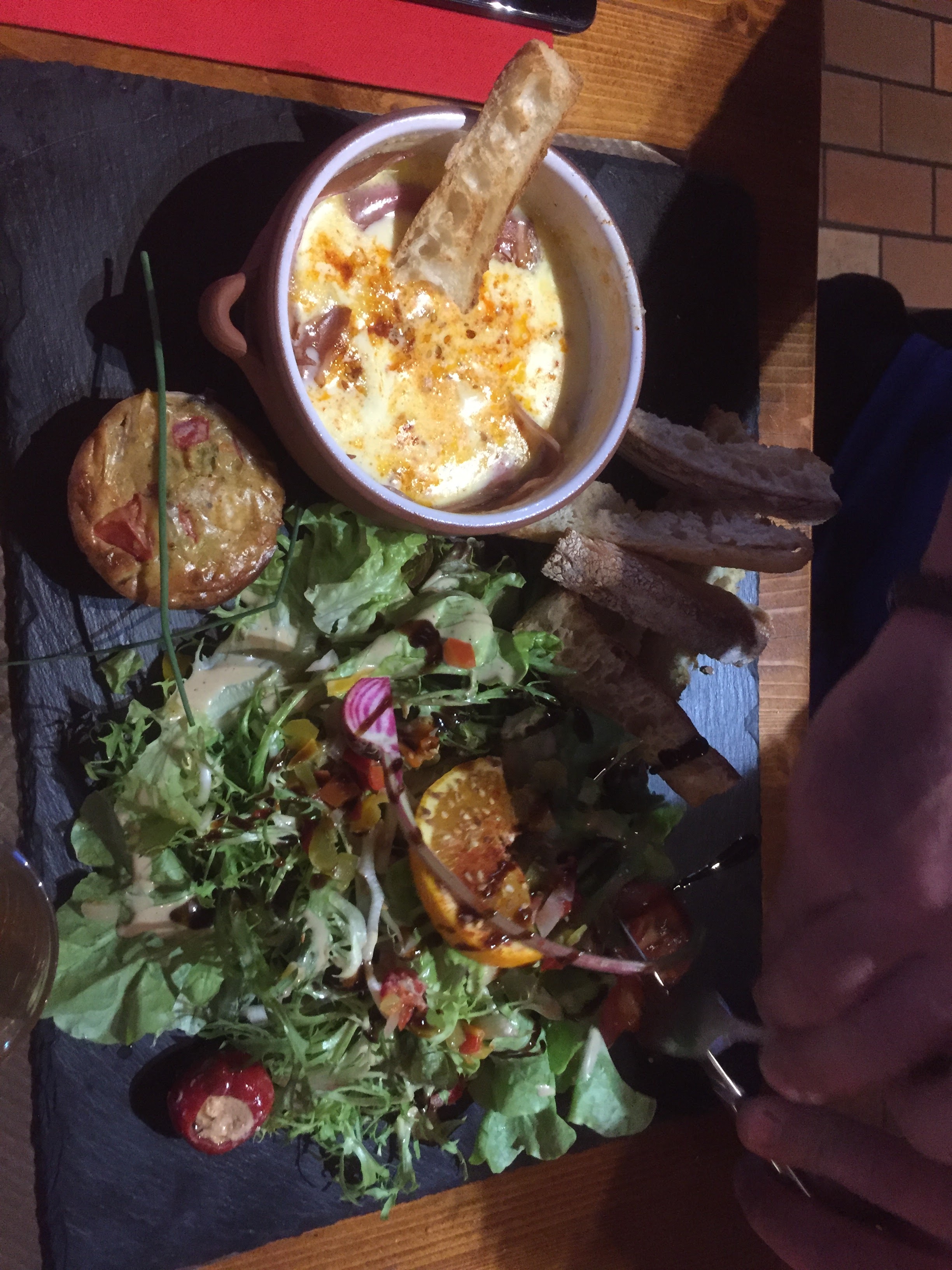Un bon moment de détente avec une bonne assiette charcuterie salade beignets, très bons au passage , et un sublime fondant au chocolat et sans oublier une délicieuse tarte myrtille maison