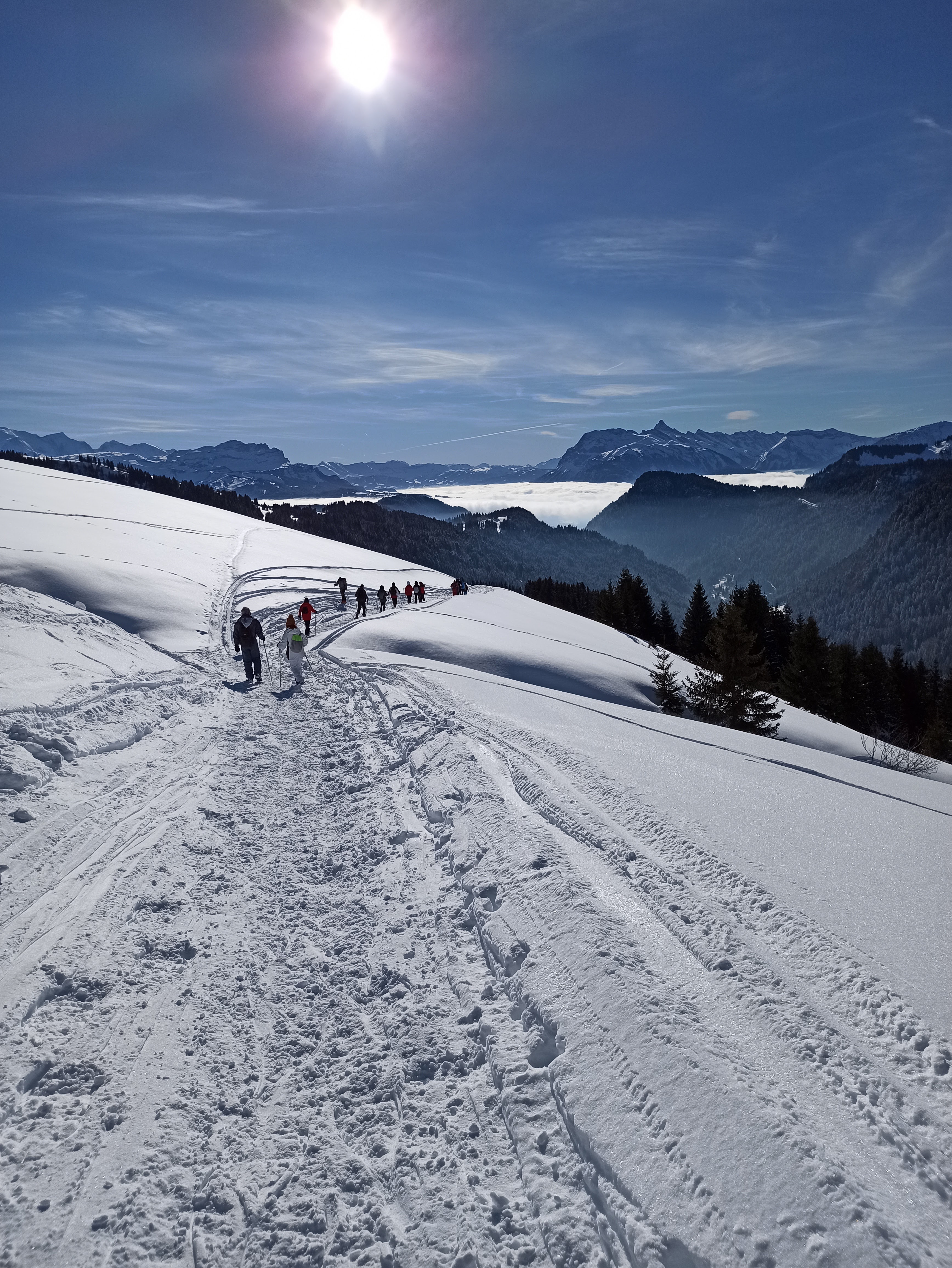 Quelle magnifique journée Après une belle balade en raquettes ou Veronique vous explique sa Haute Savoie, vous vous retrouvez chez elle, elle a cuisiné la Pela et vous vous sentez tout de suite à l aise. Quelques petites douceurs consistantes et liquides viennent terminer ce repas pris dans un cadre magique devant la chaîne des Aravis Bref une journée à ne pas manquer