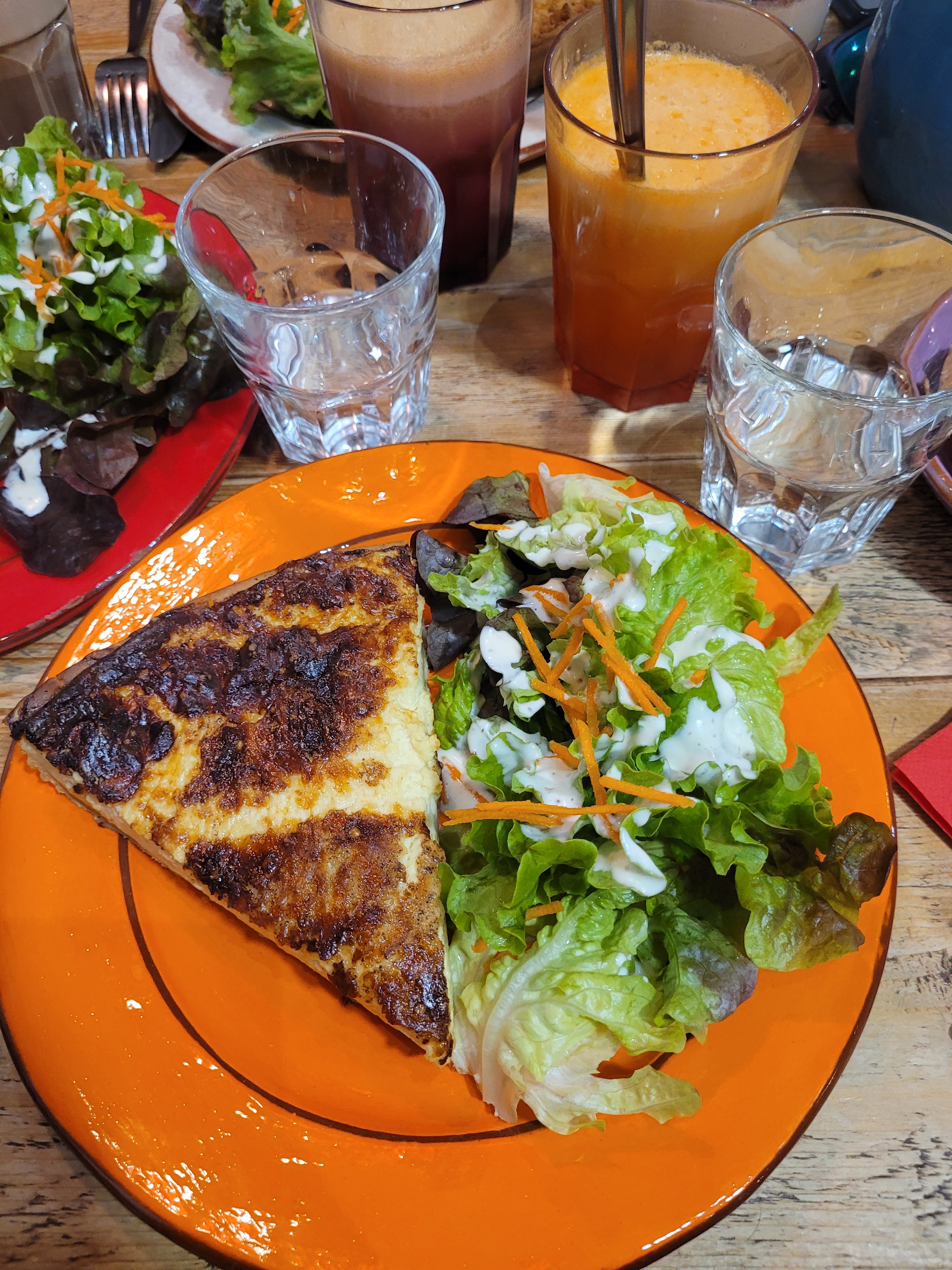 Tarte et salades délicieuses, personnel agréable, efficace et attentif aux problématiques d’allergènes, je recommande