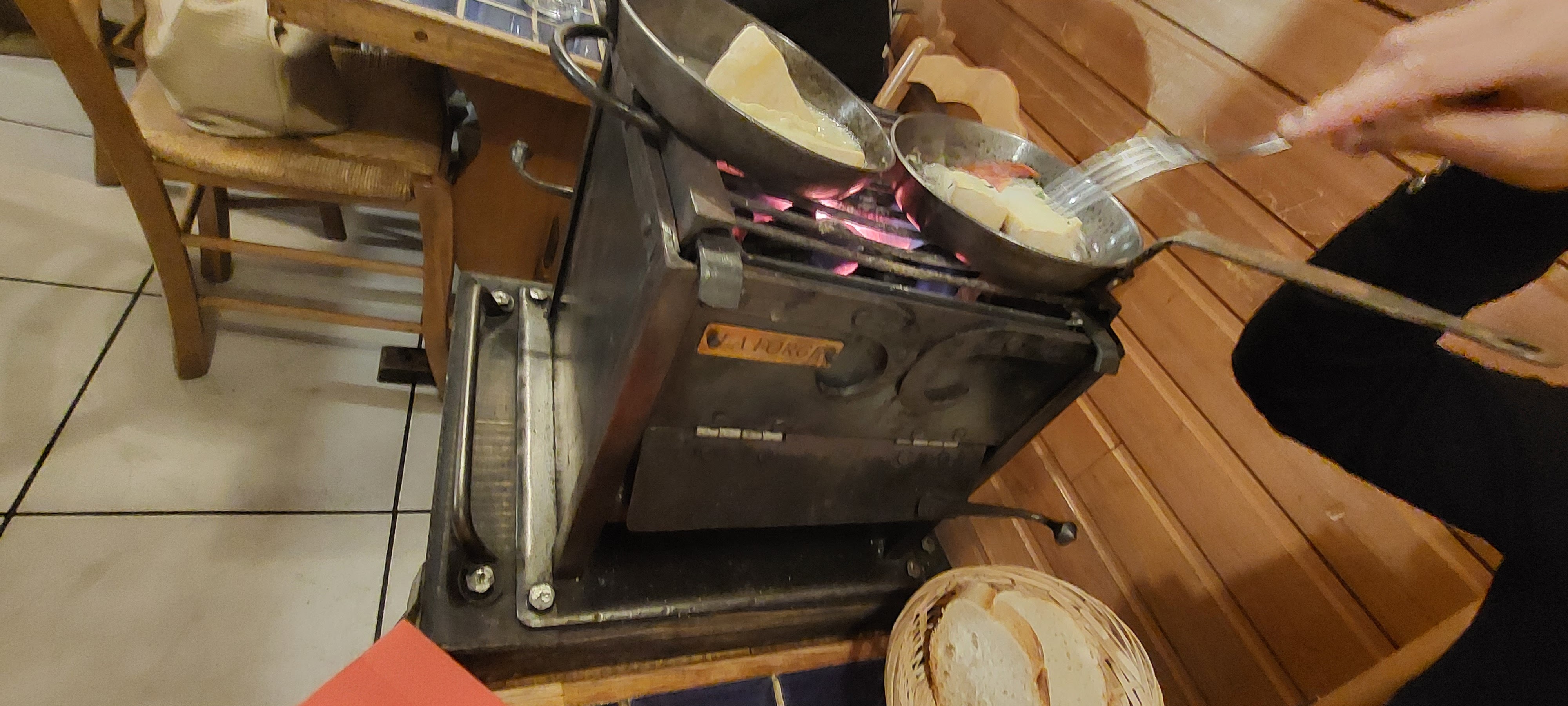 Service rapide et serveurs sympa. Le concept du brasero est hyper convivial. Malheureusement niveau goût cela n'apporte rien. La qualité du fromage semble bas de gamme. Dommage car pour le reste ça va (charcuterie ok, et pommes de terre très bien cuite). Donc 4 étoiles... Pardon 3 car la personne qui fait les desserts sur le côté passe son temps à se lécher les doigts, puis prend les assiettes sans jamais passer par la case lavabo durant tout le service. Beurk