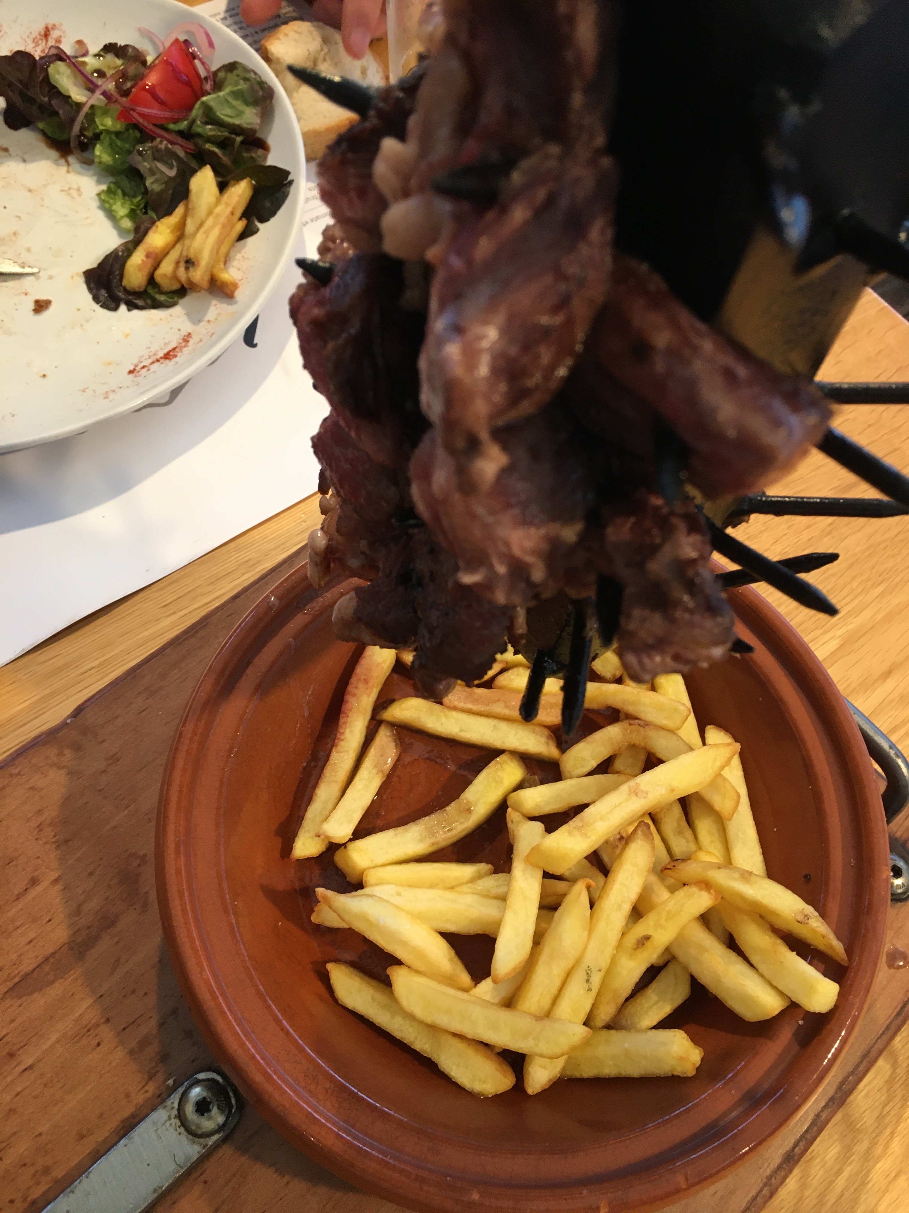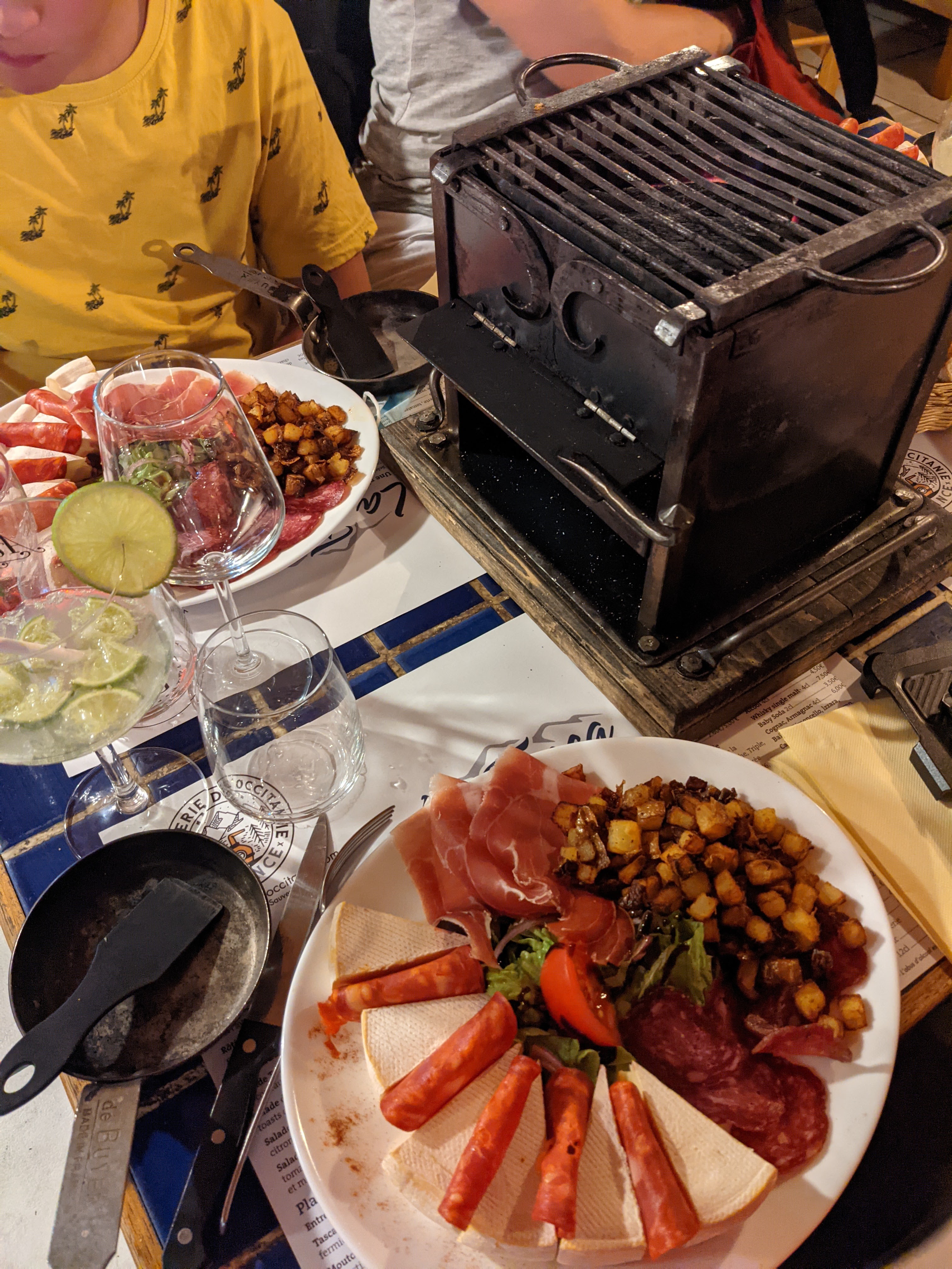 Superbe expérience! Voilà un resto qui fait des choses simples, mais qui les fait bien. La carte s'articule autour des grillades, des planches de charcuterie et de la spécialité de la maison, le braséro de table! Un brasero en fonte chargé de charbon incandescent, sur lequel on peut déposer des caquelons chargés en fromage (Reblochon et chèvre) ou des morceaux de viande rouge (environ 600g pour 2). Les accompagnements sont parfaitement dosés, et, encore un point positif, la salade est assaisonnée avec une vraie vinaigrette maison (c'est un détail, mais c'est souvent révélateur de la qualité du cuisinier). Derniers points positifs : les cocktails au gin local sont délicieux et le service efficace. Que demander de plus?