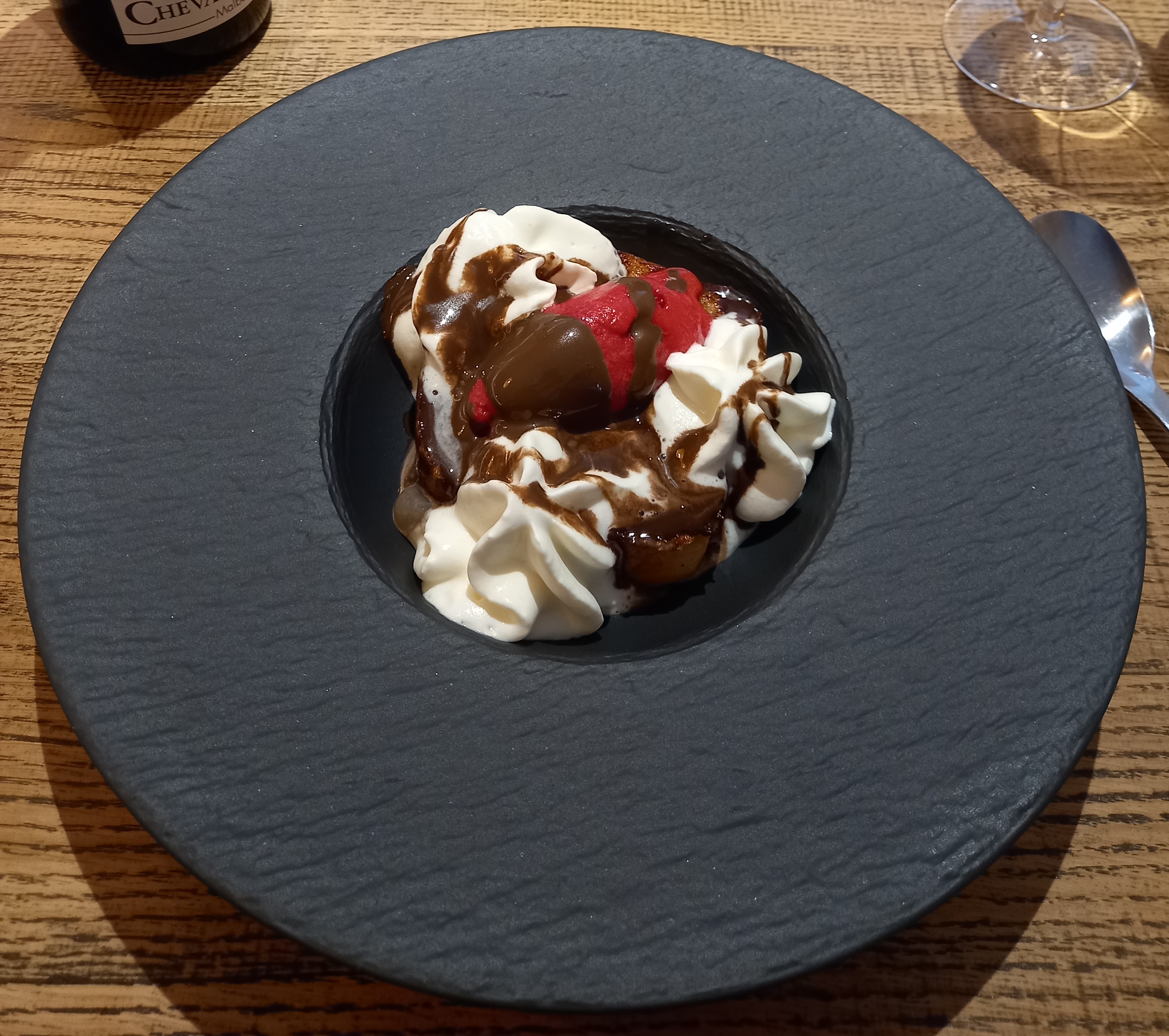 Déçus par le magret en cocotte (dur), l'accompagnement du filet de truite trop salé, le dessert avec trop peu de grains de raisin. L'ambiance était agréable, mais l'éclairage était insuffisant et nous ne pouvions voir véritablement ce que nous mangions.