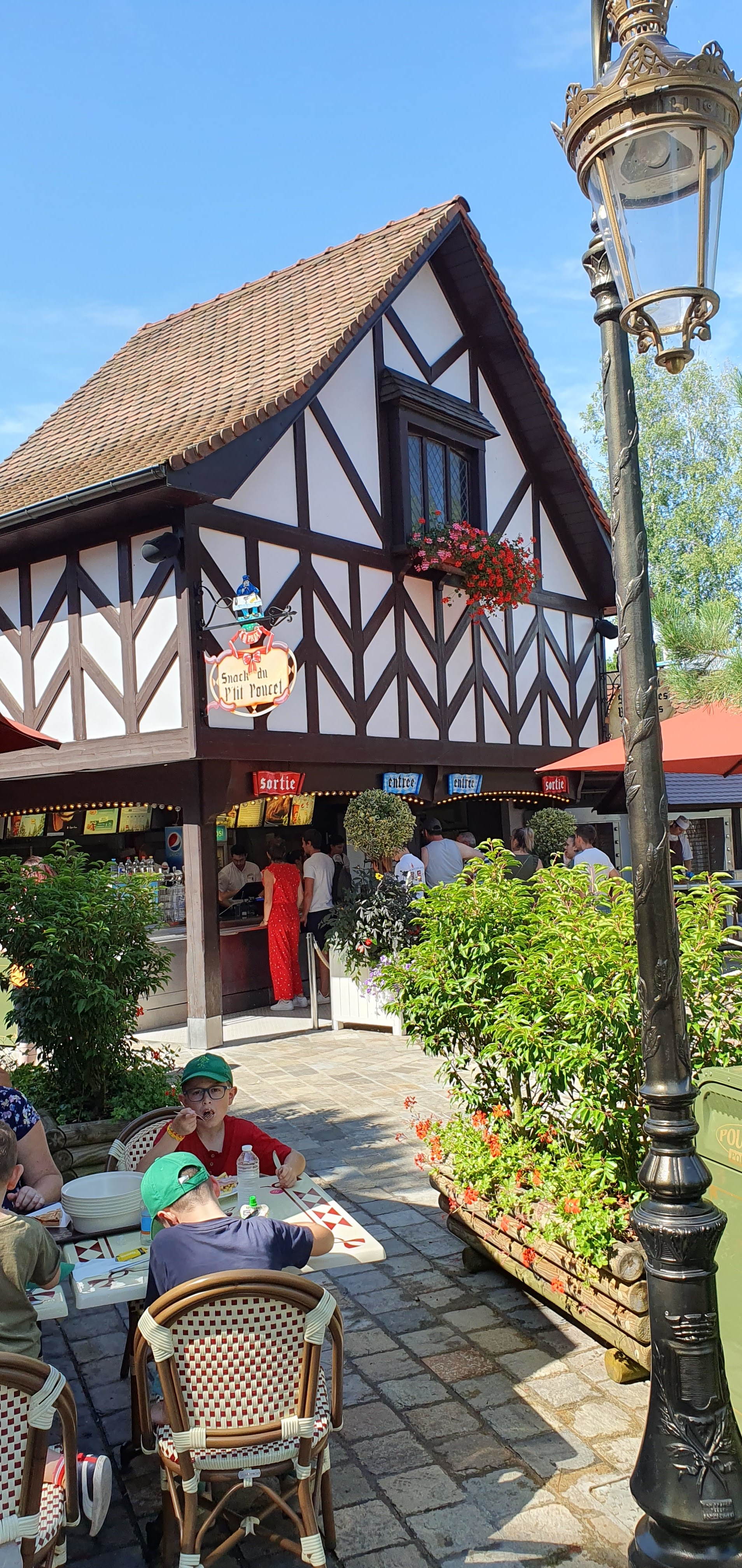 Service est rapid, la nourriture est bien chaud. Cependant le prix est trop cher. Nous sommes allés le 12/08/19 et nous avions 2 adultes et 1 enfant de 4 ans. Nous avons pris un morceau de poulet, un morceaux de jambon grillé, une saucisse, tout ça avec des frittes, un coca 40cl et un 30cl (c'est à dire que 1 grand, 1 petit, à Nigloland il y a que 2 tailles). Ça coûte 39€40. Oh mon dieu!!!