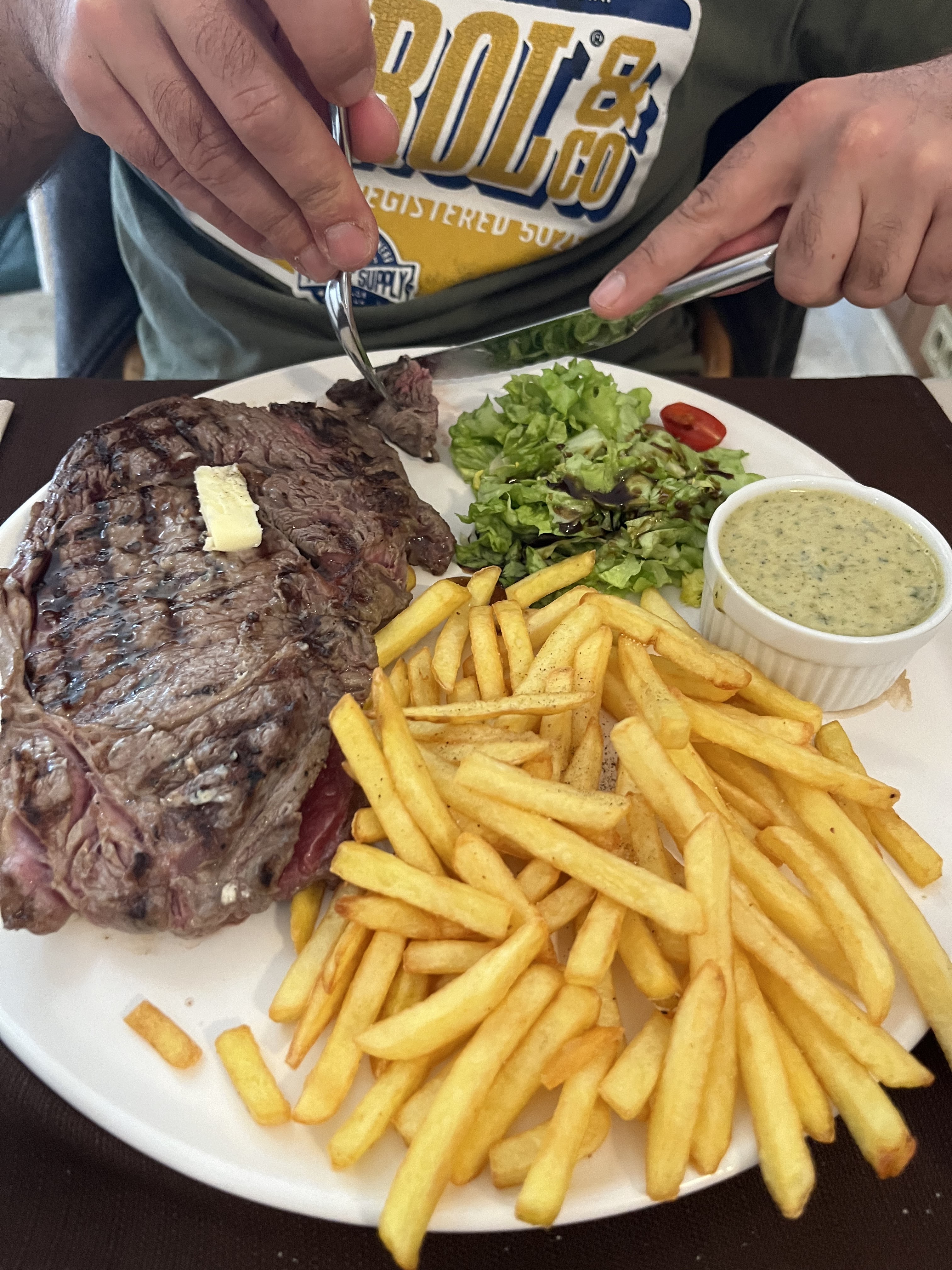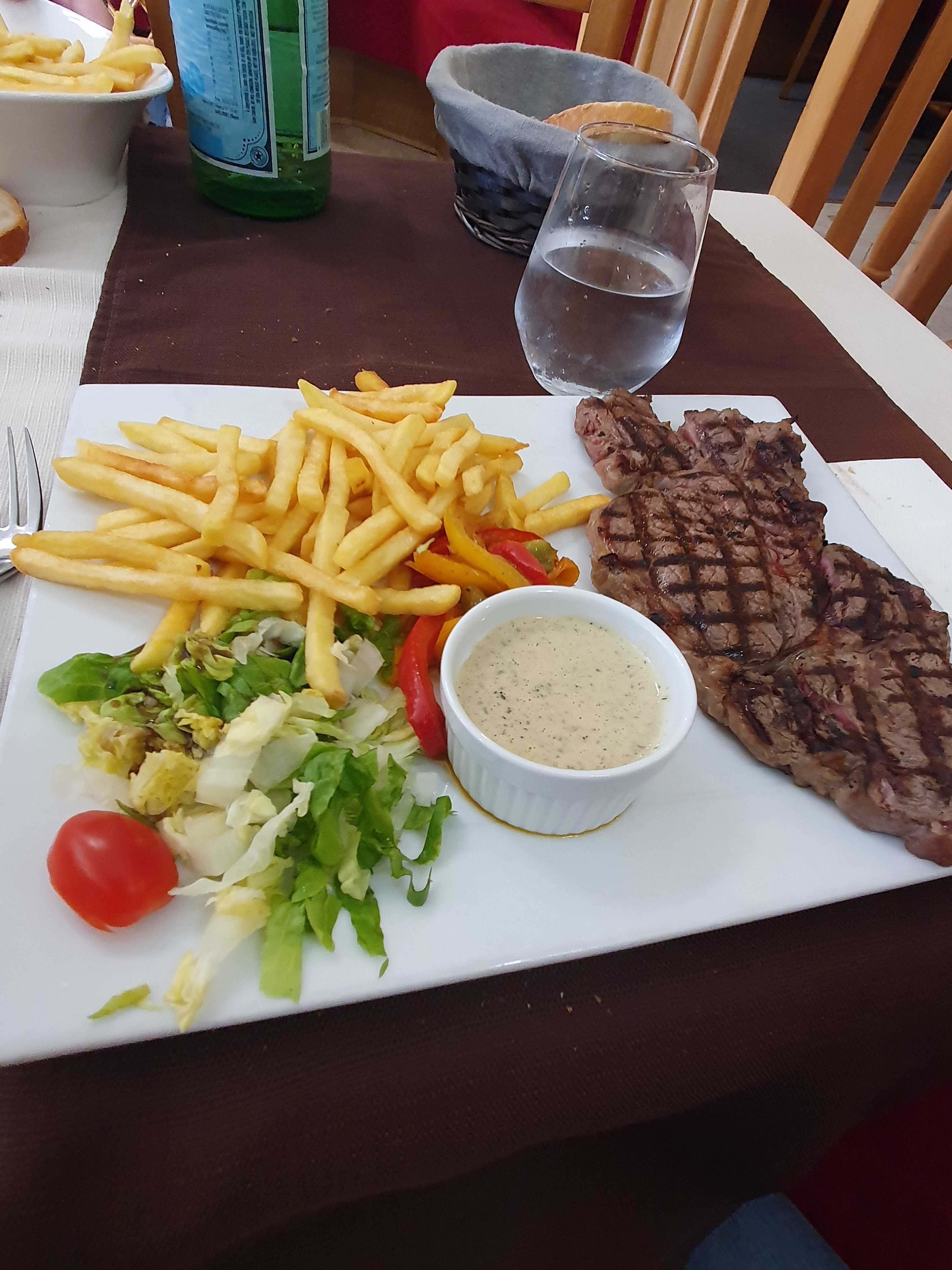 Sauce au poivre malheureusement fade Frites surgelee Mousse au chocolat doute que elle soit 100% maison