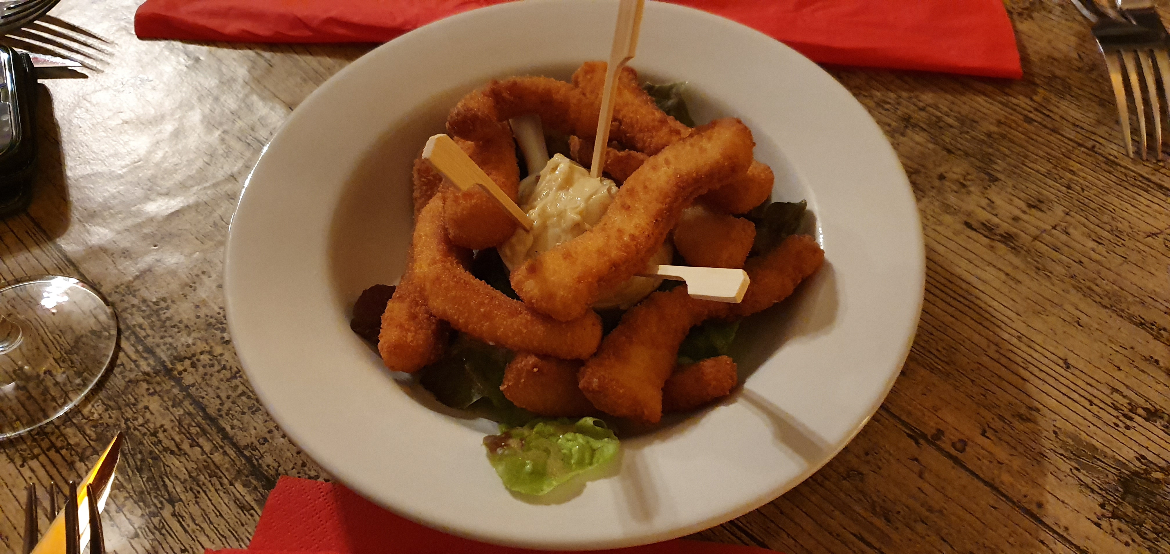 Plat du jour plus que basique pas bon pâtes et calamars servis dans toute petite assiette et fades. Calamars caoutchouteux Très déçu pour 13.50 avec un petit dessert.