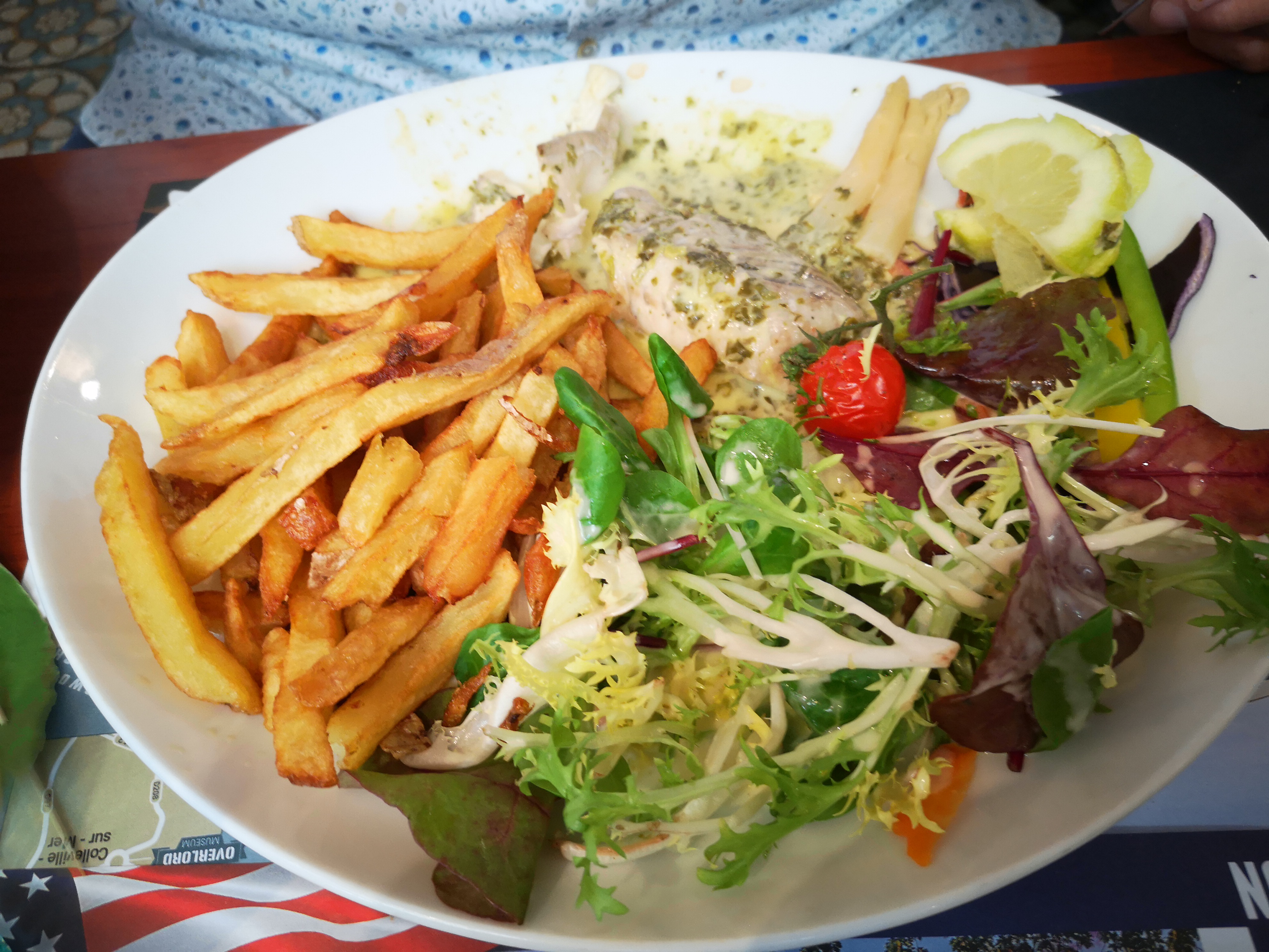 Je visitais les plages du débarquement. C'était un café/bar décontracté. C'était un après-midi ensoleillé et nous avons profité d'un bon long déjeuner dehors. J'ai eu un aiglefin avec une sauce au sorrol qui était excellente. Le prix était également d'un bon rapport qualité/prix.