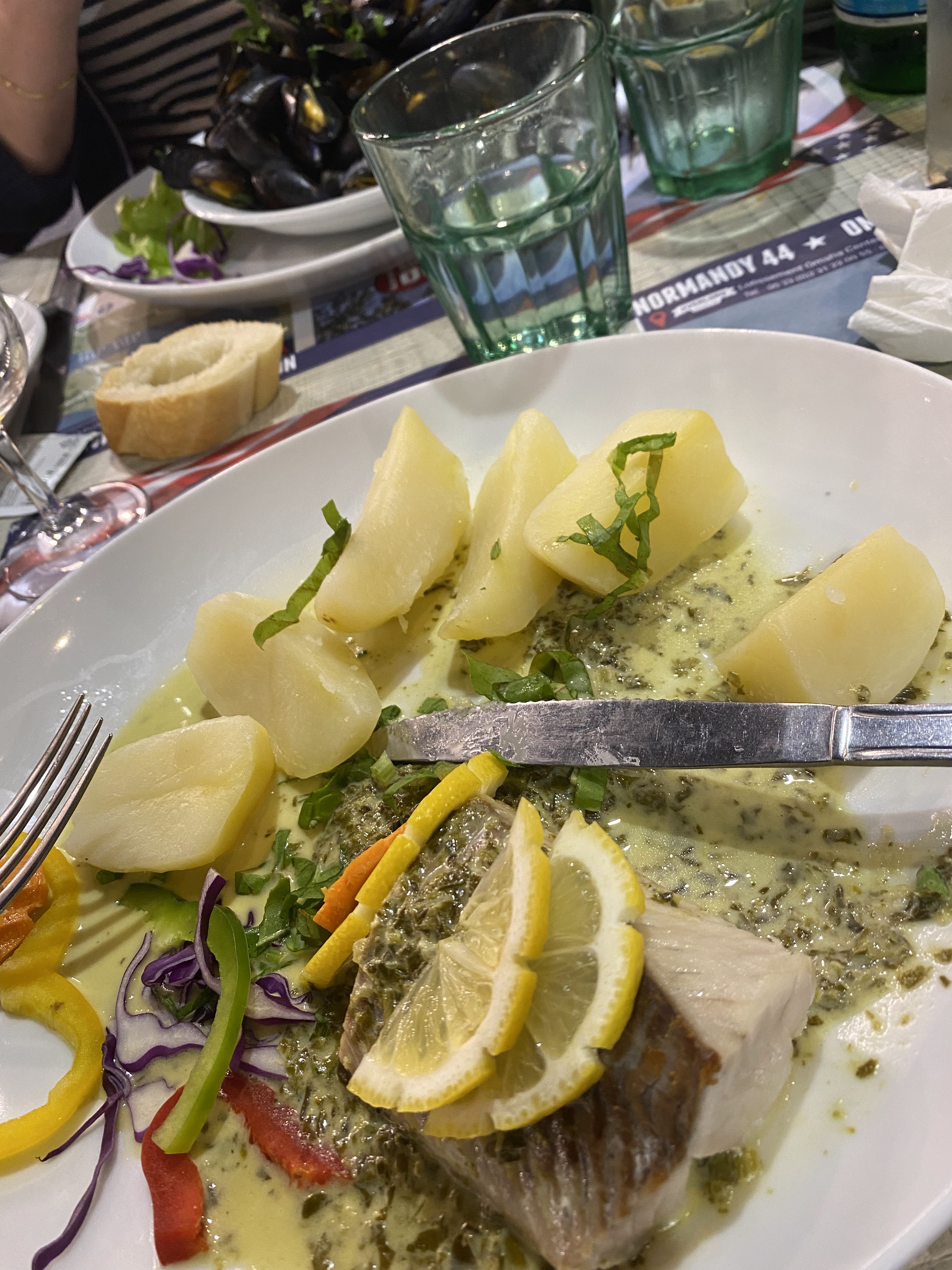 Nous avons mangé ici probablement 7 à 8 fois pendant notre séjour en Normandie car notre maison de location était de l'autre côté de la rue. Nous avons mangé des huîtres, du foie gras (des foies de poulet je pense), du Saint-Pierre, et tout ce que nous avons mangé était tellement délicieux et merveilleux. Je rêve encore des pommes de terre et de l'Ile flottante. C'est un endroit chaleureux et merveilleux où l'on trouve certains des meilleurs plats du monde. Juste délicieux.