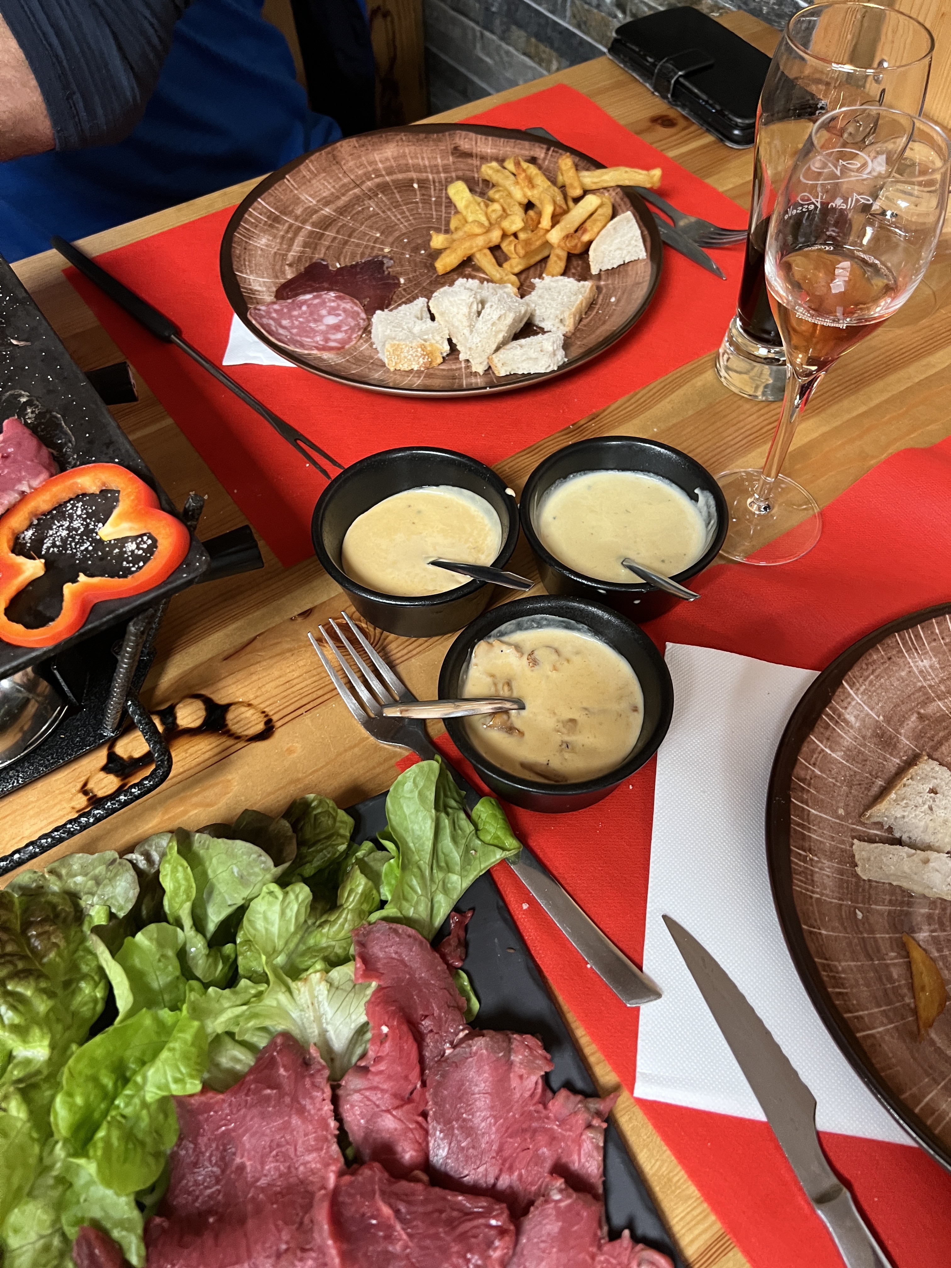 Une raclette saumon et une raclette charcuterie... Excellentes !!! Des coupes de glaces géantes et excellentes !!! Un digestif offert par le patron... Merci !!! Dommage que le retour de vacances... C'est demain... Je vous conseille vivement ce lieu !!!
