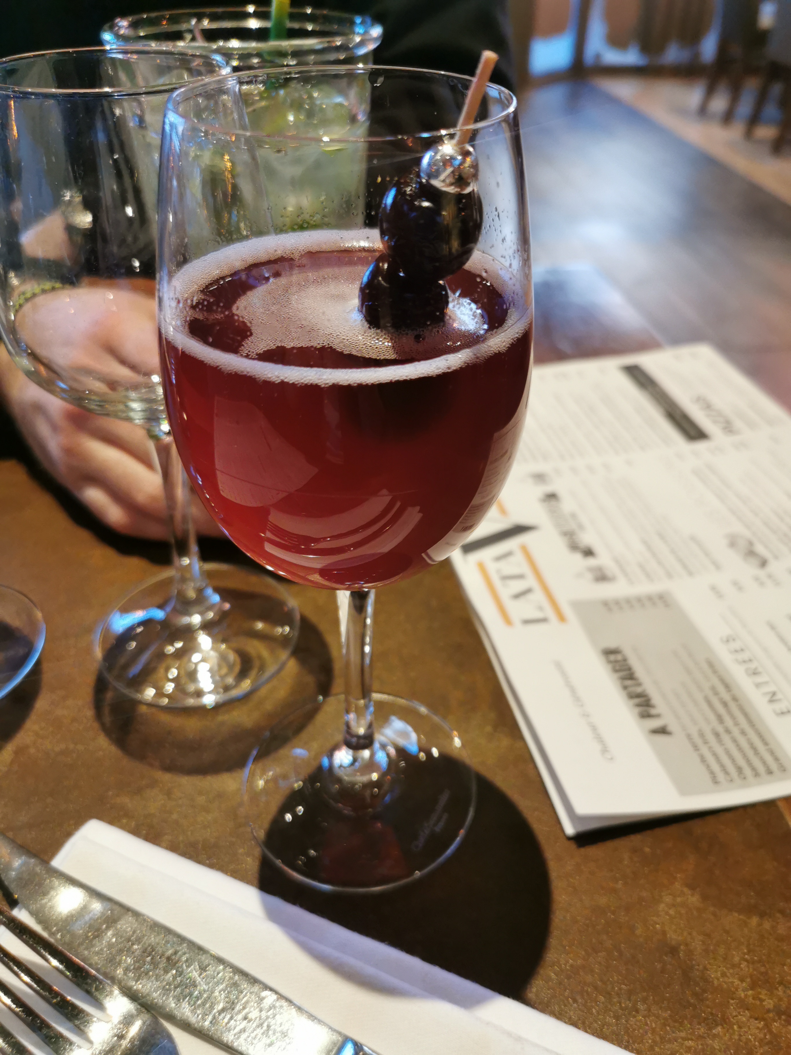 J'ai connu il y a plus de 20 ans la Taverne de Maître Kanter, depuis c'est devenu plus moderne et simplement La Taverne : brasserie et bar à cocktails. L'un des rares restaurants ouvert et servant après 22h à Rennes !!! 23h15, ils servent encore... Grand, très grand, avec même une salle de mariages et séminaires. D'aspect assez chic, belle décoration et vitrine de bouteilles de vins très élégante, j'ai été surpris par les prix plutôt raisonnables, qui contrastent avec l'aspect haut de gamme. Il y a peu d'entrées, mais le mieux est de prendre une grande Flammenkueche à partager, déjà prédécoupé en petits carrés. Celle au saumon, poireaux et pesto est très bonne. En plats, vous avez le choix entre viandes, poissons, fruits de mer, burger, Flammenkueche et choucroutes. Les moules, que ce soit au Rockford, à la crème ou marinière, vous avez la quantité ! ce ne sont pas les meilleures du monde, mais c'est pas mal !!! Moi, je voulais un plat original, j'ai choisi le Burger au Saumon, c'est plutôt bon. Les frites, elles sont faites maison... Un bon choix de bières et de cocktails avec ou sans alcools. Une belle carte de coupes glacées, avec ou sans alcool, et quelques desserts originaux. S'il y a la profiteroles géante, il y a surtout la verrine façon miojito qui est idéale pour terminer en douceur un repas. Vous avez également un espace jeux pour les jeunes enfants, question de les occuper pendant que vous mangez. Seul soucis, le bruit ! Pas bien insonorisé, on entend les bruits et les conversations tout autour ! Et c'est pire lorsqu'il y a un mariage, on profite également de la fête de la pièce adjacente et de leur musique... Donc, si vous cherchez un endroit calme, il faudra aller ailleurs... Ticket moyen par personne, sans alcool : 25 euros...
