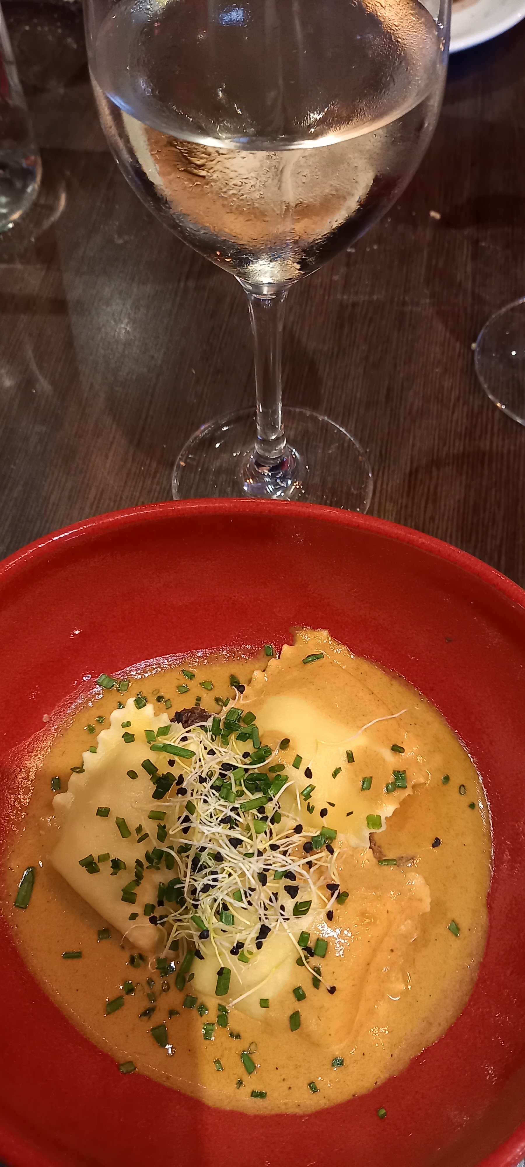 Repas de groupe avec plats choisis en amont. C'était délicieux, le service a été efficace. Notre salle avait une bonne acoustique ce qui a permis de belles discussions malgré le nombre que nous étions (pas de cacophonie).