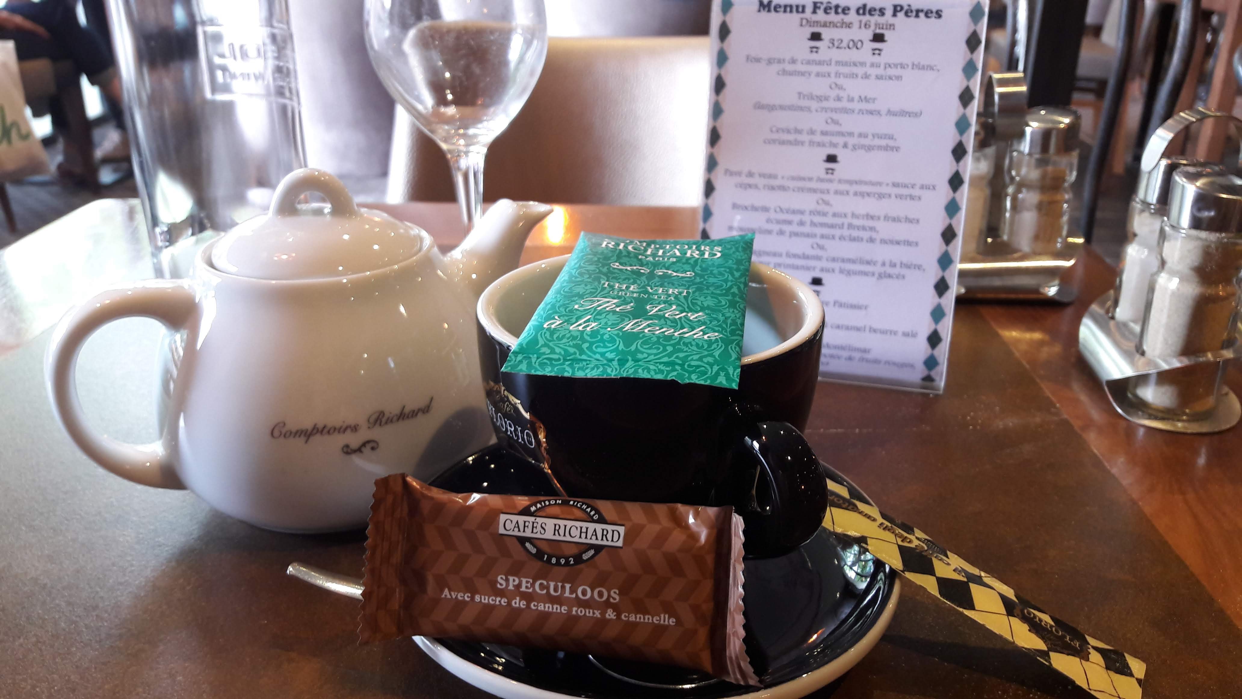 J'ai eu l'occasion de profiter d'un dîner, offert par un sponsor, à la Taverne. Ce restaurant emblématique de Rennes me faisait rêver depuis longtemps. Et là, grosse déception ! L'entrée était immangeable, trop de vinaigre. Il a fallu beaucoup de pain pour la faire passer. Quant au plat, correct, si on oublie que le réchauffage du plat (au micro-ondes ?) a fait sécher le riz. Je n'ai pas fait la photo du dessert, riz au lait avec du caramel dessus, car catastrophique. Je suis vraiment déçue !