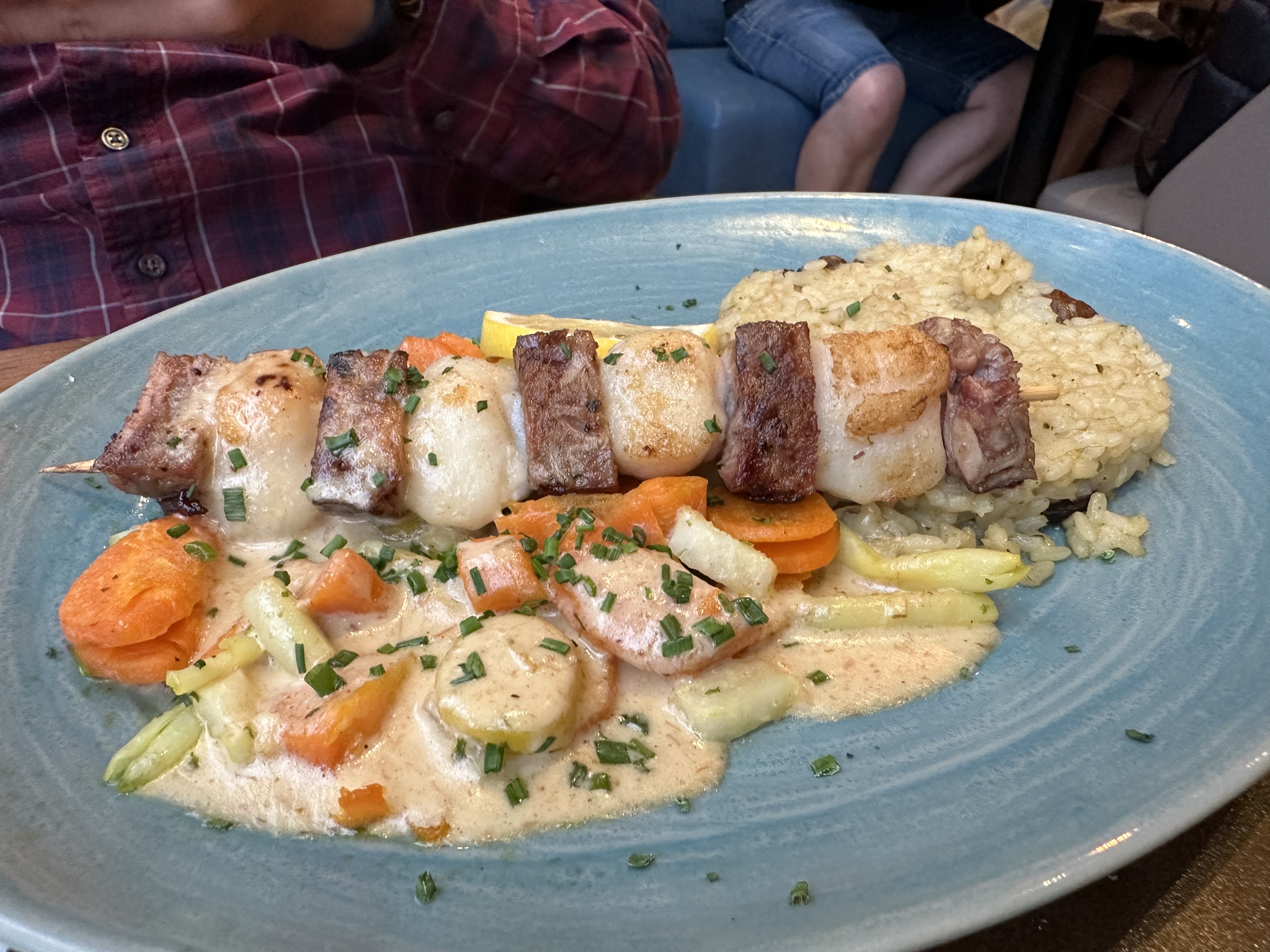 Bon restaurent, belle déco, on a demandé à changé de table car on avait peur qu’il fasse trop sombre en fin de soirée, et ça a été fait sans souci ☺️ Belle présentation et bon service, un petit peu trop gras à mon goût la sauce et le canard mais c’est allé, mauvais dessert pour mon copain mais ça c’est réglé et il n’est pas français donc il n’a peut être pas bien prononcé non plus 😅 on s’excuse si ça a dérangé car le serveur n’avais pas l’air très patient à la fin. Je recommande, cependant je pense que la prochaine fois nous prendrons les fruits de mer 😁 Nous y sommes retourné et les serveurs étaient très gentils, nous leur avons offert des bonbons pour Halloween, cette fois fruits de mer, et c’était excellent, merci beaucoup 😁