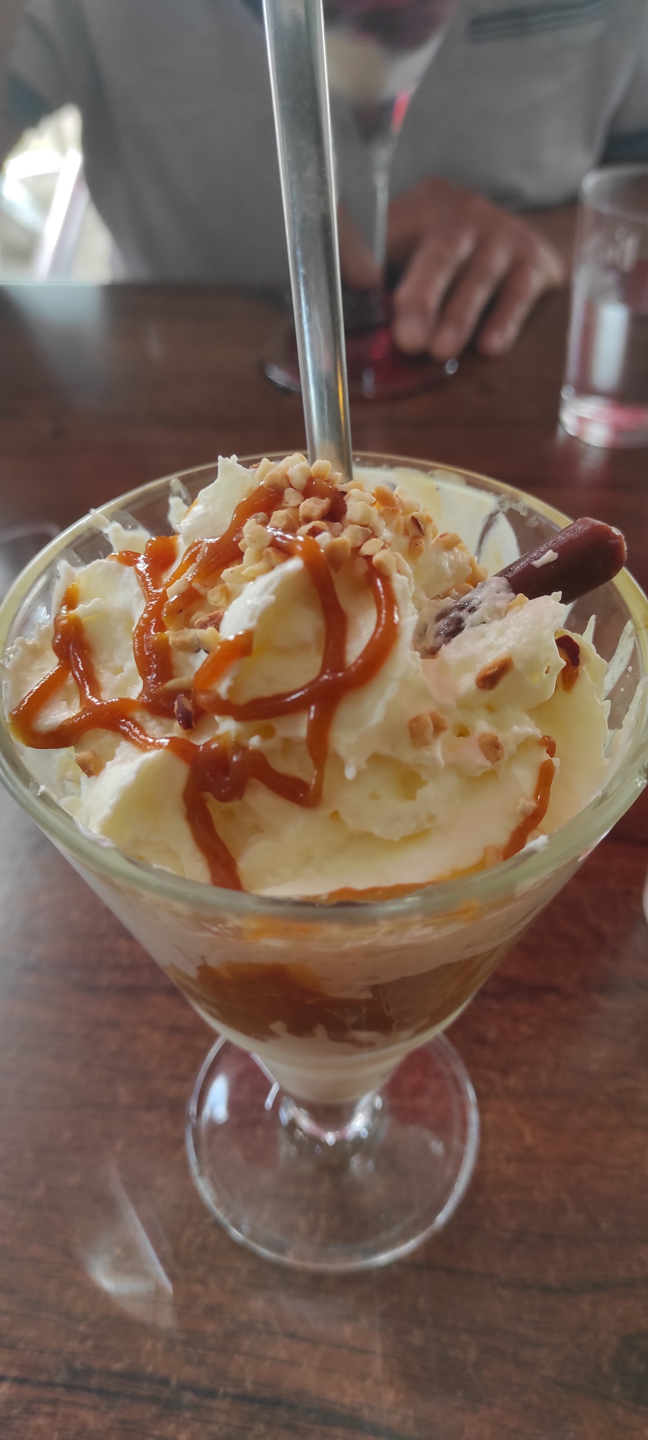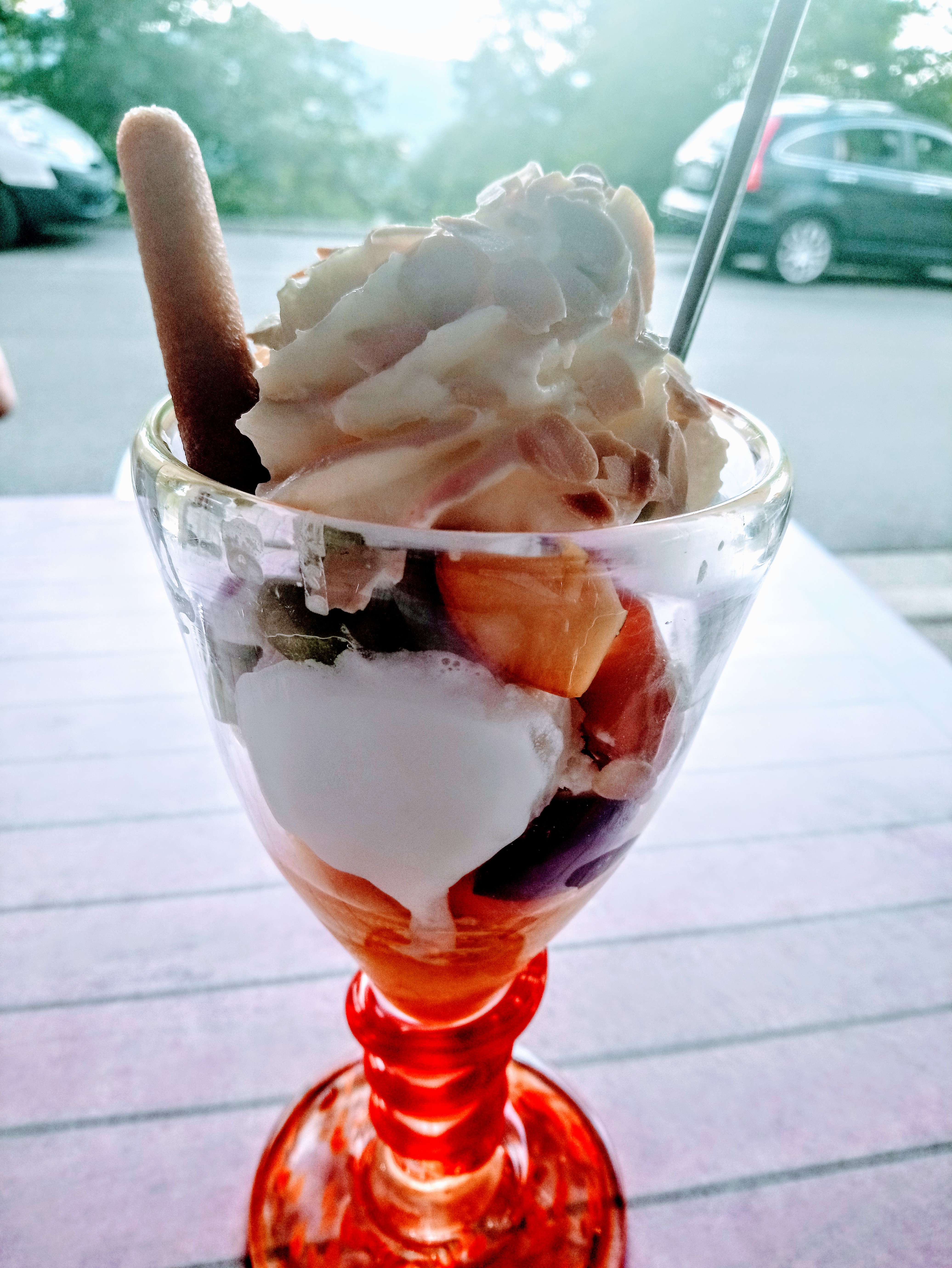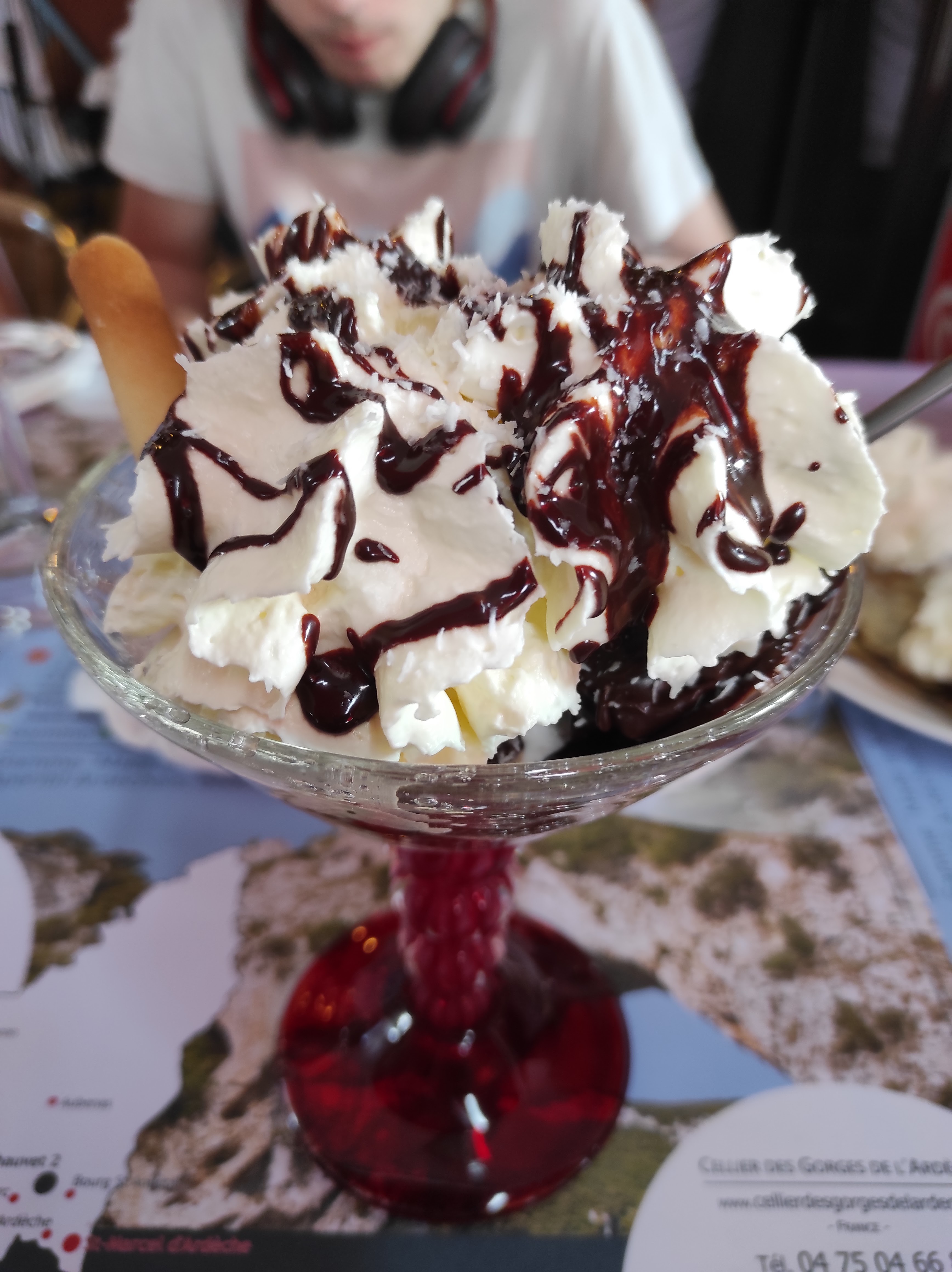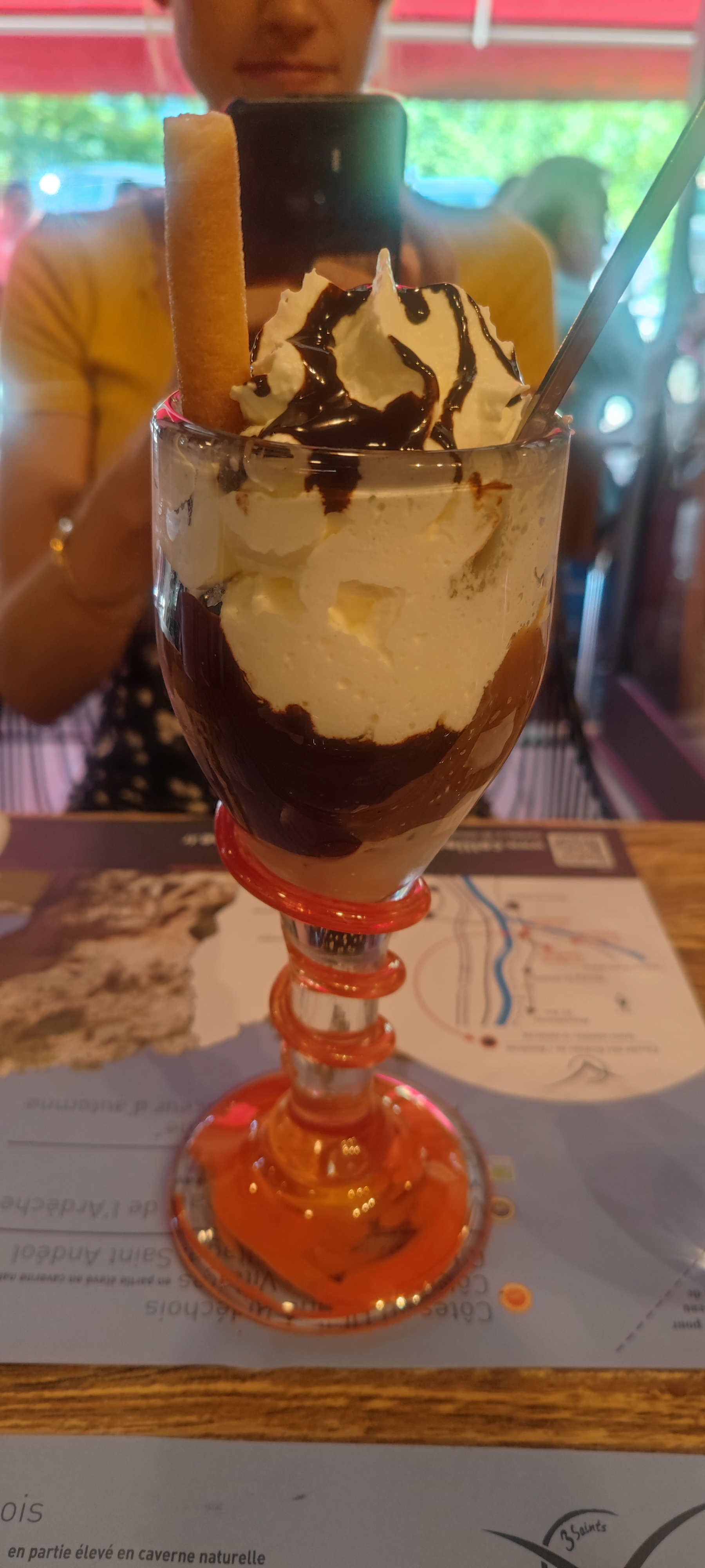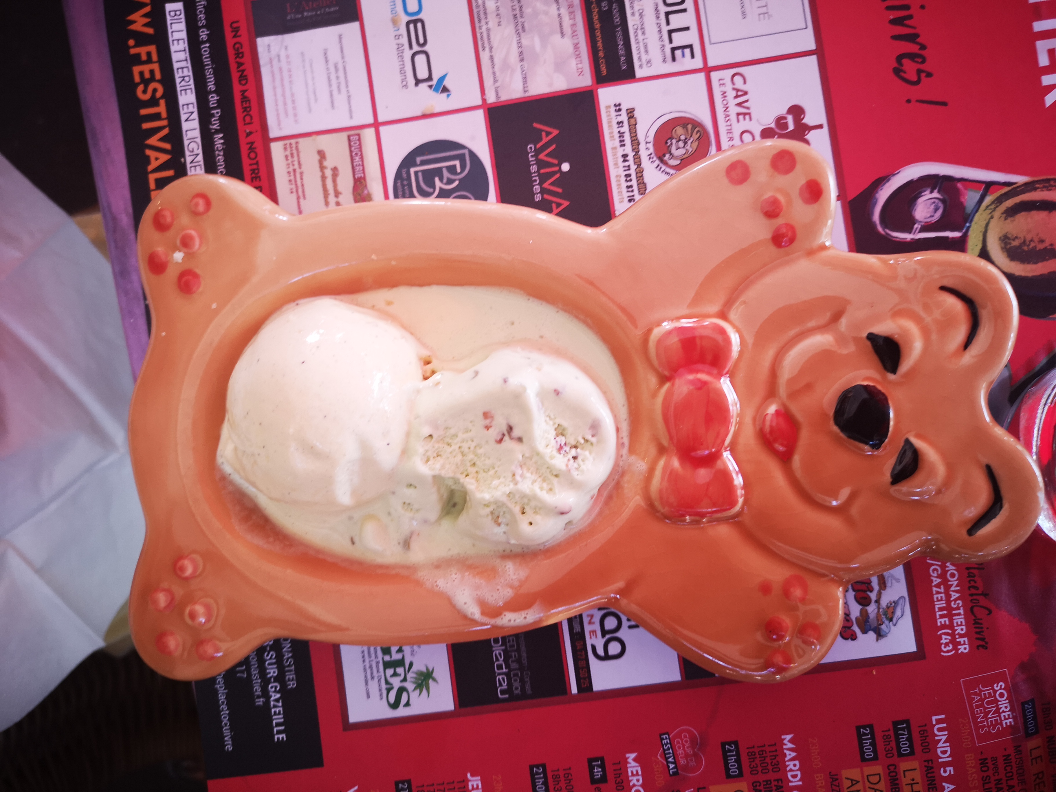 Superbe glace au Carmel salé avec carambar d'où son nom. Beaucoup de choix tout aussi beau. Après avoir profité du lac et des environs (superbes randonnées) lieu de bon accueil et très beau et bon service'