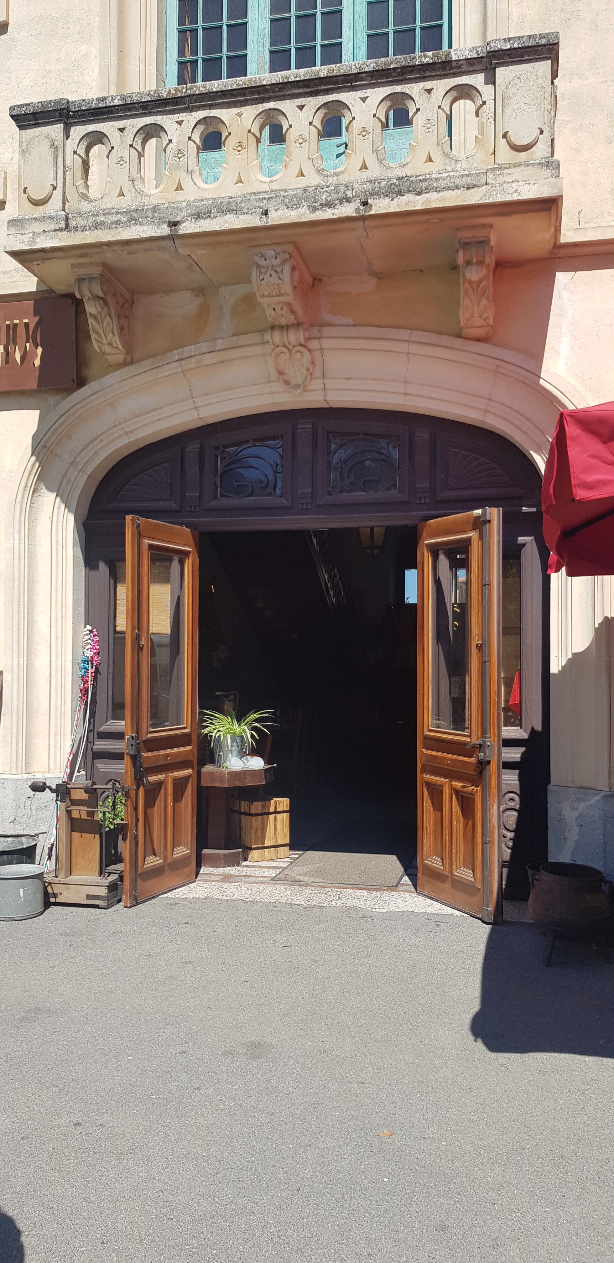 Quel restaurant incroyable. Bonne nourriture et caractère merveilleux. Nous venons d'avoir un menu du jour spécial avec vin rouge, assiette de charcuterie, gros magret de canard grillé avec pommes de terre rôties, crêpes aux figues et crème chantilly, et café pour seulement 25 Euro ! Déjeuner spécial en semaine uniquement. Délicieux. Le bâtiment est un château viticole orné d'objets intéressants. Le personnel est enthousiaste et adorable.