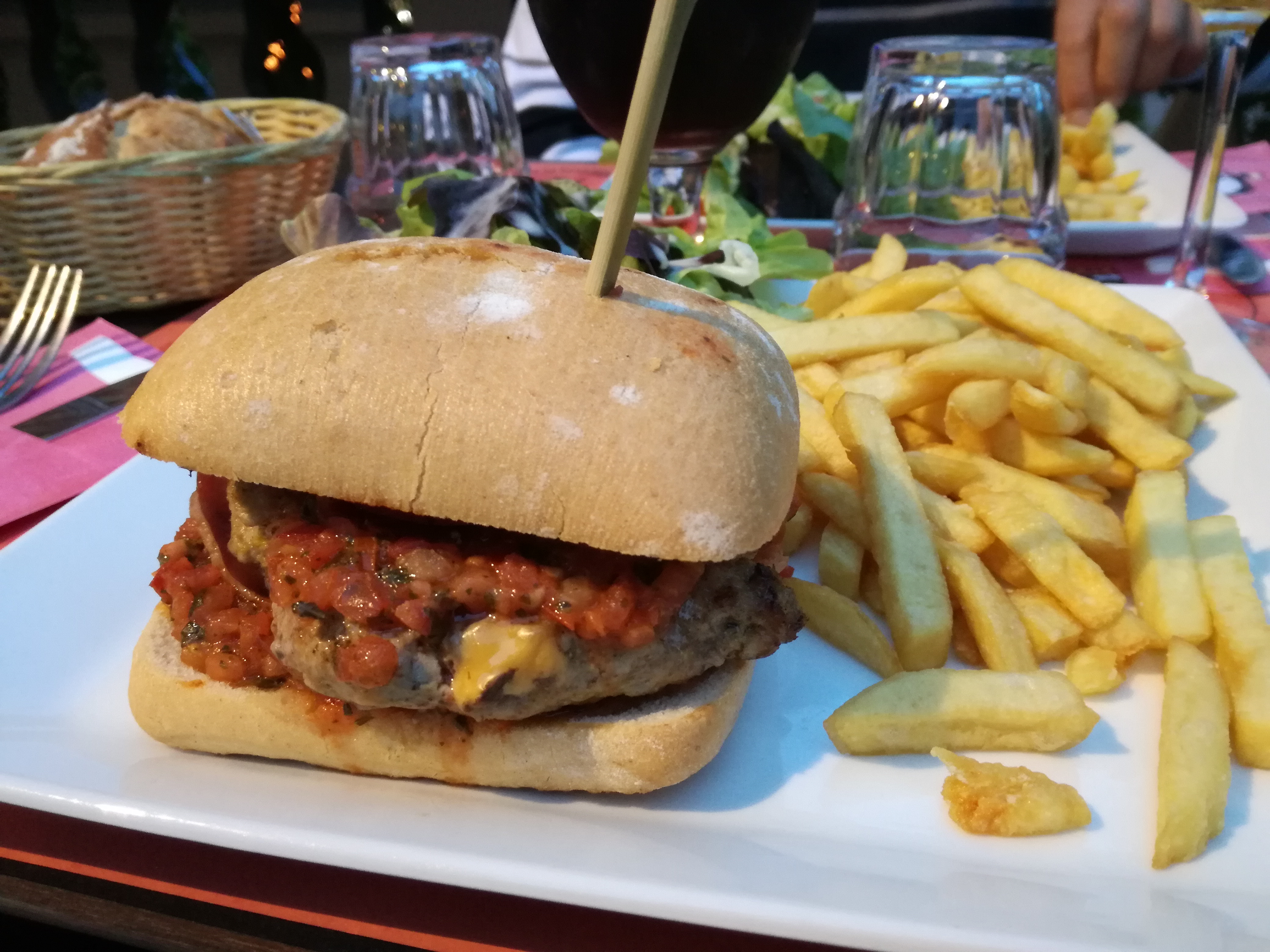 Chocolat chaud de Noël aux pain épices plutôt au sirop goût pain d'épices. Hamburger Savoyard avec pain rustique, bonne viande, bon et copieux. Frites pas maison et salade. Globalement bien mais je ne reprendrais pas le chocolat, beaucoup trop sucré.