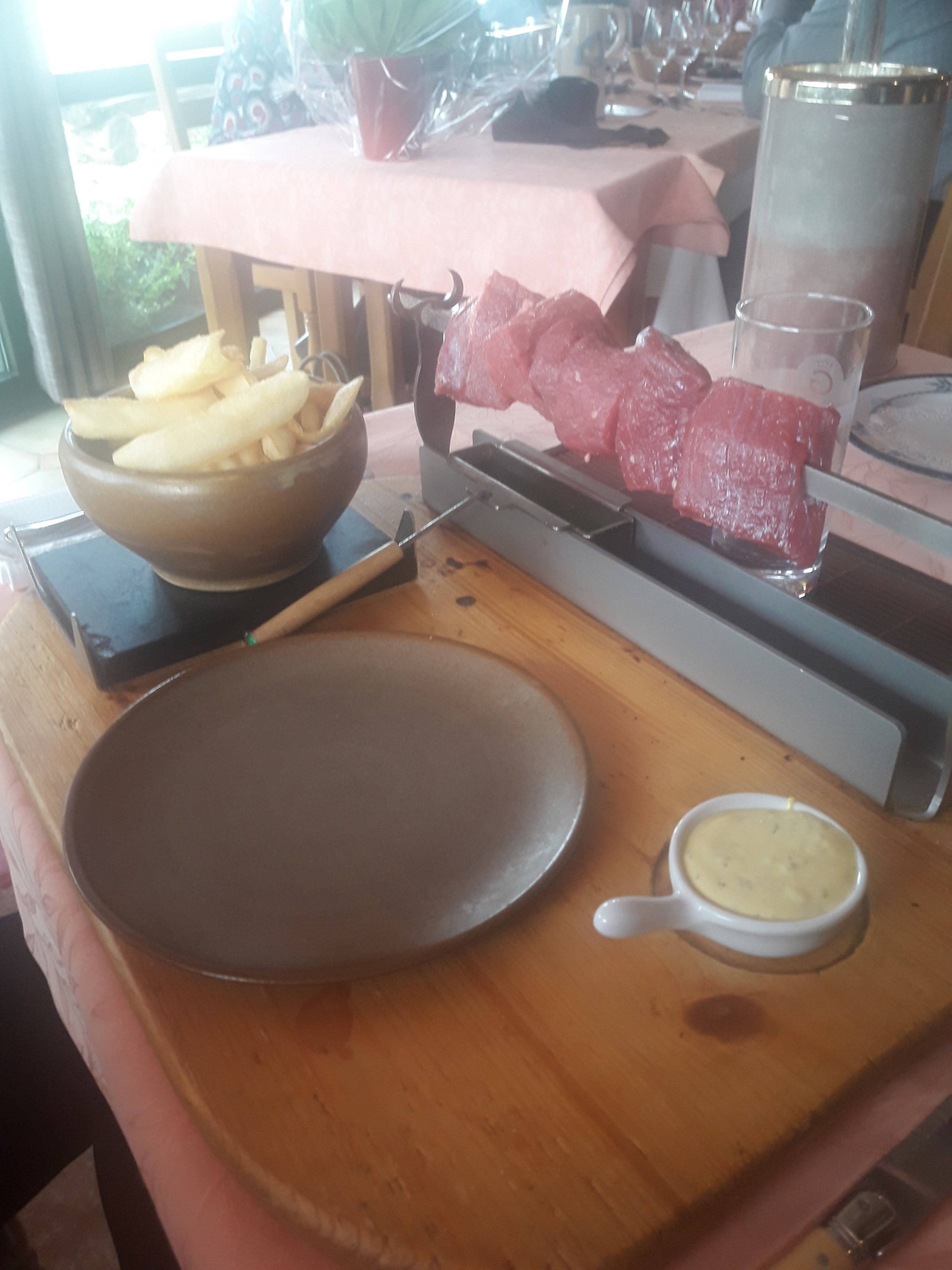 Bon accueil, grenouilles très charnues et goûteuses,viande sur brochettes à cuire excellente, dessert corret mais pas fait maison. Déco vieillotte, mais dans l ensemble bien.