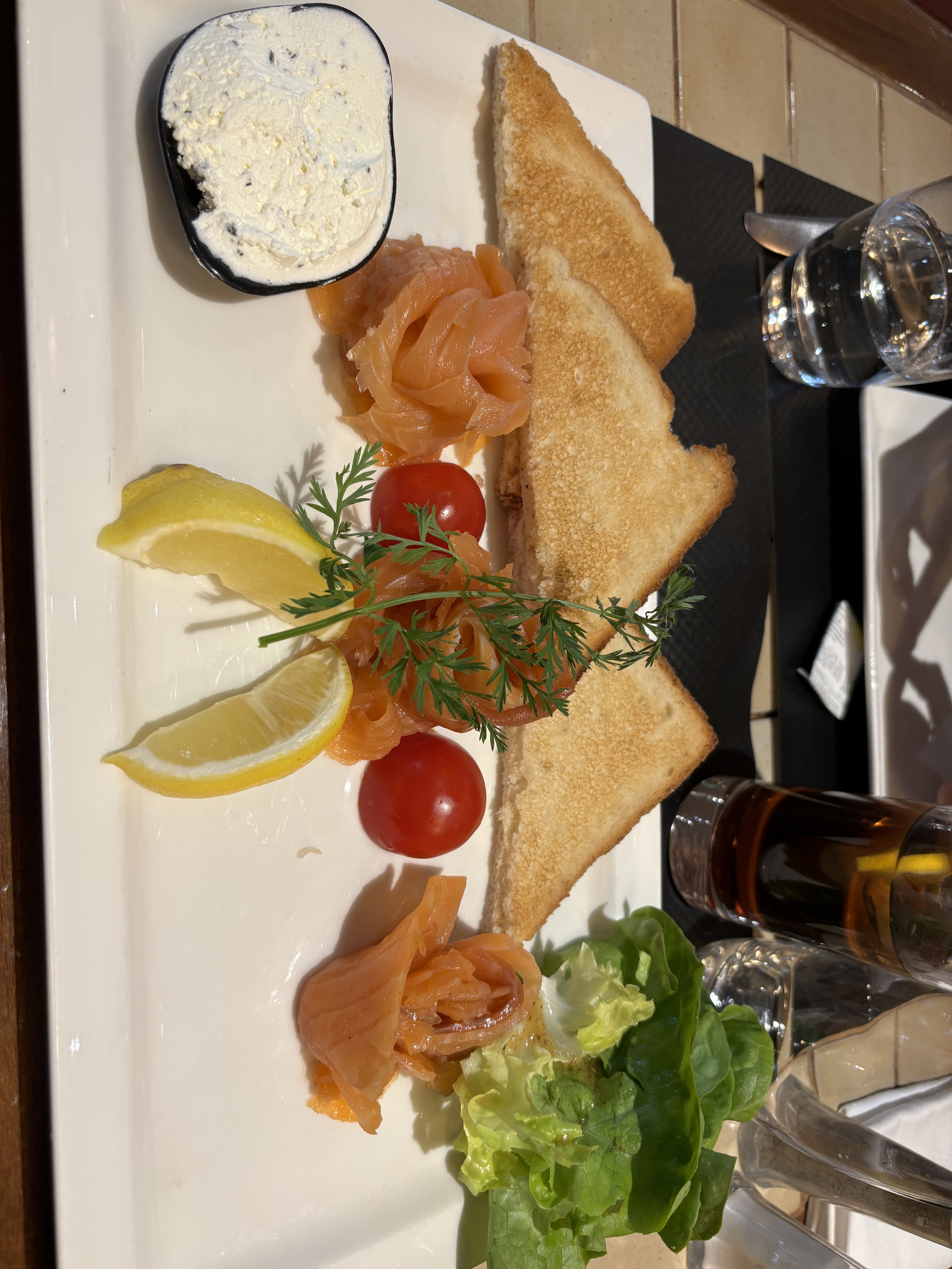 Aurait aimer qu'il y ait un peu de pain, le filet de truite un peu plus gros, et framboise Melba framboise congelé à retravailler ! Sinon ça reste correct plutôt un bon restau