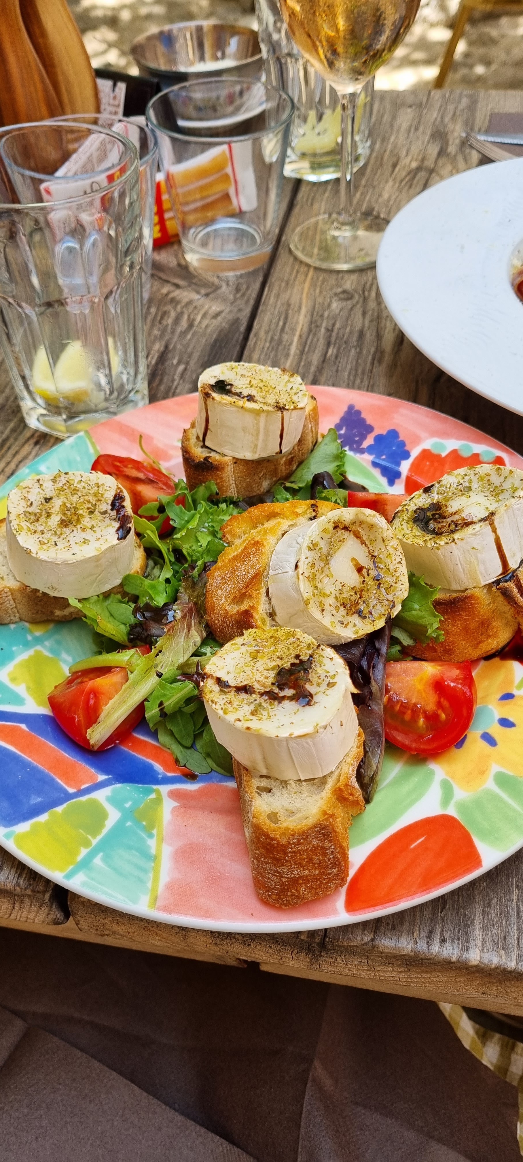 J'ai découvert ce restaurant plutôt bien noté et la déception a été grande. Malgré un personnel souriant et un emplacement dans les rues étroites d'Eze-village, il y avait selon moi des problèmes organisationnels entre les équipes notamment dans la prise de commande ce qui a eu pour conséquence que nous nous sommes éternisés pour manger un plat unique. D'ailleurs, la salade de chèvre chaud à 15€ est un scandale absolu parce qu'il y avait 3 feuilles de salade au milieu de l'assiette et 2 tomates cerises coupées en deux autour pour accompagner les tartines de chèvre. En outre, la pizza était plutôt bonne mais ne méritait pas un tel prix de 18€ en raison des ingrédients présents dans celle-ci et de leur quantité.