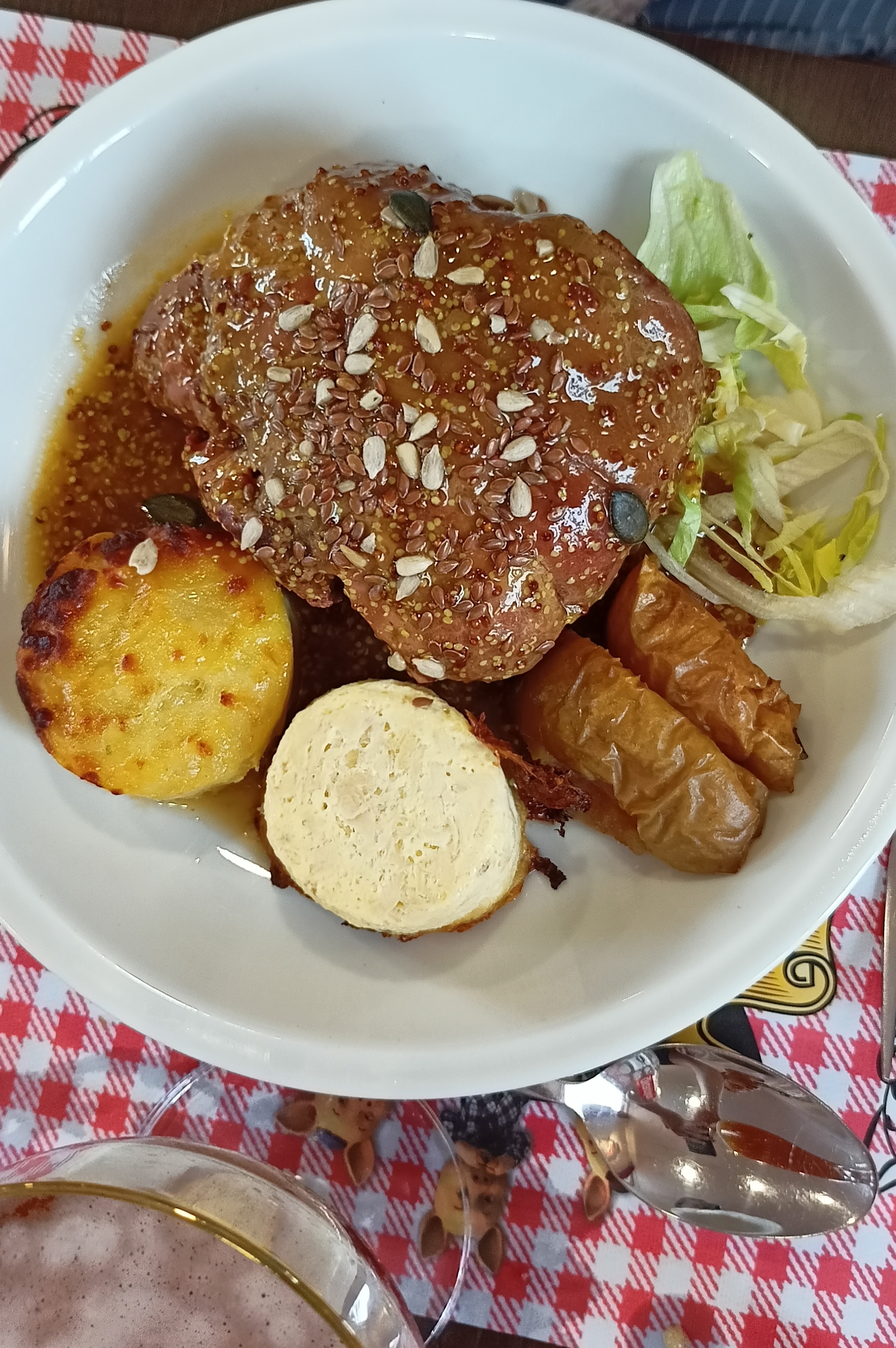 Accueil sympathique, dans un cadre original. Repas copieux (voir très copieux). Des plats d'antan. A découvrir 👏👏 En photo le jaret d'environ 500gr au miel et graine de moutarde .