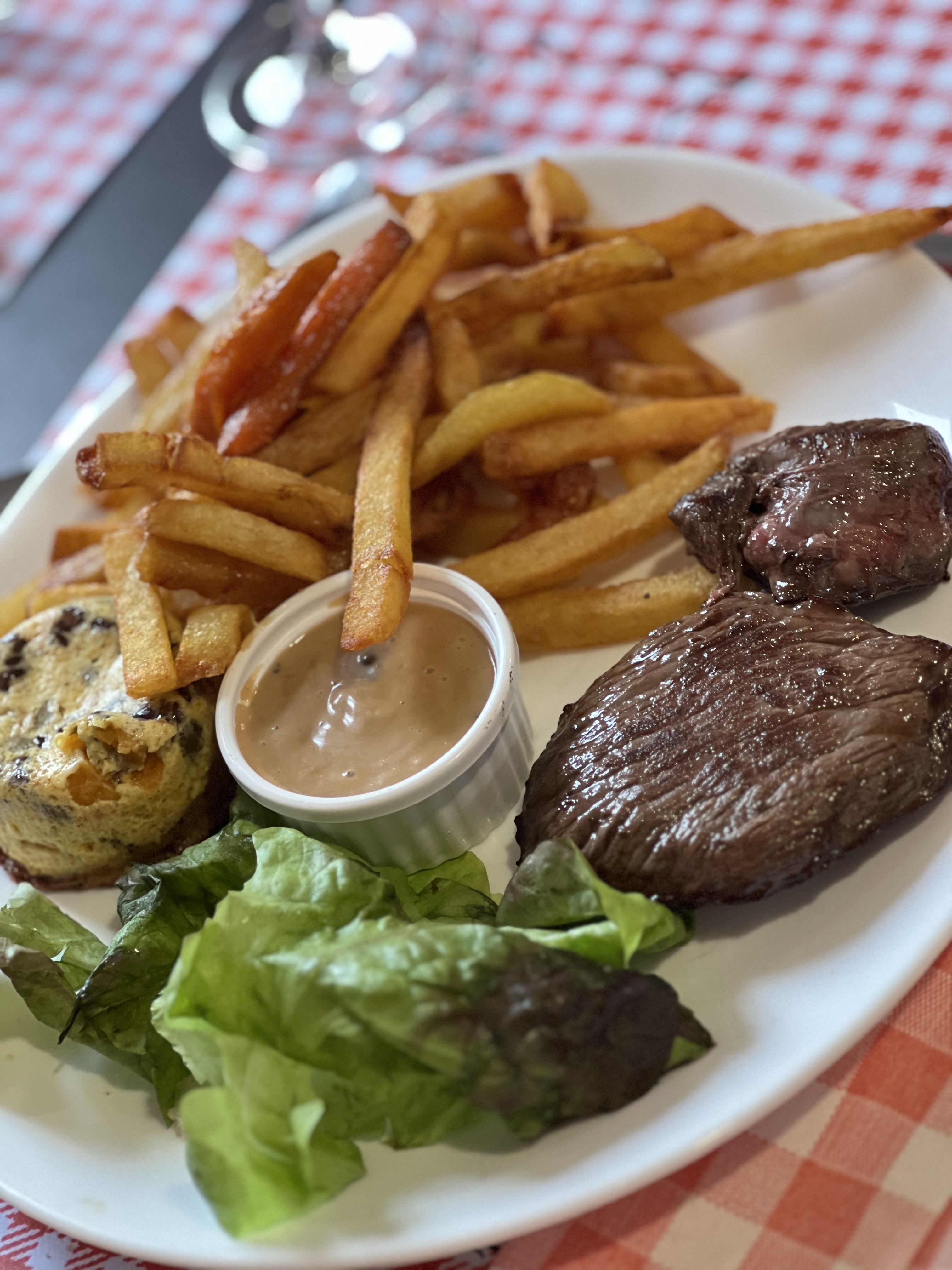 Plats délicieux, un régal pour tous les amateurs de viande. Plateau de fromages bien garni de spécialités locales (et du reste de la France). Service aux petits soins et efficace. A recommander les yeux fermés et on reviendra !