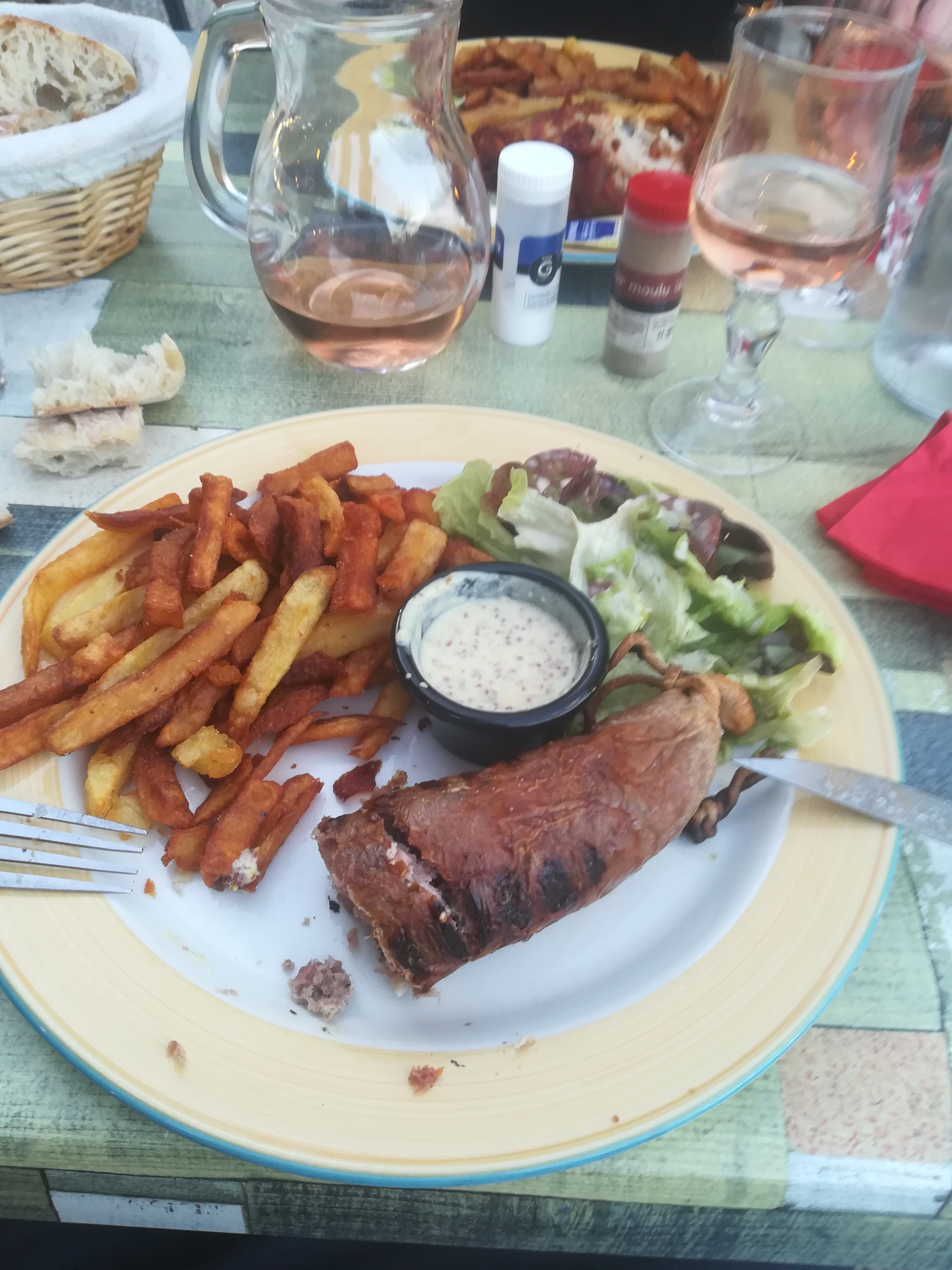 Un bon repas découverte du lieu, frites 🍟 maison excellentes, grillade de porc tendre et fondante, Île flottante parfaite ! Les serveuses sympathiques et arrangeantes ! L'ambiance et le cadre agréables, seul bémol la musique 🎶 est trop forte...🤗☺️