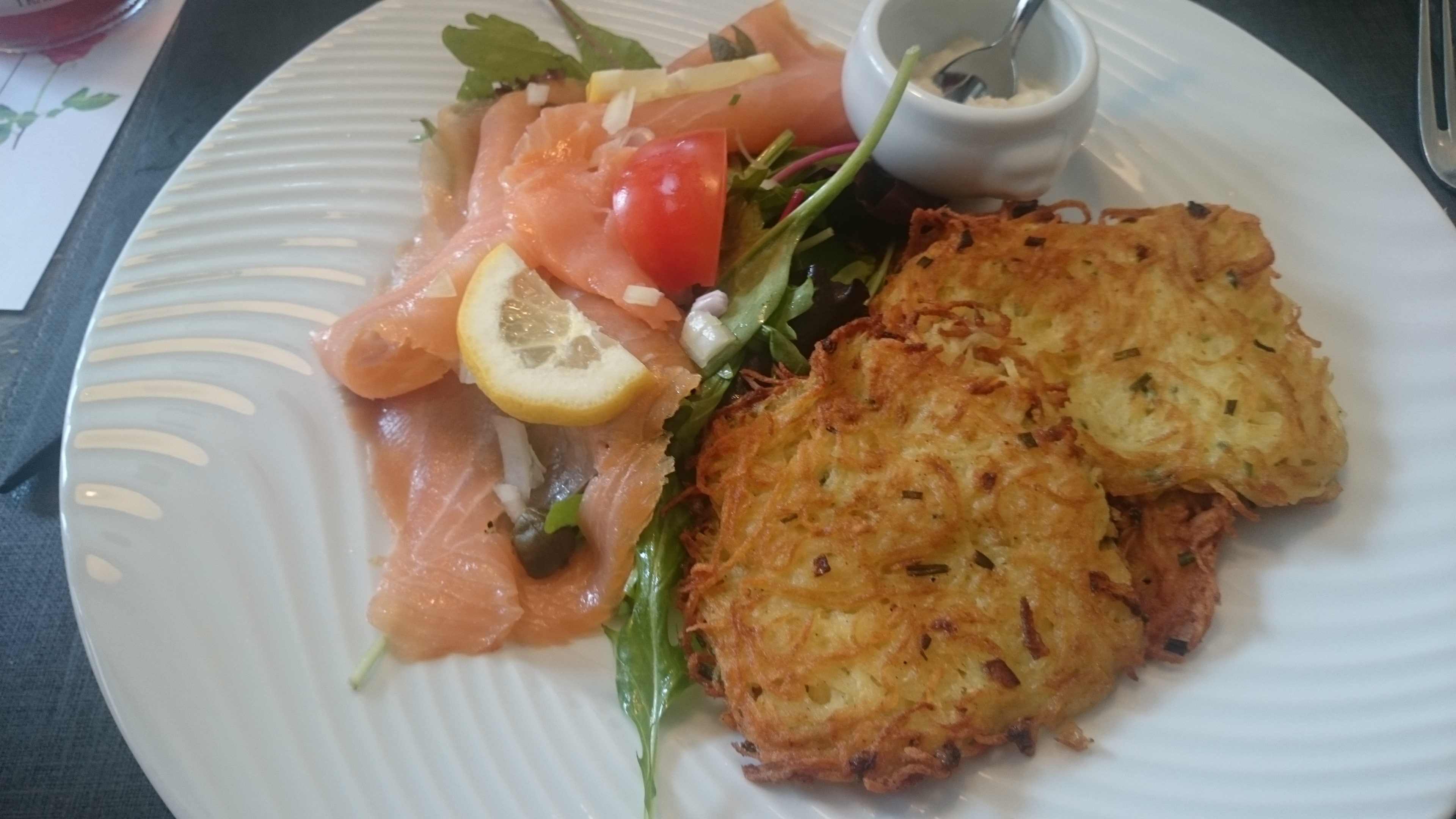 Personnel très très agréable, pour les plats, ça reste moyen (à mon goût) j'ai pris des galettes de pomme.de terre avec saumon. Si les galettes avaient été plus épaisses et moins grillées (3 galettes au lieu de 4) ca aurait été mieux. Les personnes avec moi ont pris des faux filets avec frites (la viande n'était pas assez tendre selon elles). Pensez aussi aux gens qui ne mangent pas de viande, ça manque dans les suggestions, très dommage, il y a de plus en plus de sans viande et j'en fait parti, donc du mal à choisir un plat me correspondant.
