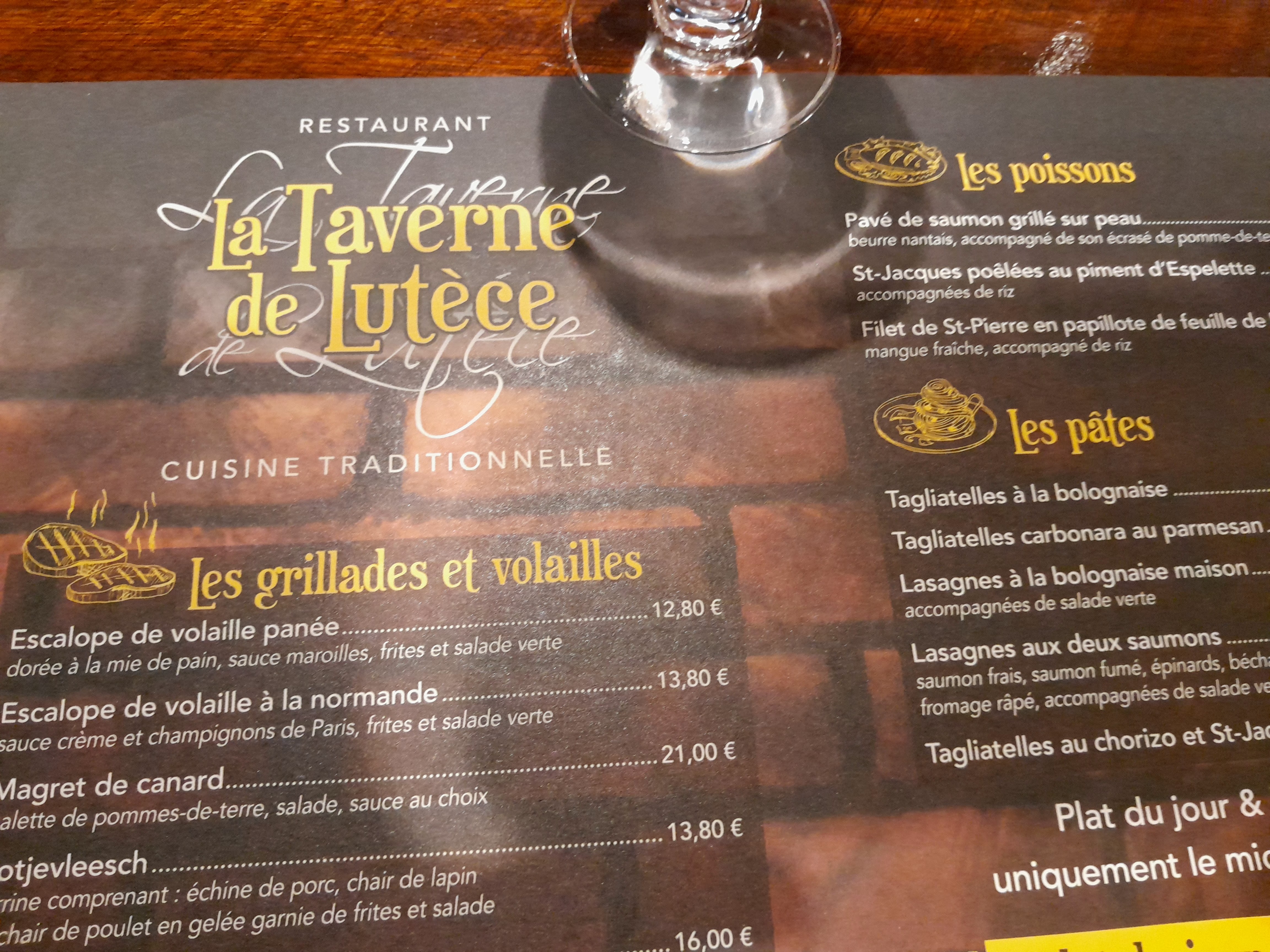 Petit resto tranquille, serveurs attentif à la moindre demande. Nous avons passé un très bon moment à la Taverne de Lutèce et nous nous sommes régalés, je suis sortie le ventre plein. Merci