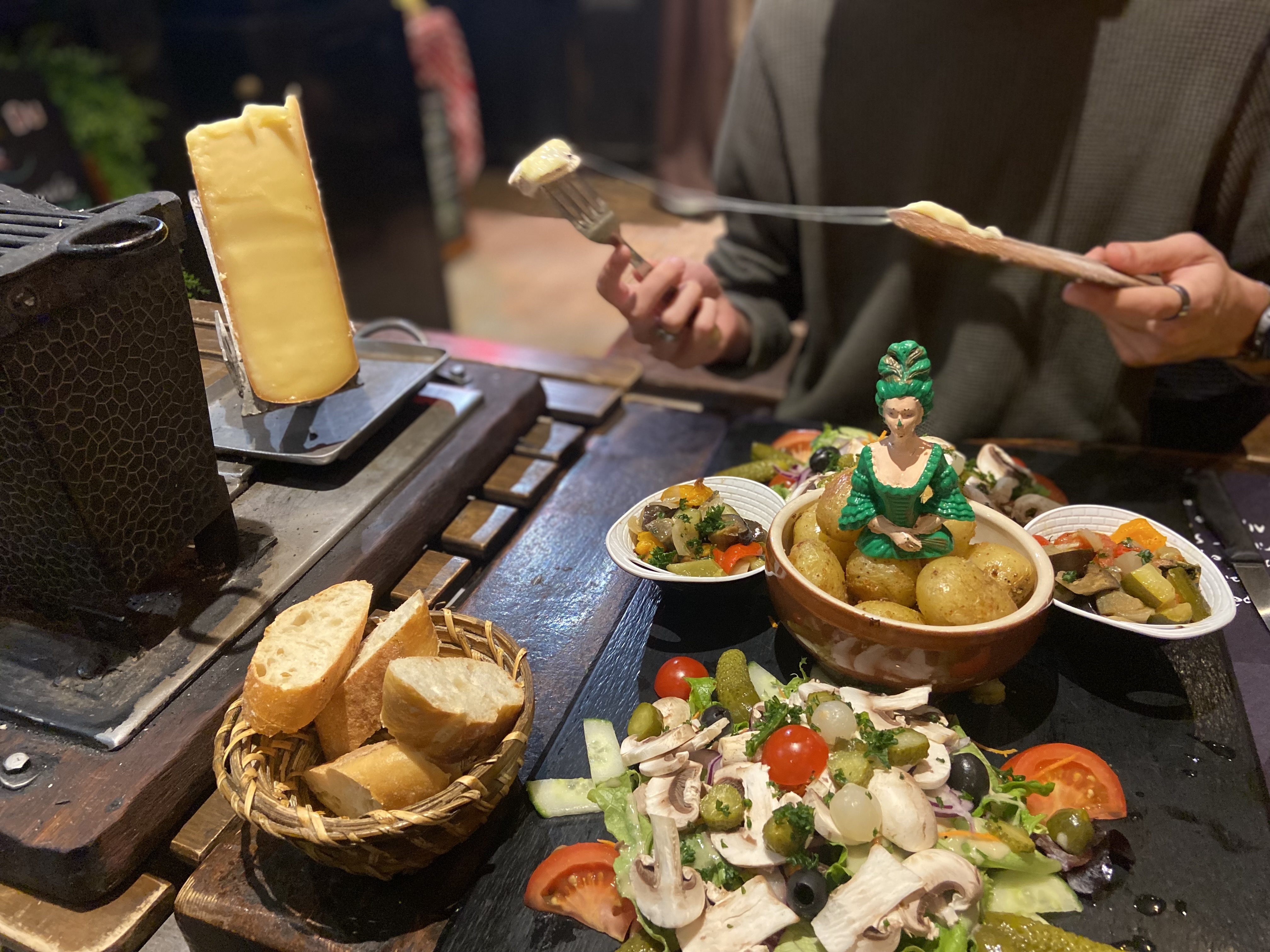 Ambiance sympathique et chaleureuse au milieux des différents fourneaux à raclette (on a pas froid au moins 😂). Bonne quantité. Attention pas bcp de place, mais si vous voulez du fromage fondu et de la charcuterie, je vous le conseil.