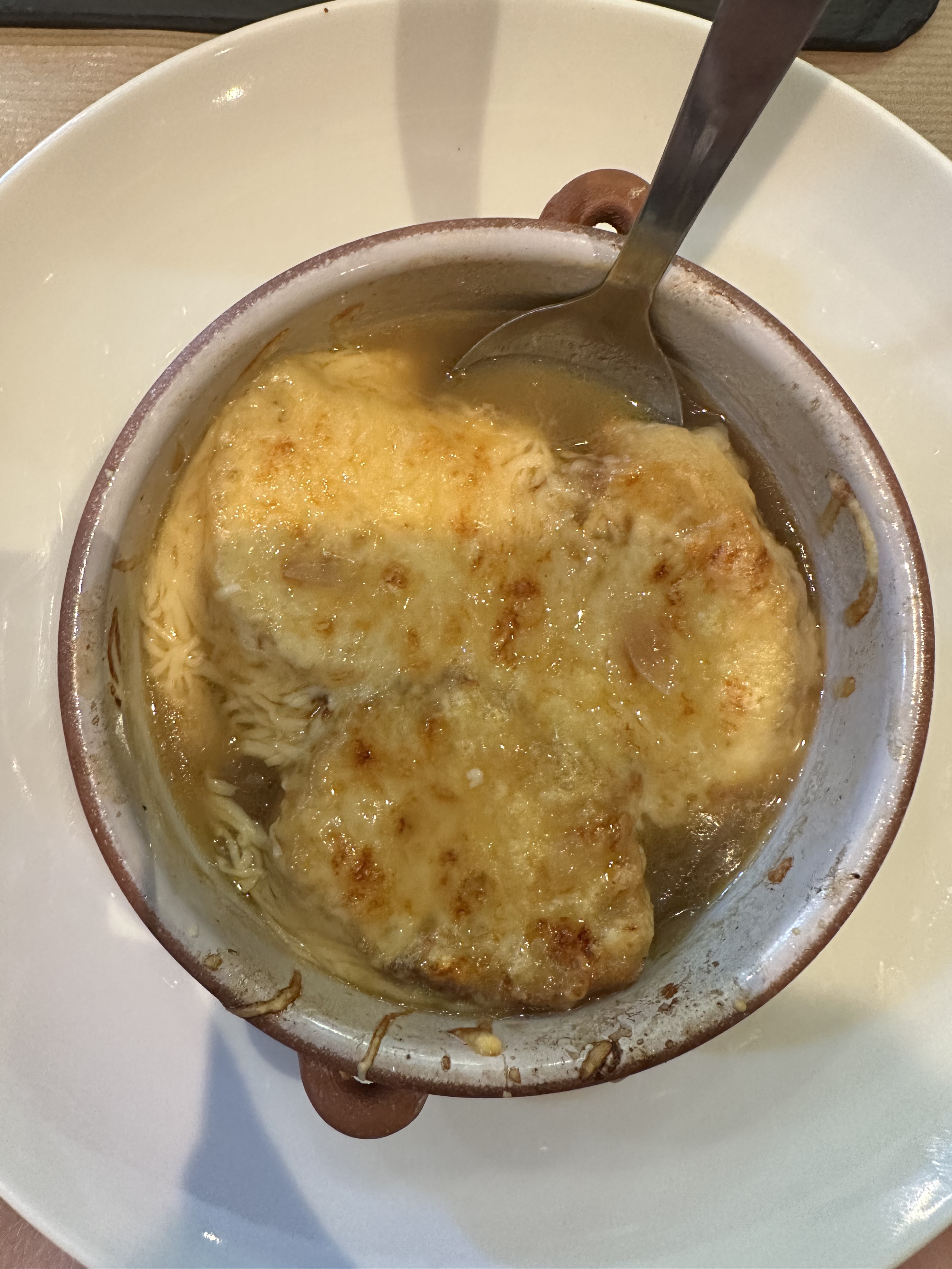 Endroit confortable, il y avait une soupe à l'oignon et de la viande bourguignonne. La soupe n'est pas la meilleure, à mon avis, mais j'ai vraiment aimé la viande. Les serveurs sont très gentils, la nourriture a été servie très rapidement.
