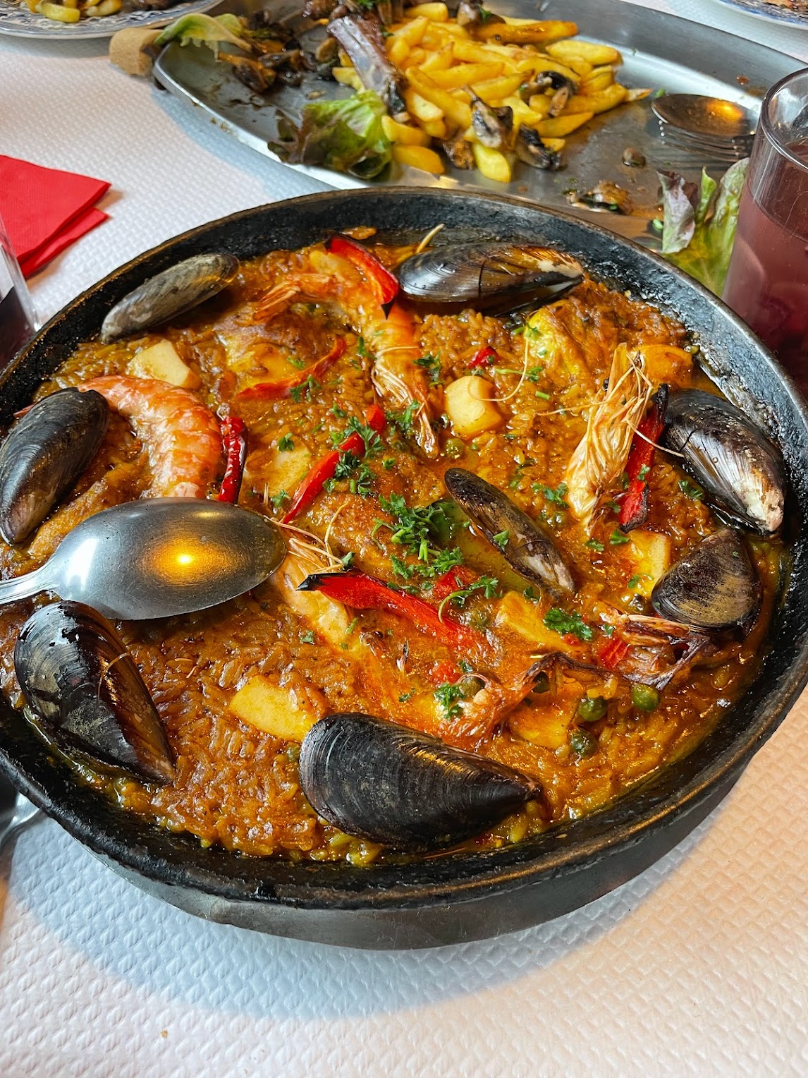 Restaurant convivial, Zarzuela bonne ainsi que la paella nous avons bien mangé de l entrée jusqu'au dessert.le Mr est agréable et gentil.