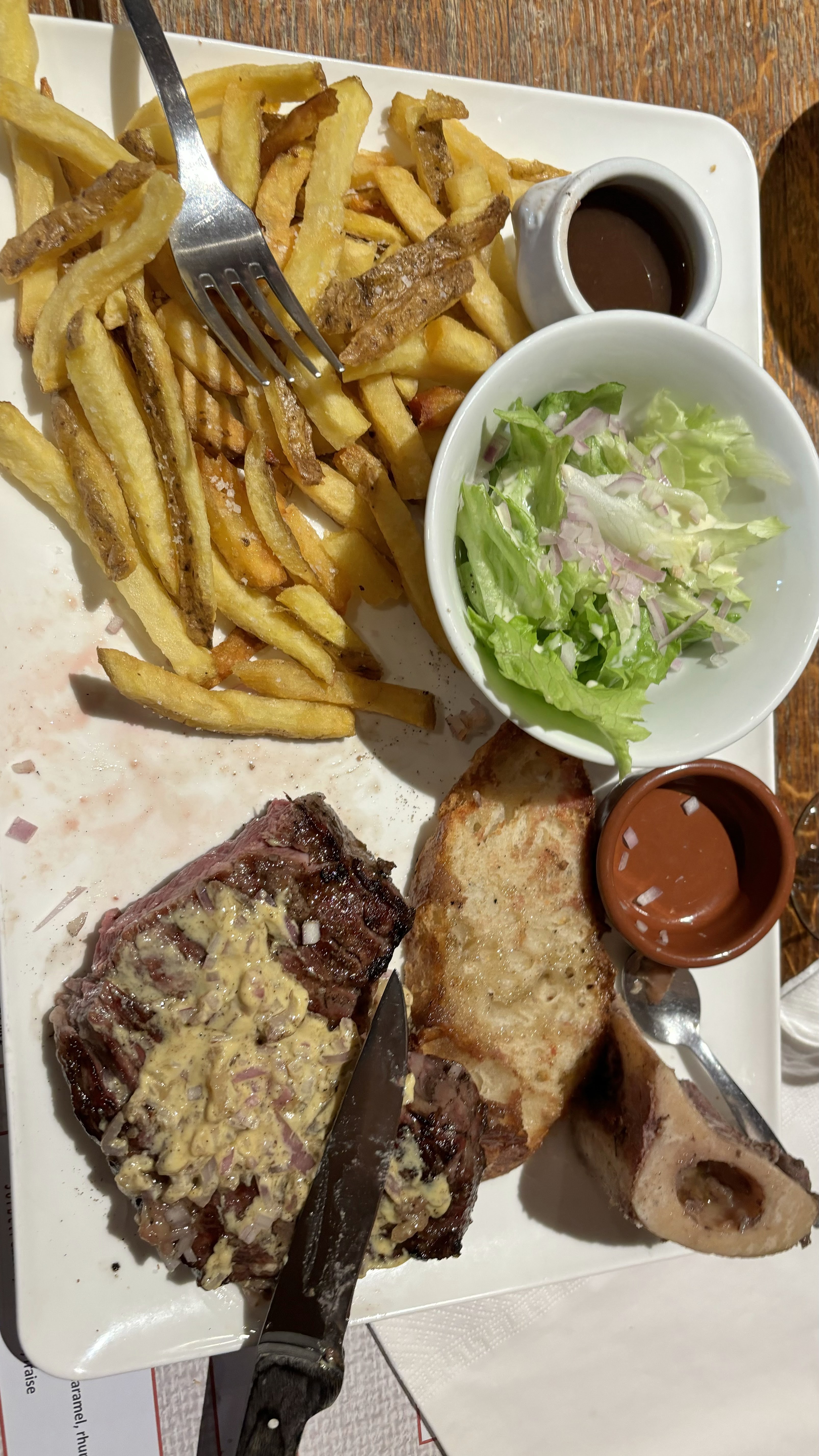 Très peu d'attente pour avoir les plats malgré le monde. Personnel très sympa et physionomiste. Excellente entrecôte et os a moelle à mourir. On reviendra plus souvent...Merci