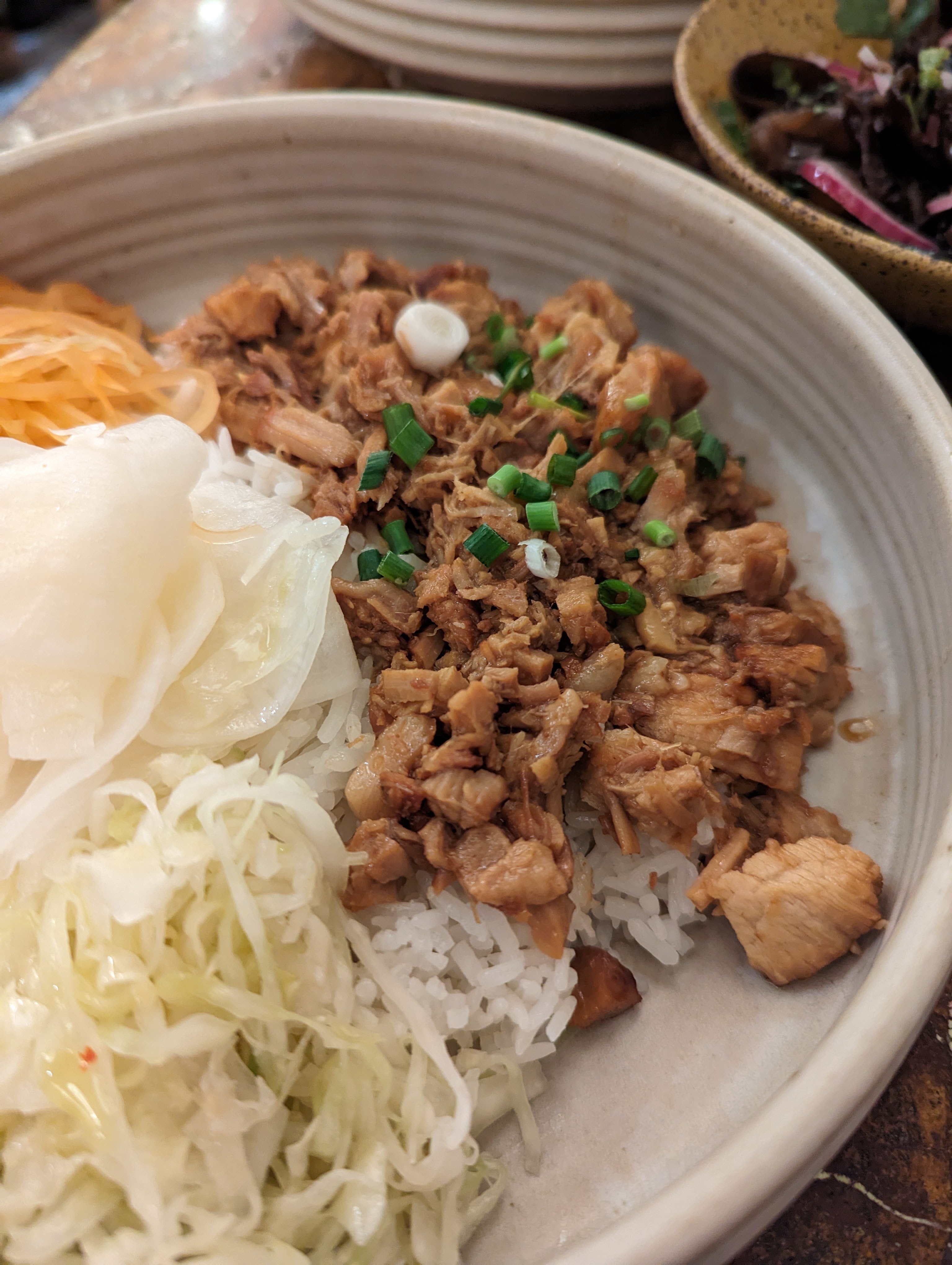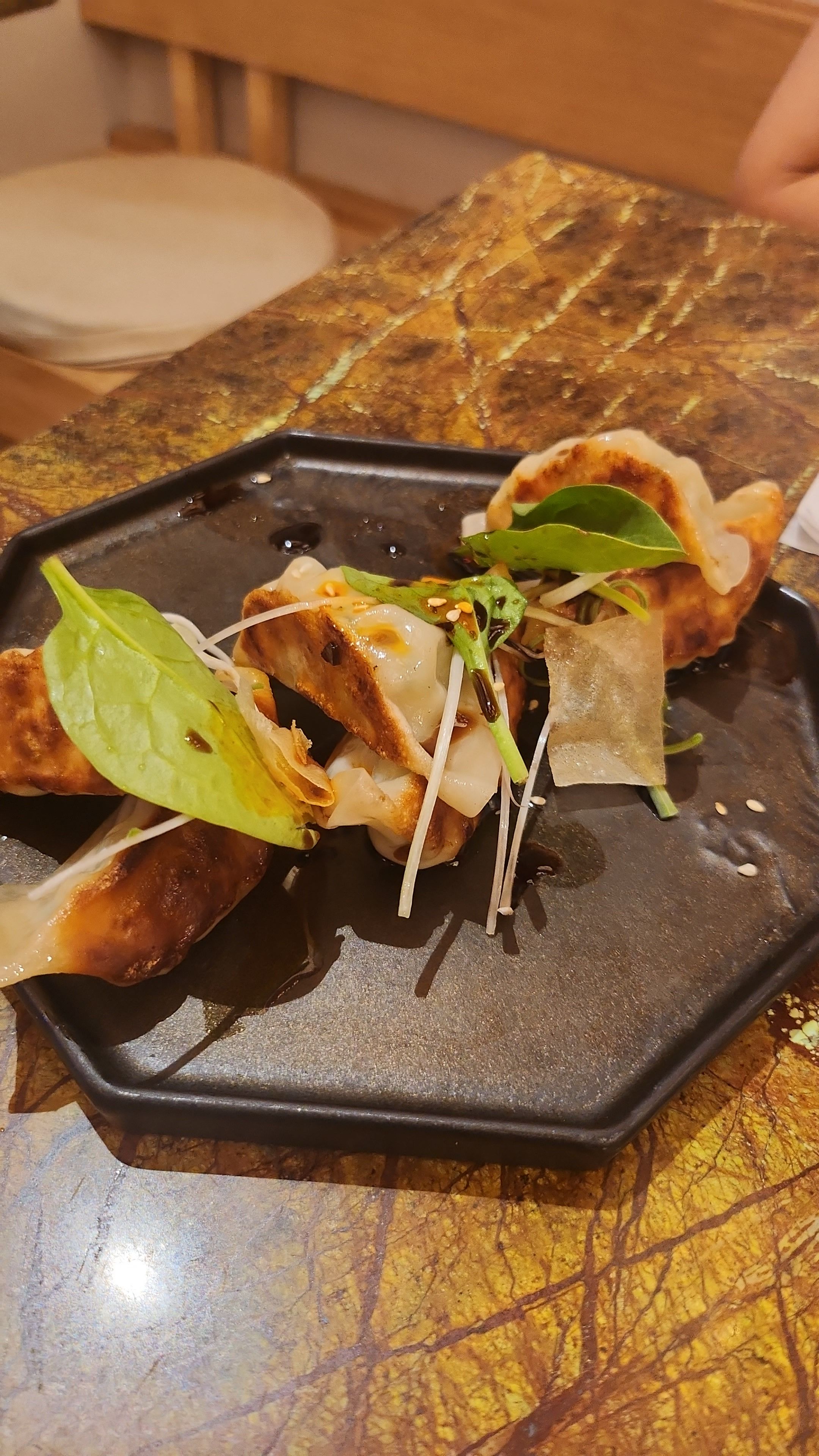 Parfait pour manger des pâtes chinoises. Les raviolis dorés et bouchés de porc sont délicieux avec une bonne farce et bien relevés avec la sauce. La pâte d'udon est top, bien consistante, les toppings tofu, chou sont très bons. Cependant 2 petits bémol : le poulet trop sec car surcuit et le bouillon un peu fade, trop léger en goût.