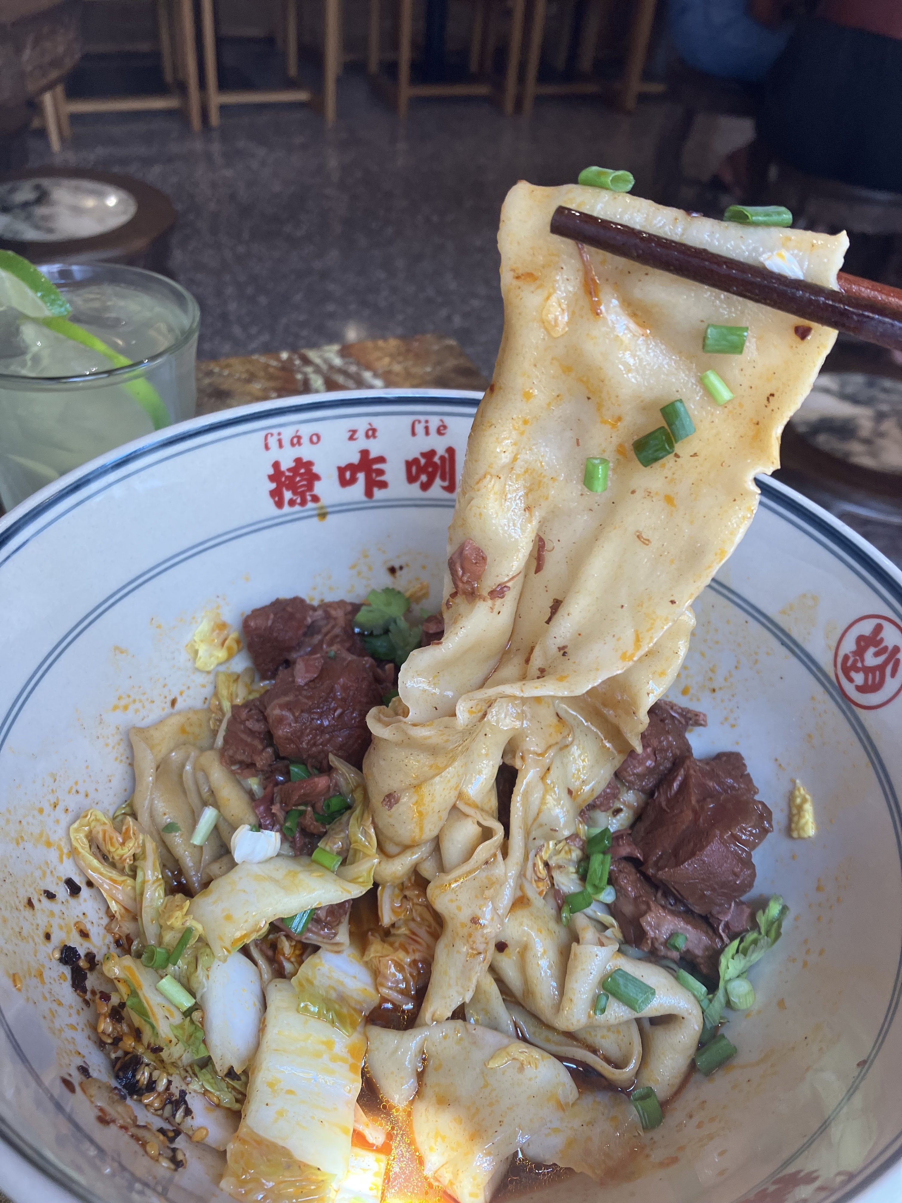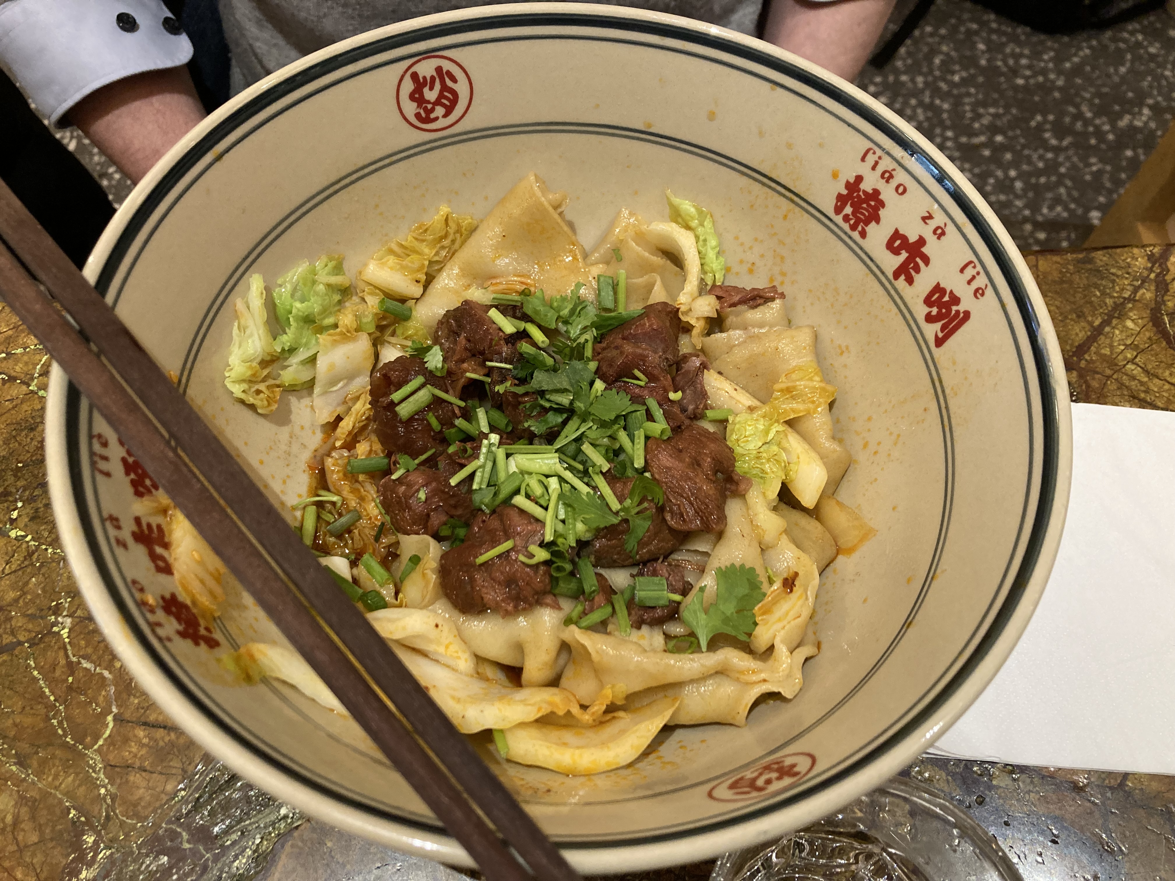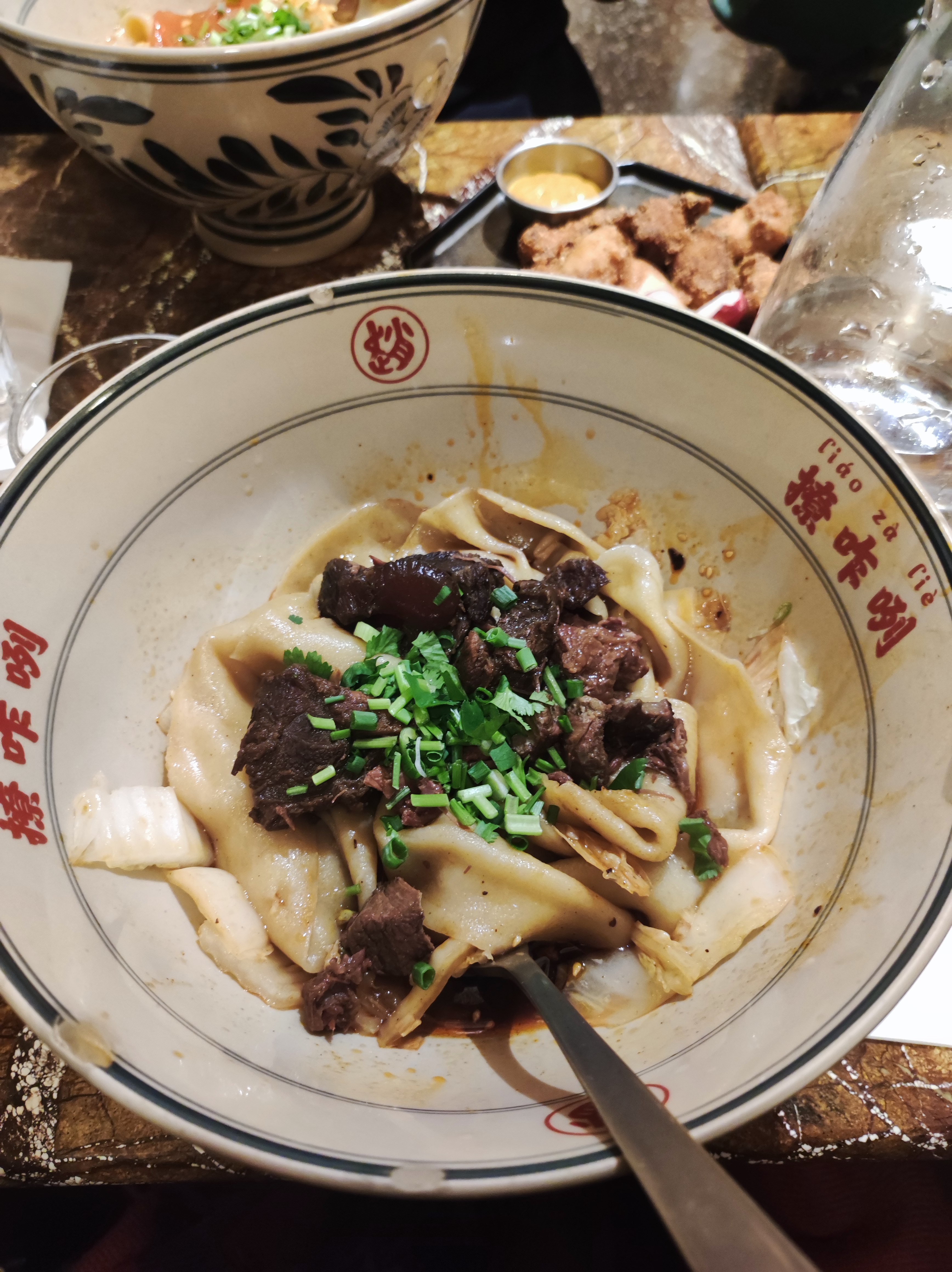 Je n'arrêtais pas de voir des publications sur les réseaux sociaux à propos de ce restaurant proposant des nouilles très épaisses, alors j'ai pensé que je devais l'essayer un jour. Eh bien, c'était savoureux, j'ai aimé la texture des nouilles, bien cuites. La sauce était ok… un peu simple je dois dire, et la viande n'était pas très tendre (nous avions du porc et du bœuf). Un peu déçu. Mais j’ai aimé la rapidité avec laquelle ils ont servi les plats et j’ai adoré ces bols géants.