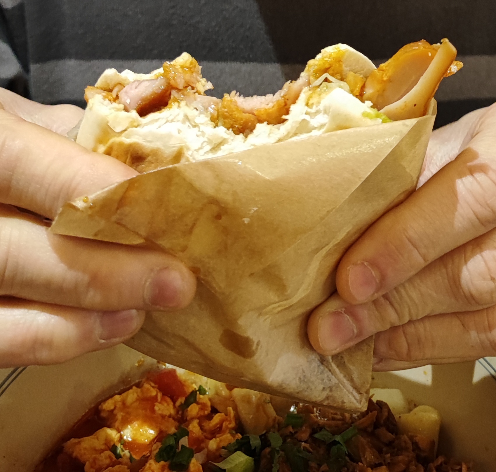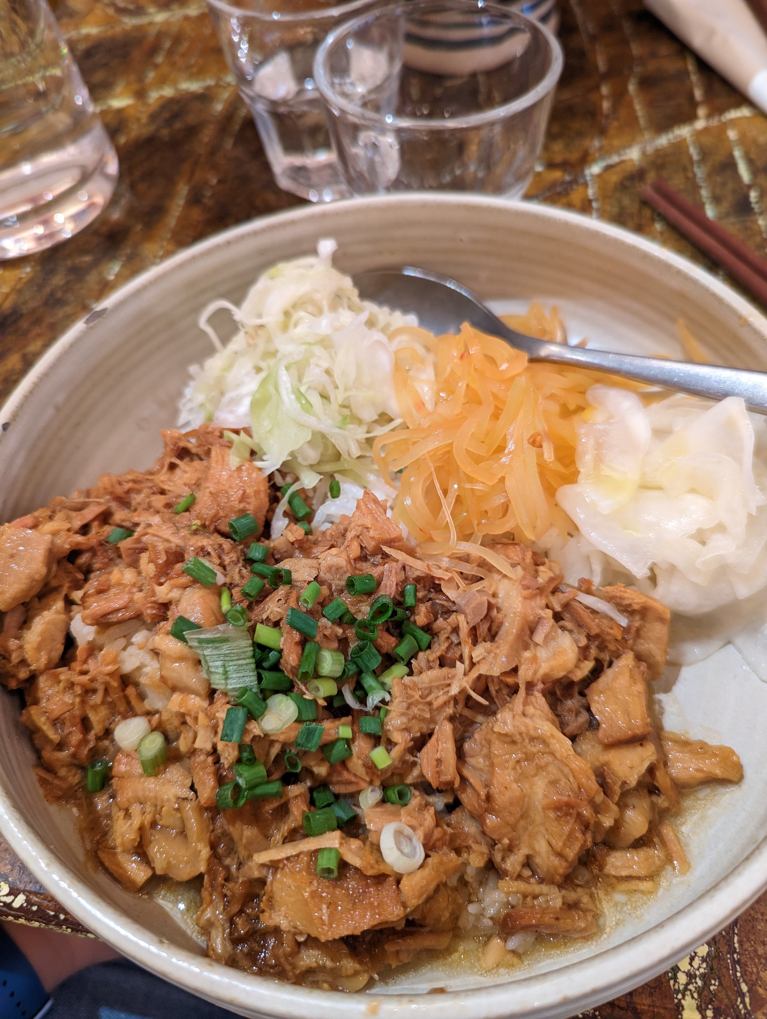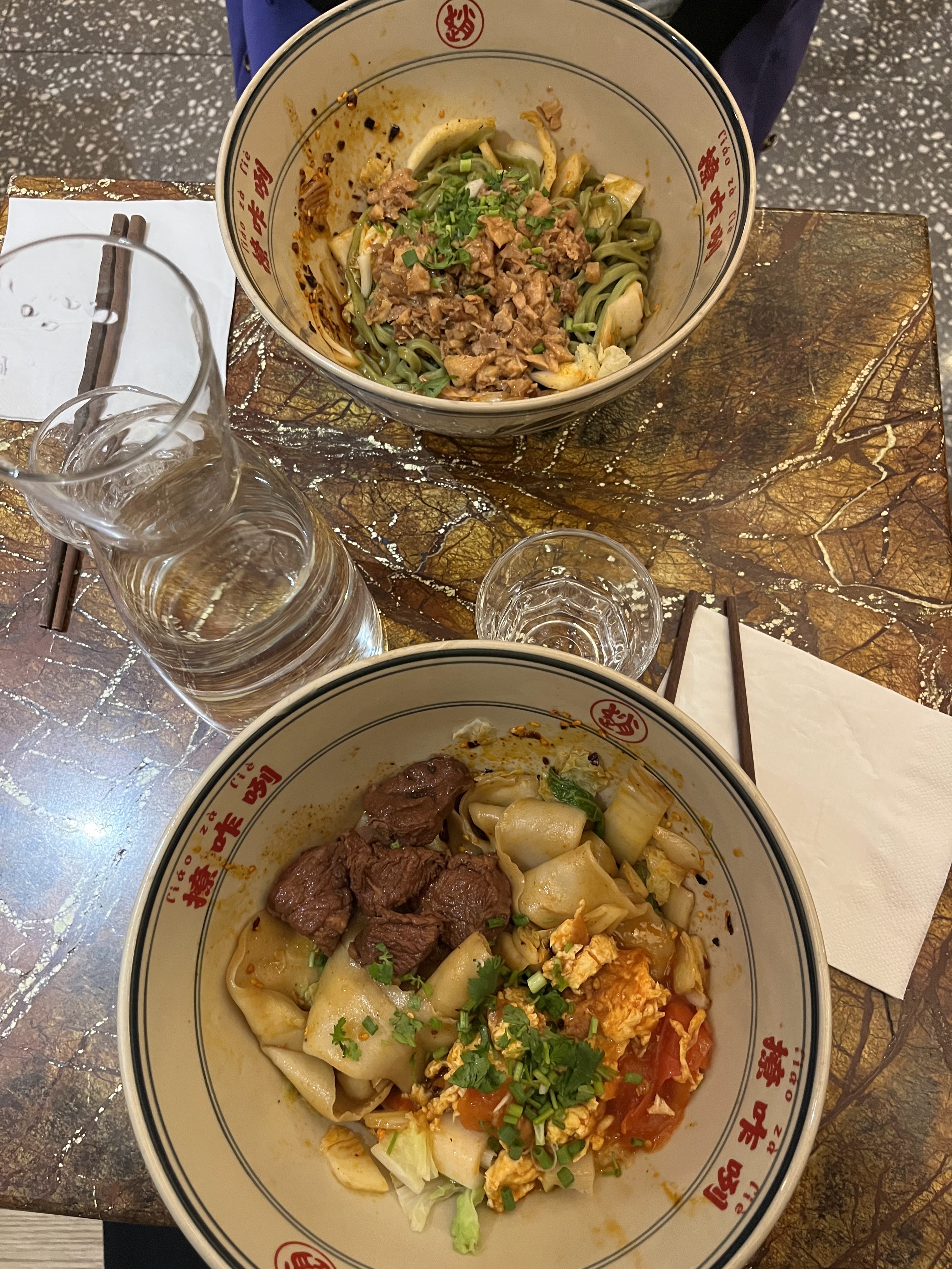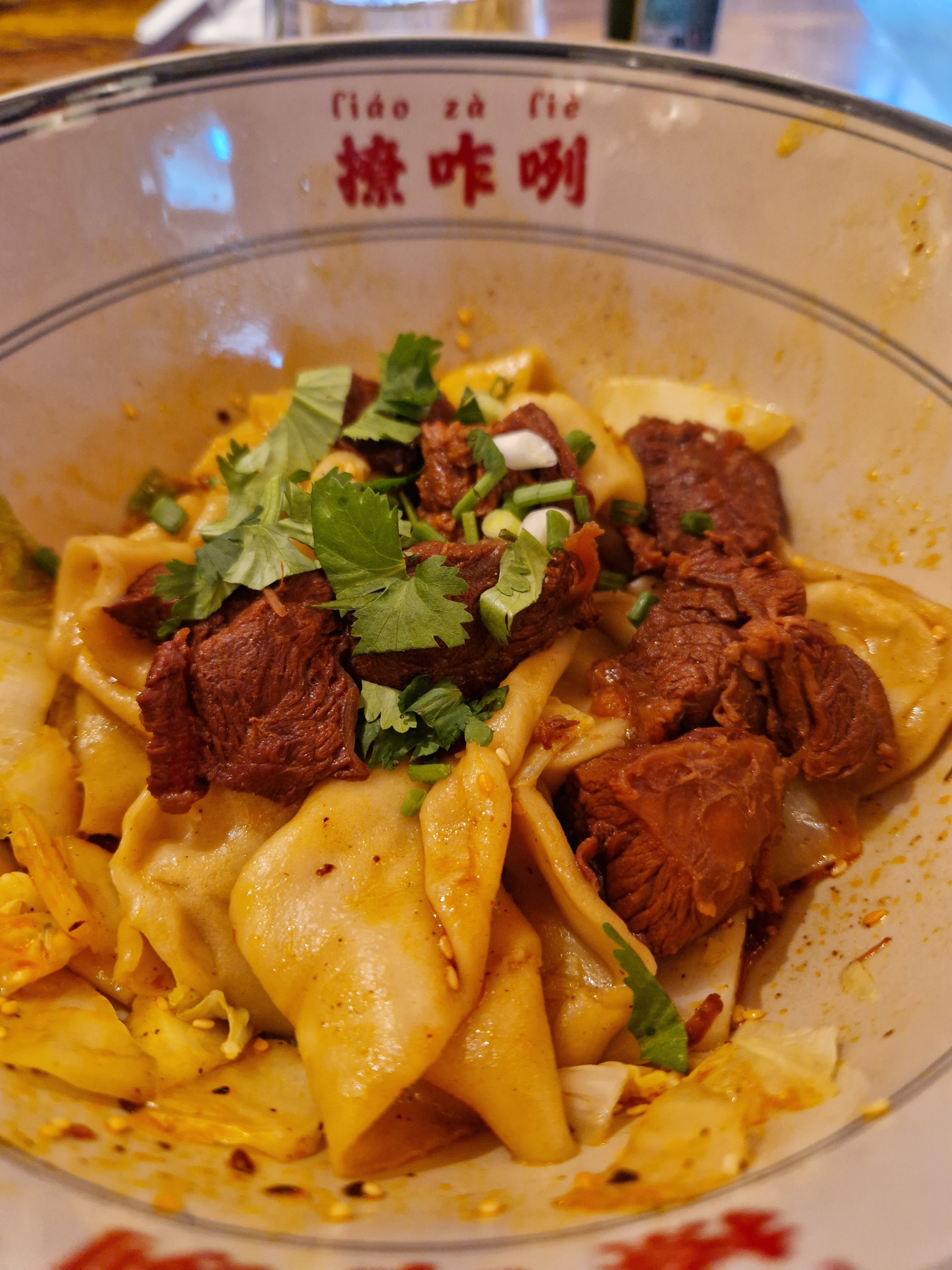 Je n'arrêtais pas de voir des publications sur les réseaux sociaux à propos de ce restaurant proposant des nouilles très épaisses, alors j'ai pensé que je devais l'essayer un jour. Eh bien, c'était savoureux, j'ai aimé la texture des nouilles, bien cuites. La sauce était ok… un peu simple je dois dire, et la viande n'était pas très tendre (nous avions du porc et du bœuf). Un peu déçu. Mais j’ai aimé la rapidité avec laquelle ils ont servi les plats et j’ai adoré ces bols géants.
