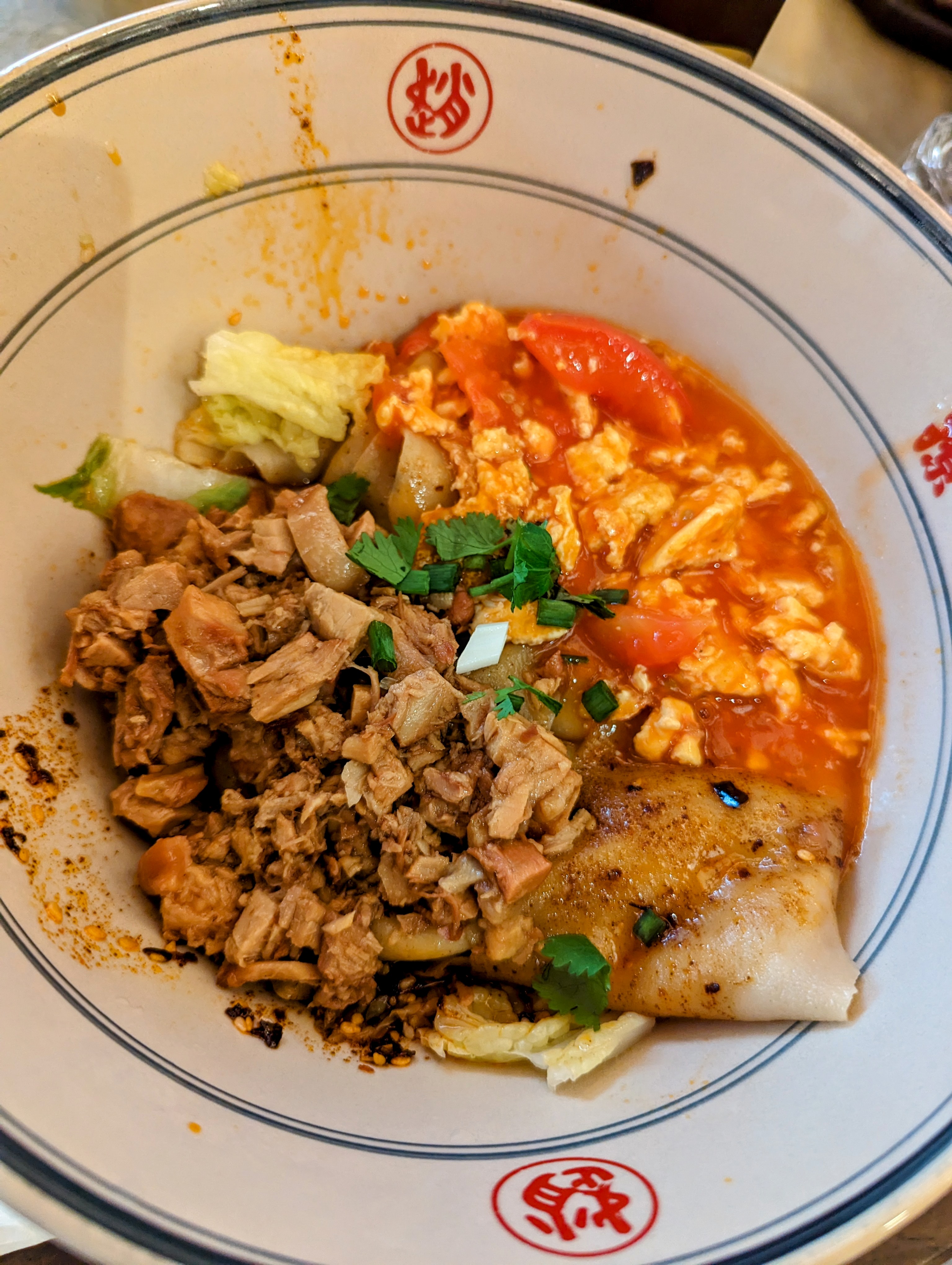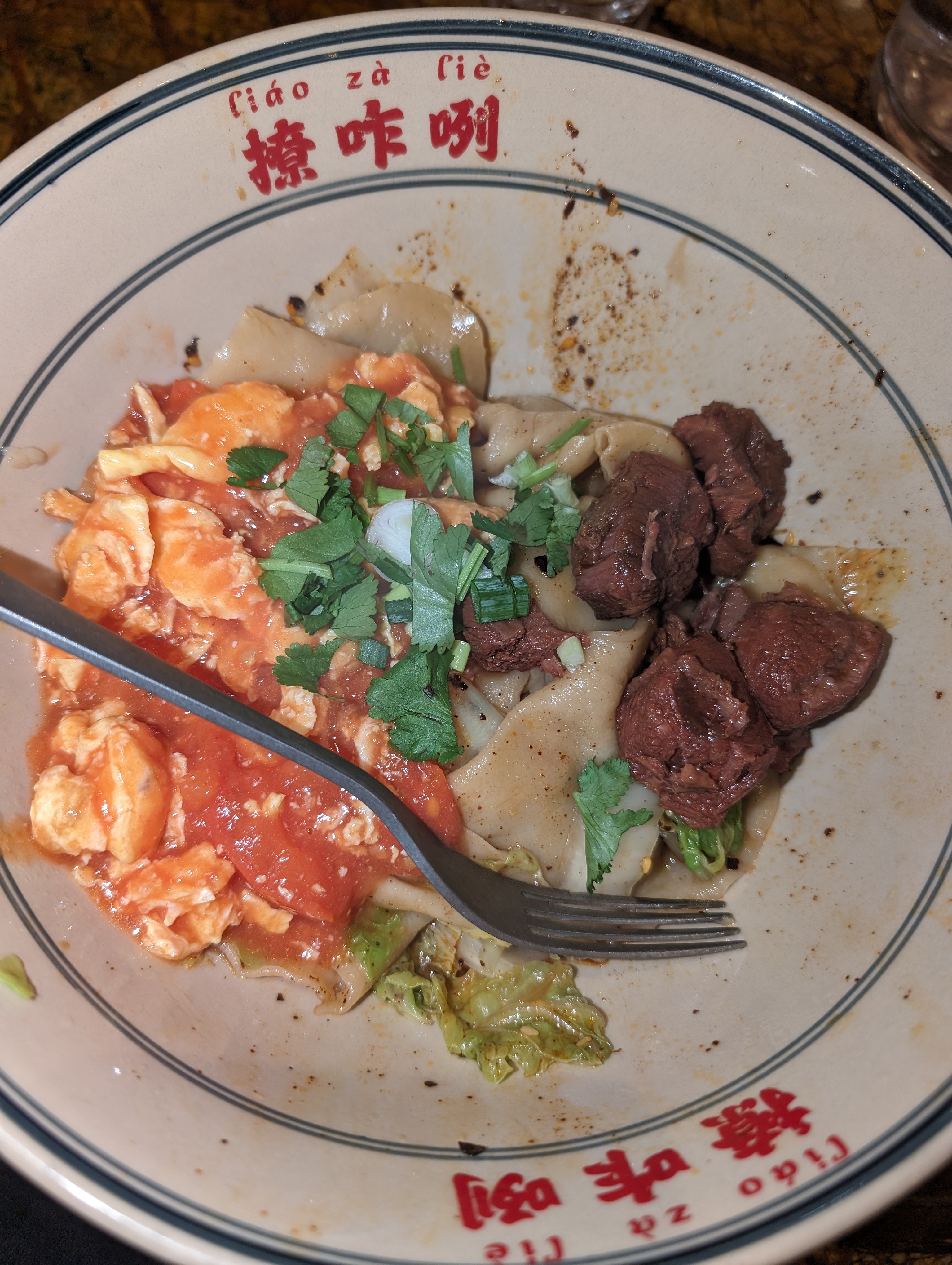J'ai oublié de prendre une photo au début du repas, je mets donc mon assiette vide, c'est la preuve que ça m'a plu. C'est globalement bon et bien servi, les nouilles biangbiang sont tops et le riz aussi. Je suis moins fan des pots en terre à cause des algues et les nouilles trop épaisses et caoutchouteuses mais c'est une question de goût personnel.