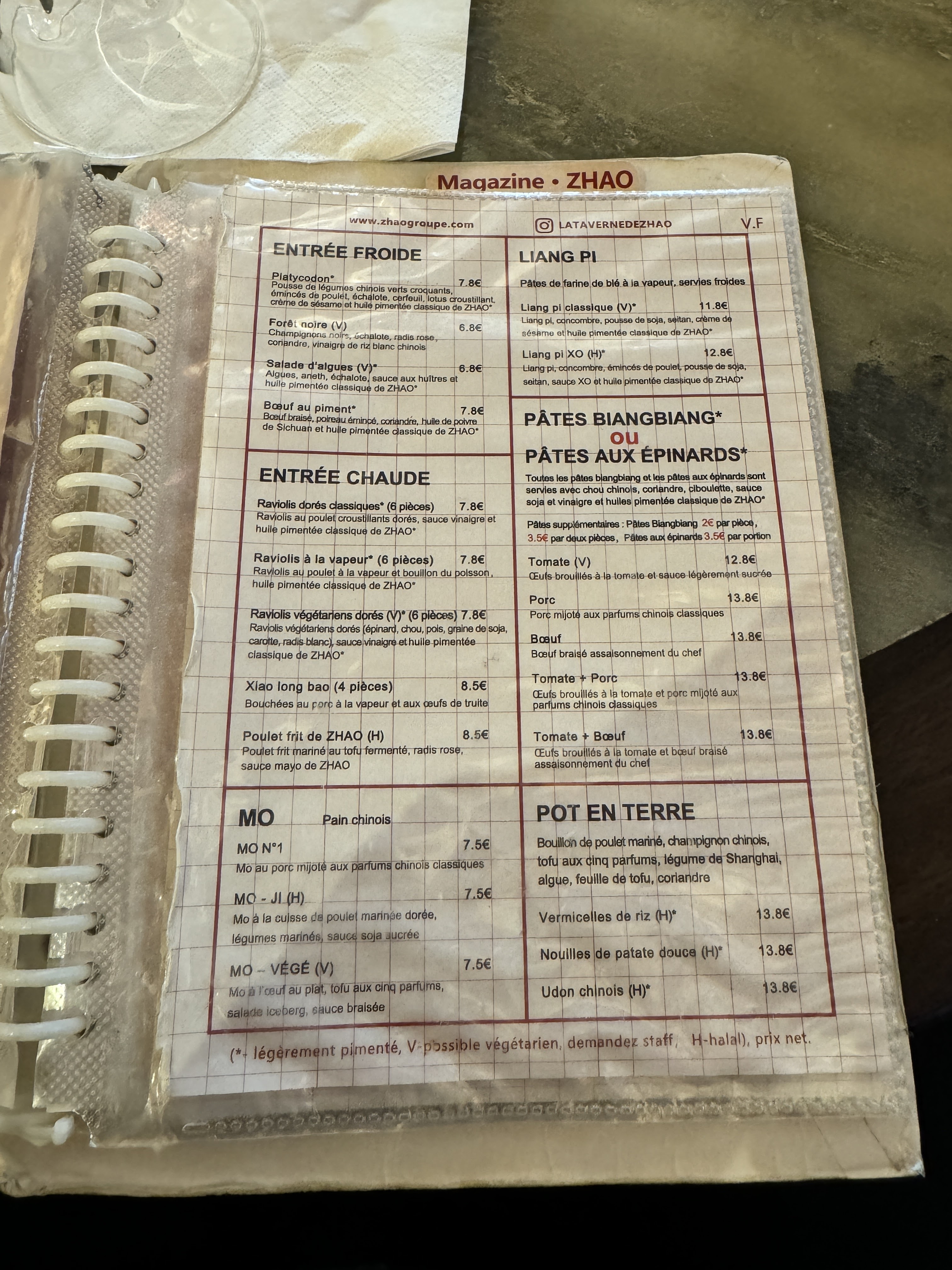 Situé sur une rue perpendiculaire à la rue Saint-Anne, ZHAO commence à se proliférer partout dans Paris avec sa quatrième boutique... Le plus grand resto au passage. Parlons des plats... prenez que les nouilles façon biang biang. On n'a pas trop apprécié les entrées avec un goût assez spécial que ce soit les sortes de sandwich ou bien le poulet frit... Les nouilles sont très goûteux, ce qui fait le succès de l'enseigne. Pas très pimenté, on aurait aimé encore un peu plus de piment (pour moi seulement). Le poulet est halal, mais pas dans les raviolis (qui sont surgelés au passage). Je recommande tout de même ! Bon courage, vamos. Tony, si tu me lis, tu ne rates rien, t'inquiète.
